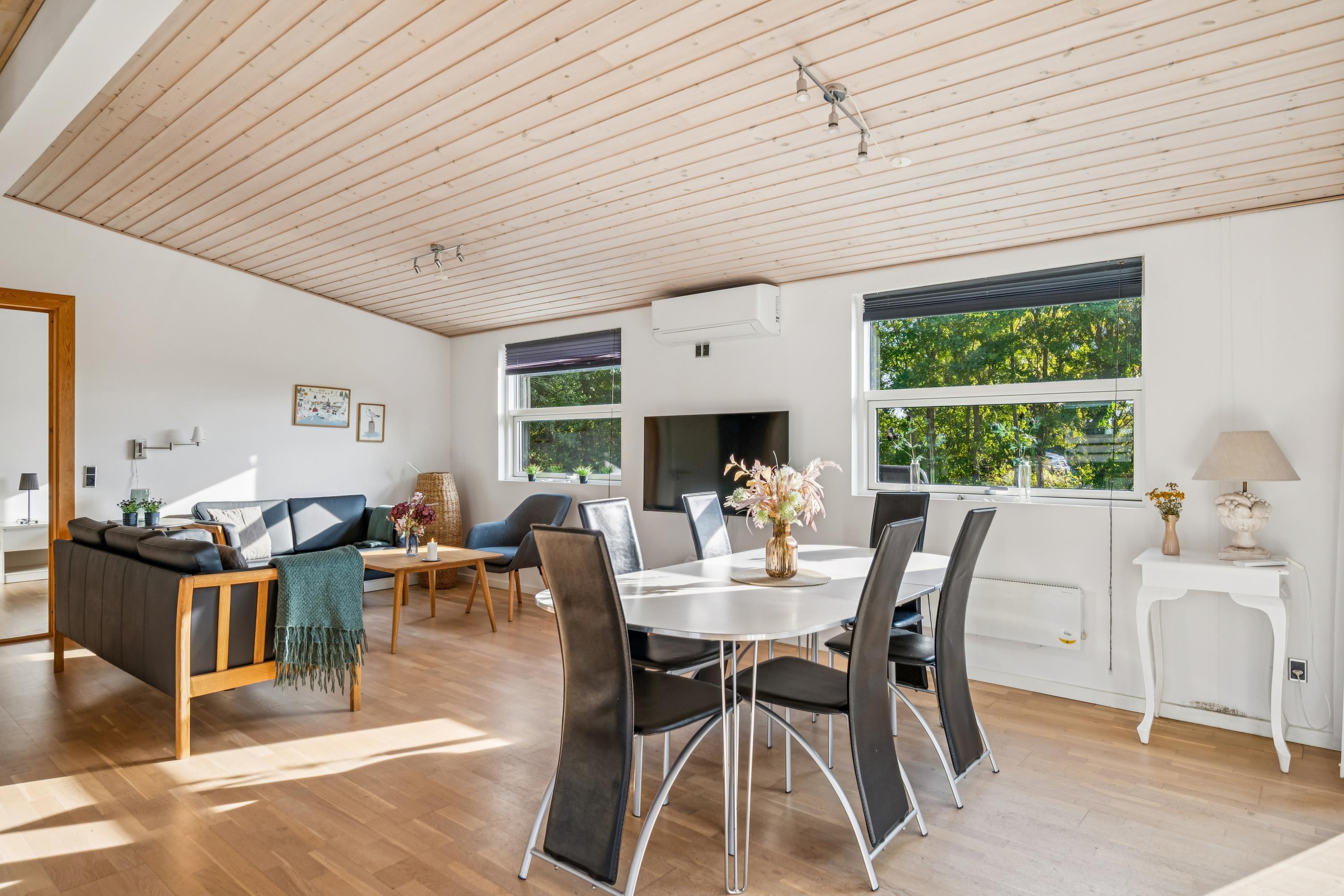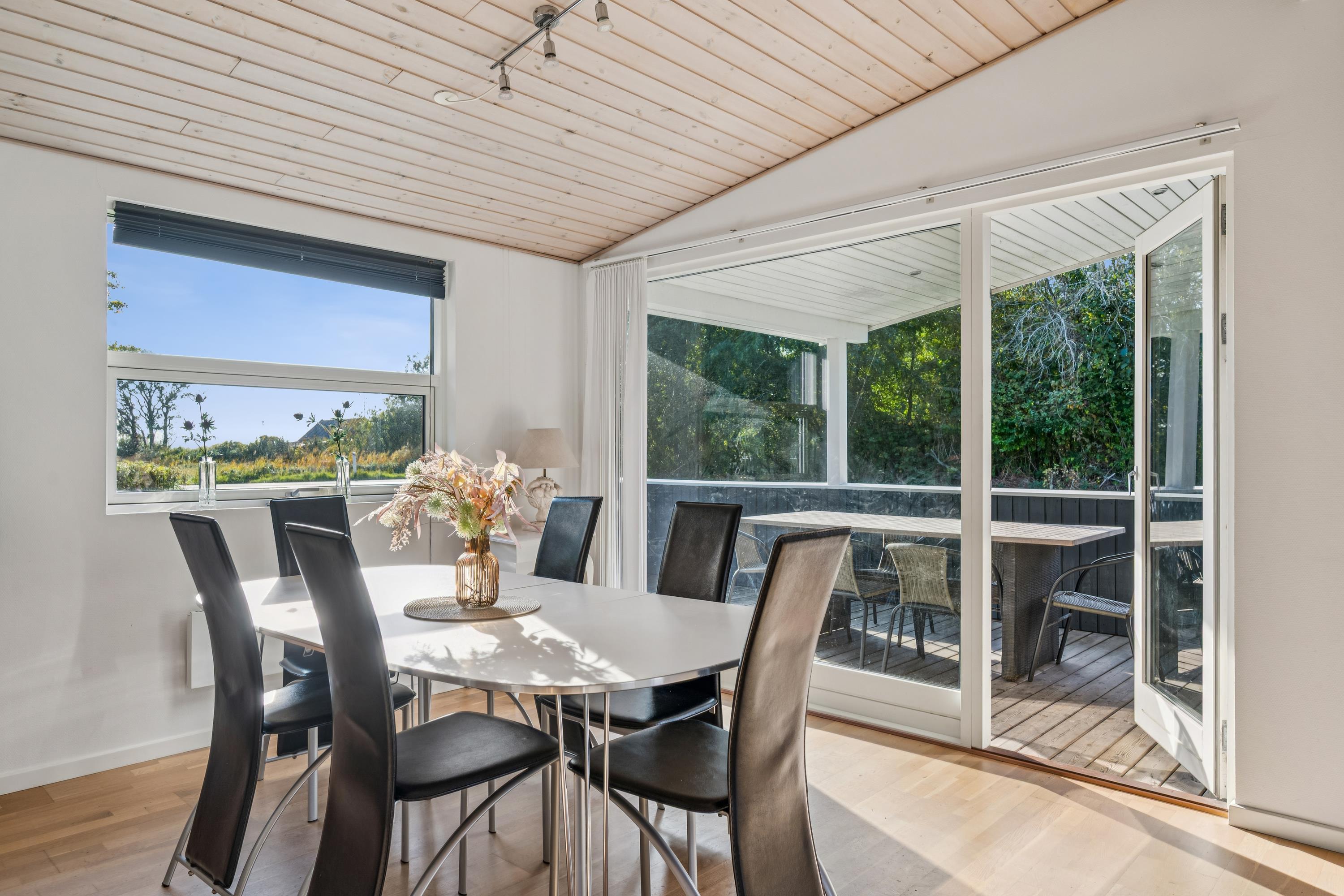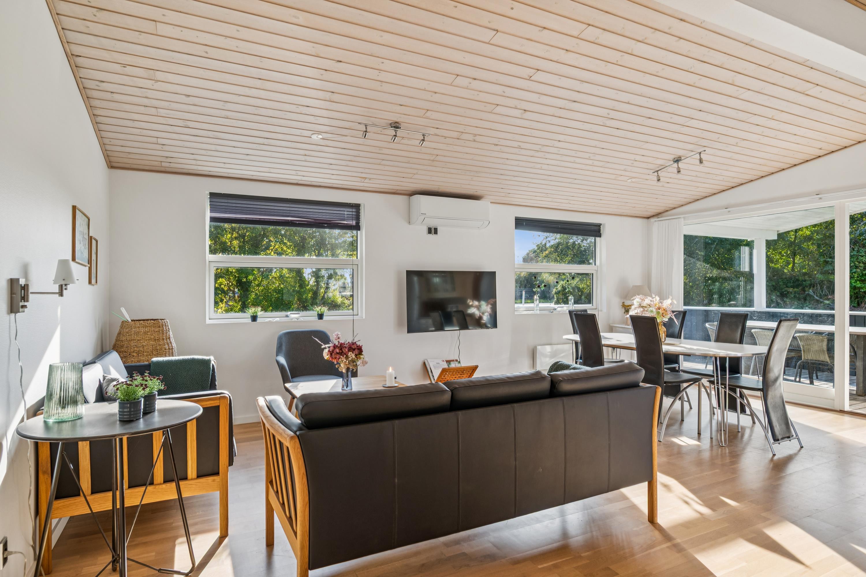 Truly lovely holiday home situated on a natural plot close to a beautiful bathing beach, with sea views from both the property and the living room. The house offers several great terraces with garden furniture and a grill, perfect for enjoying the sun all day. The interior is bright and inviting, featuring light wooden floors throughout.