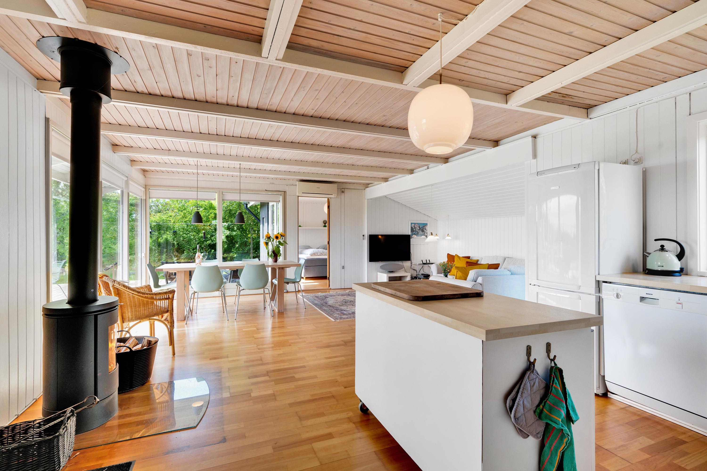The house is located on a fantastic 3000 m² natural plot, offering ample space for outdoor relaxation and play, including a fire pit, with the most stunning views of the surrounding landscape and water. Handrup Bakker is a beautiful natural area with scenic, rolling terrain. The house is less than 100 meters from a lovely forest, offering opportunities for walks and cycling. The area is very child-friendly and is close to a great beach with shallow waters, perfect for everyone to enjoy swimming. Additionally, Handrup Bakker is near Mols Bjerge. It’s about a 10-minute drive to Ebeltoft town, where you can explore many exciting activities, including the Old Town Hall, the Frigate Jylland, and the Glass Museum. The popular amusement park Djurs Sommerland, with attractions for all ages, is about a half-hour drive away. The Kattegatcenter in Grenaa is also just a half-hour drive.