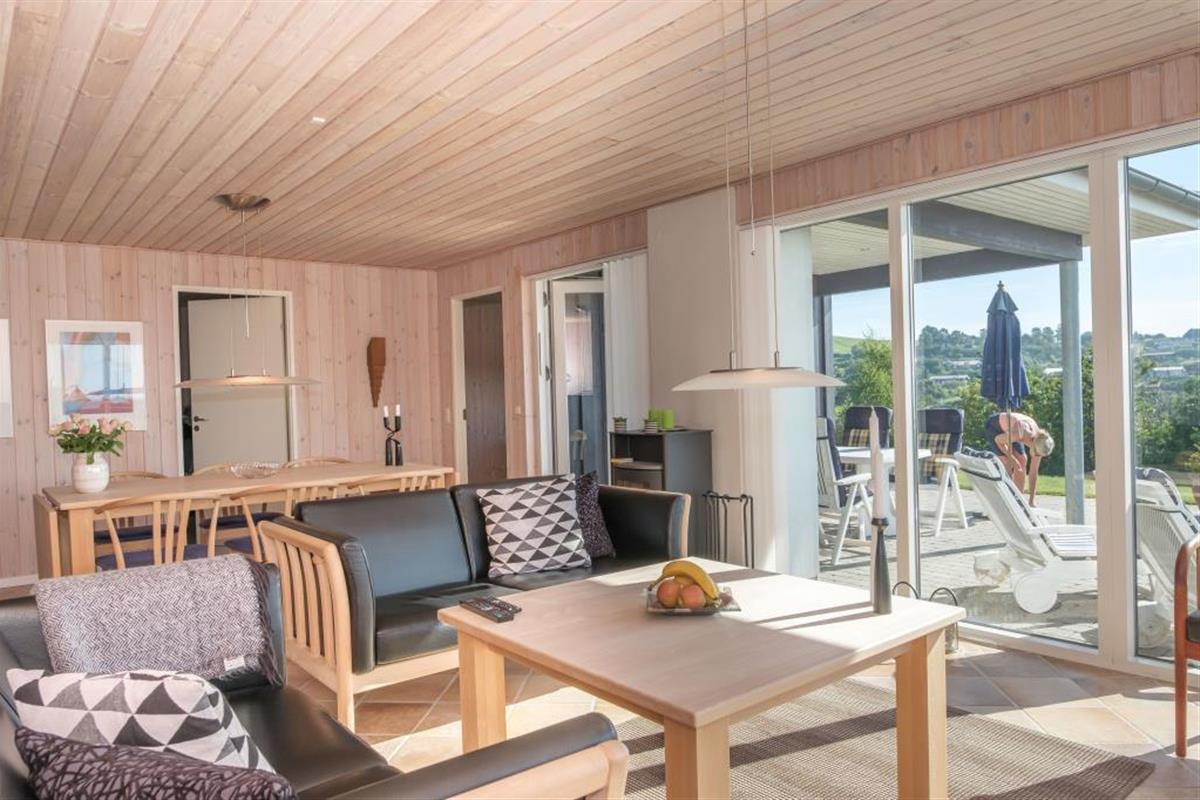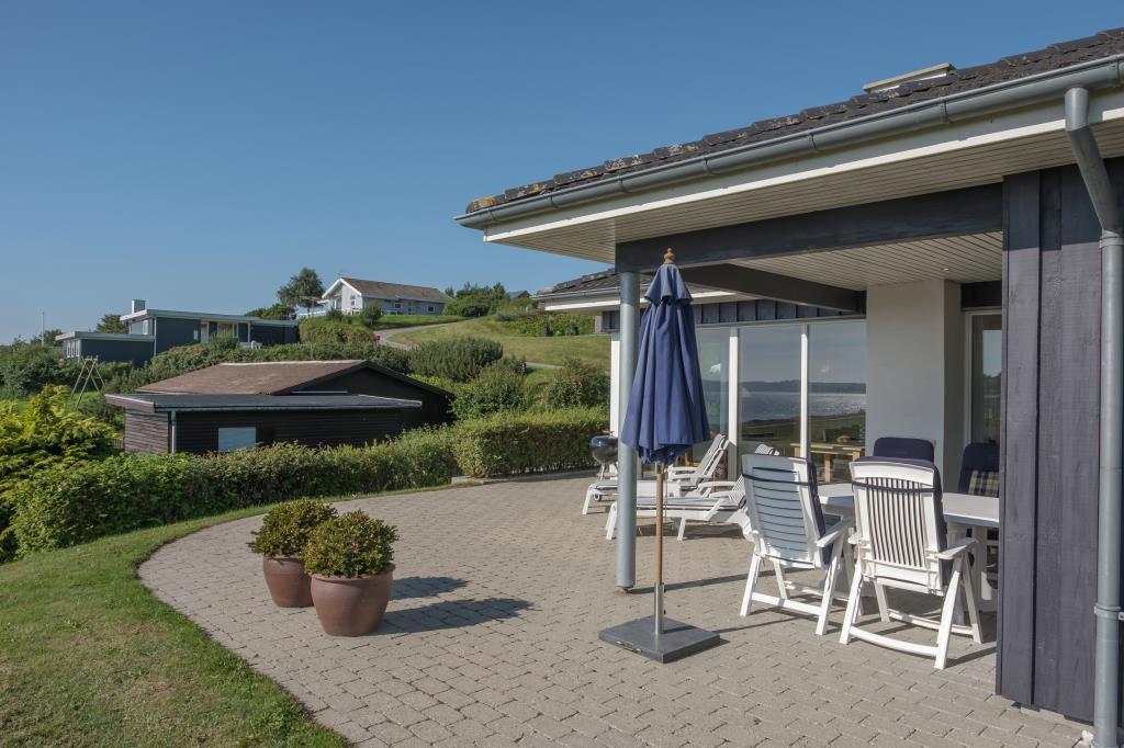 With an exceptional panoramic view over Ebeltoft Vig towards Samsø, this beautiful holiday home is situated on a gently sloping plot with sparse vegetation. The house is surrounded by both open and covered terraces with garden furniture and a grill. It has a tasteful interior with a full sea view from the living room, along with a fireplace, Boxer TV, DVD player, and internet access.