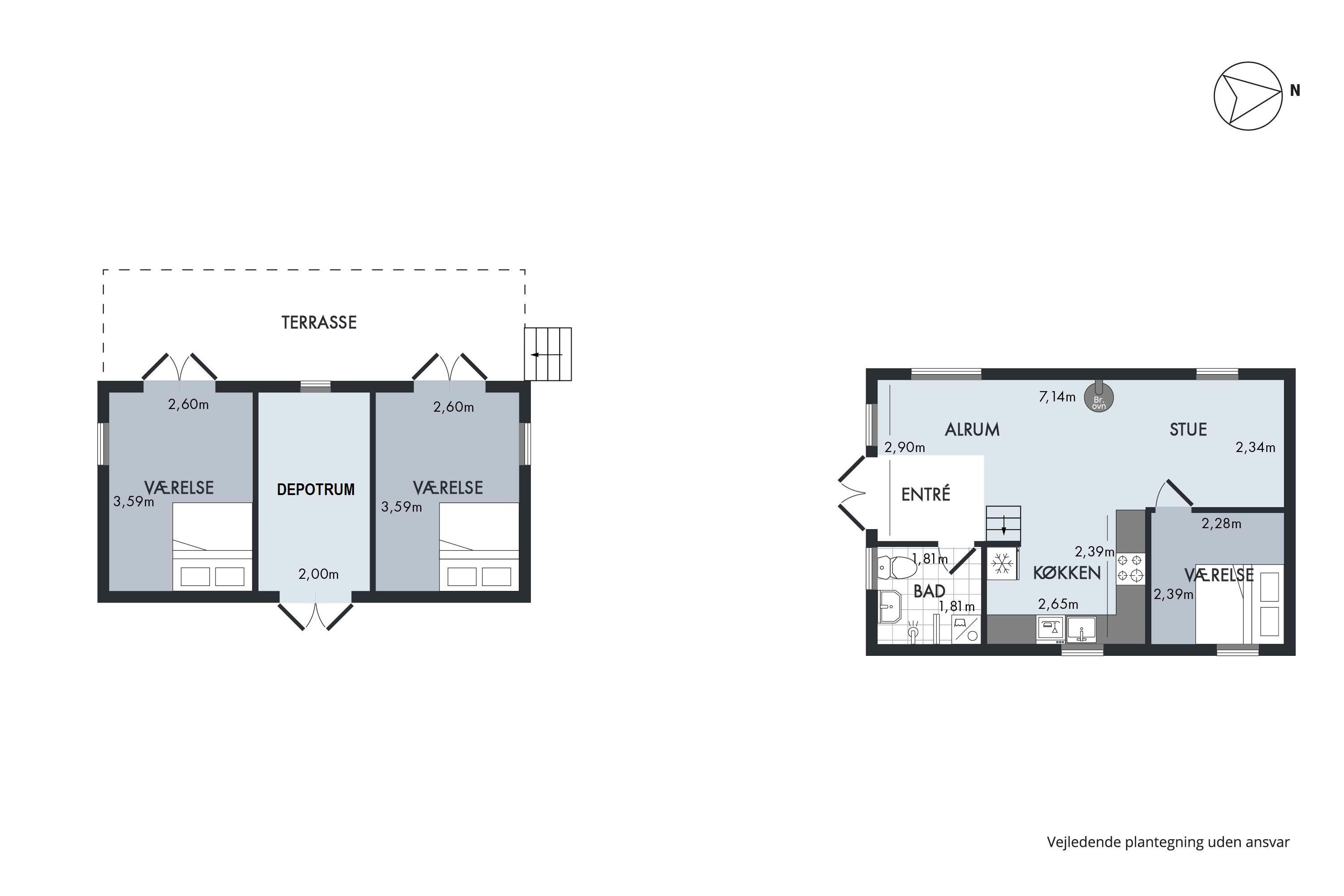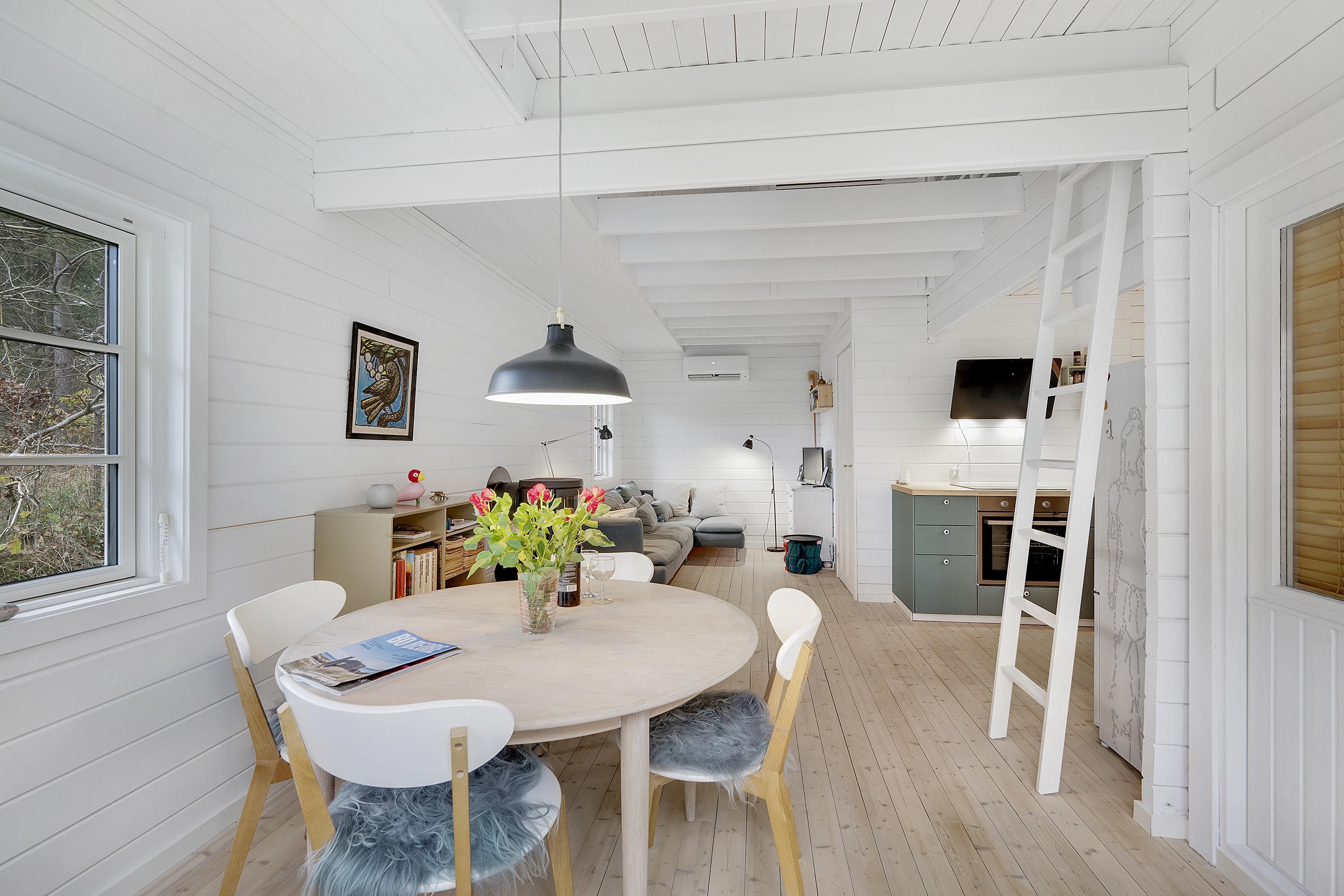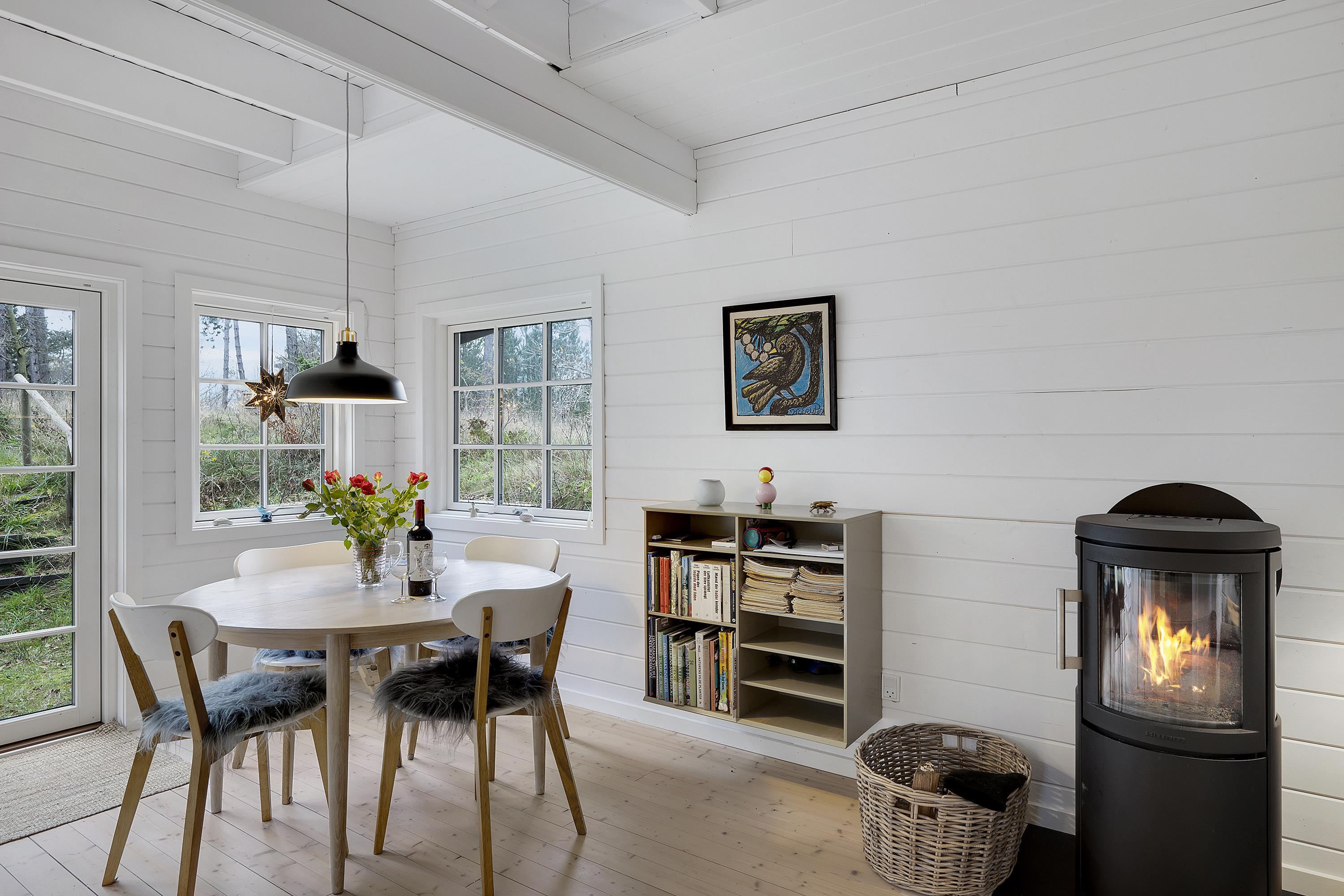 In the beautiful nature of the Handrup area, you’ll find this cozy and well-furnished little holiday home, which was completely renovated in 2022. The house features a lovely living room with both a wood stove and a heat pump, along with a new, stylish kitchen equipped with a dishwasher. The bathroom is equipped with a shower niche and underfloor heating. Additionally, there is access to both a washing machine and a tumble dryer. The sleeping arrangements include a bedroom with a double bed in the main house and two lovely bedrooms in the newly built annex, both with double beds. As an alternative, there is a loft in the main house that can be used. The house is located on a natural plot on a small cul-de-sac, making it ideal for children. TV is available via Chromecast/streaming services.