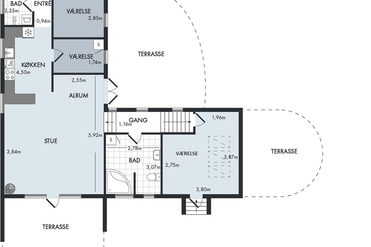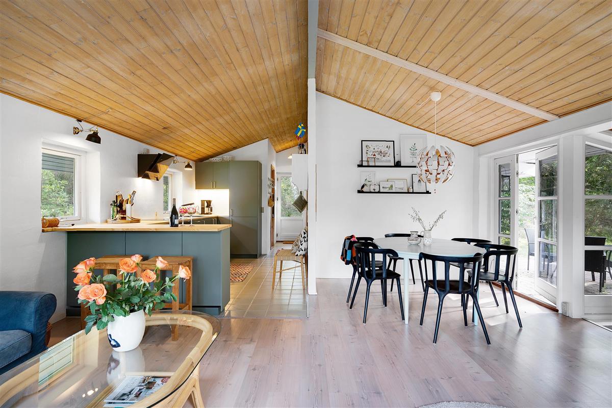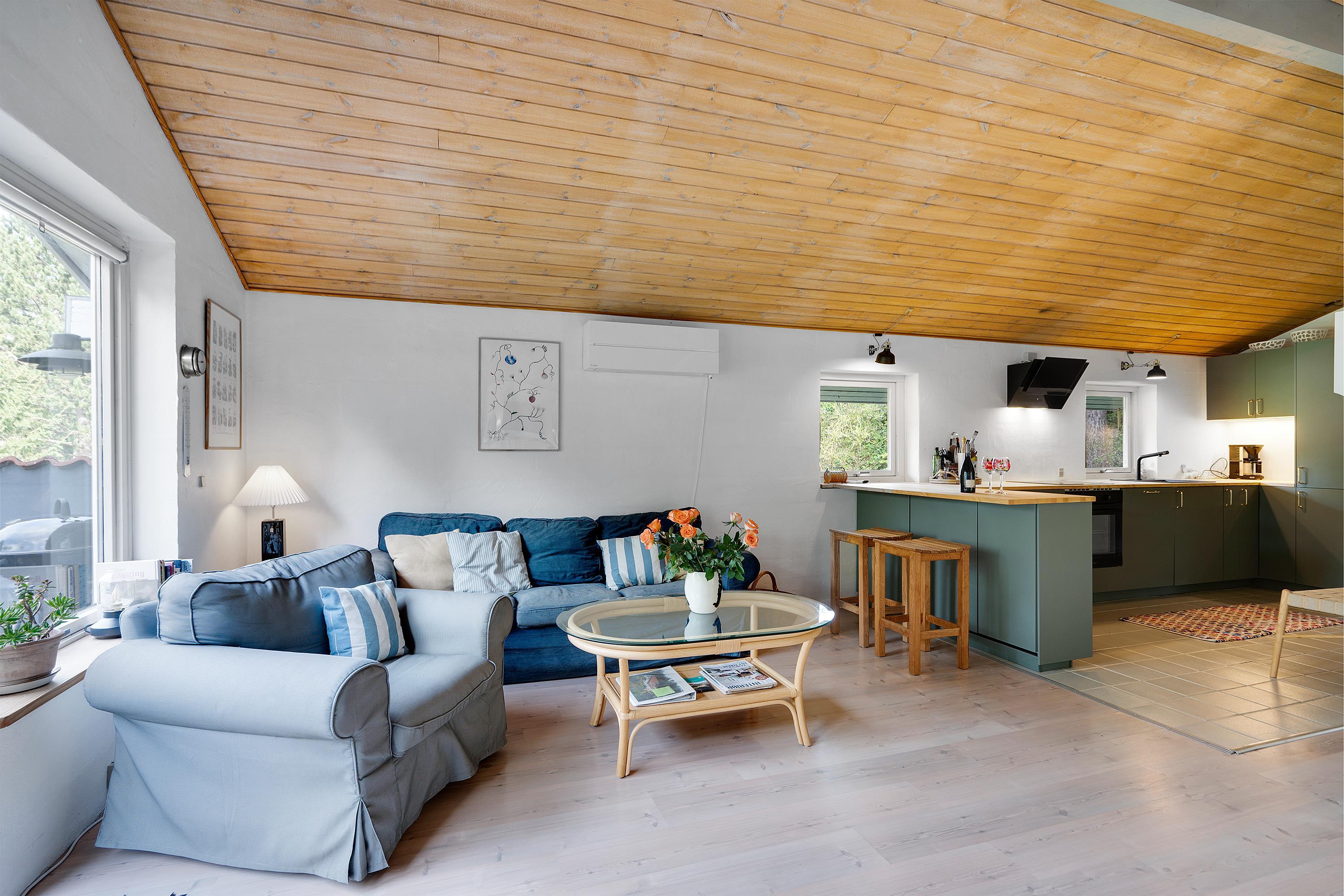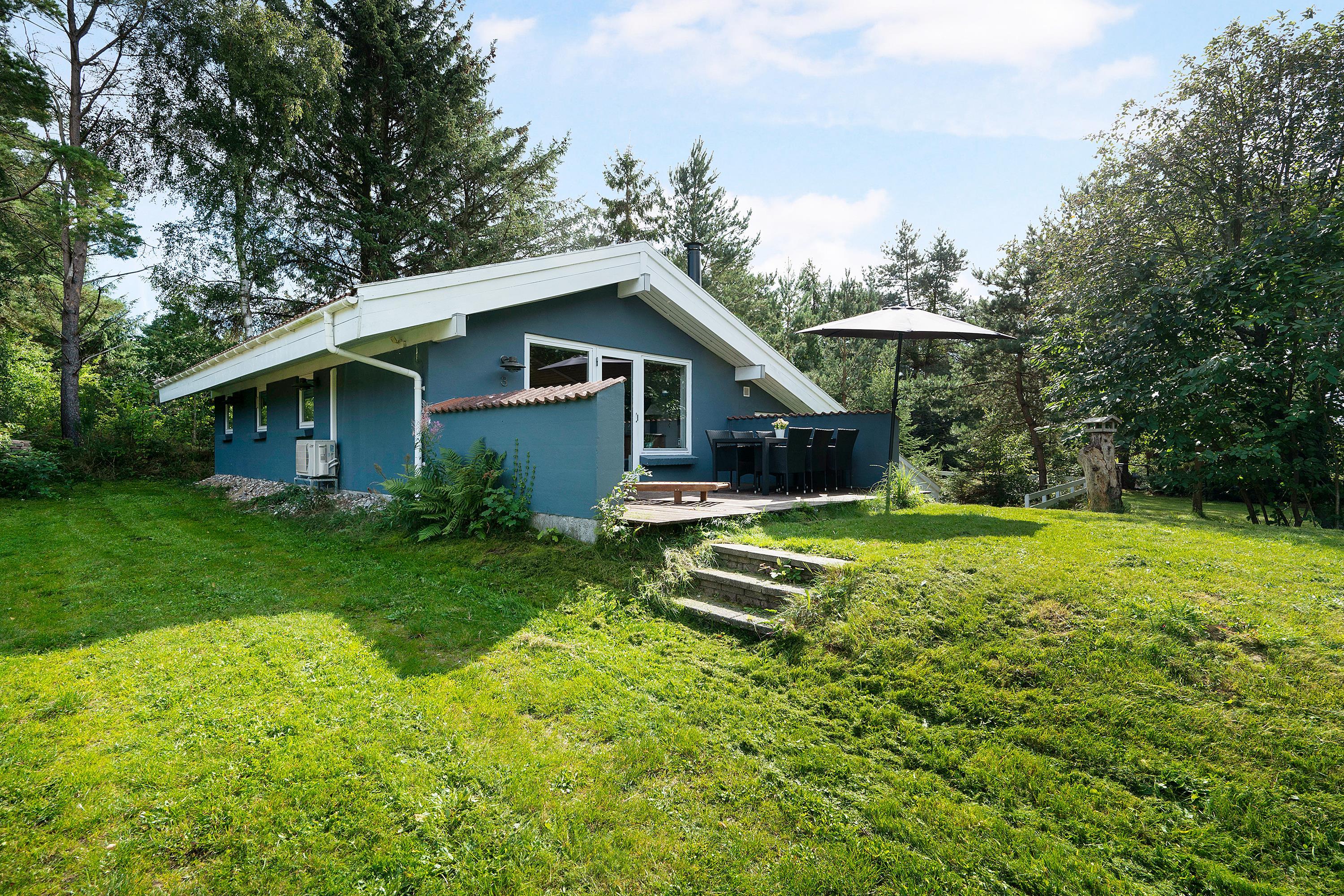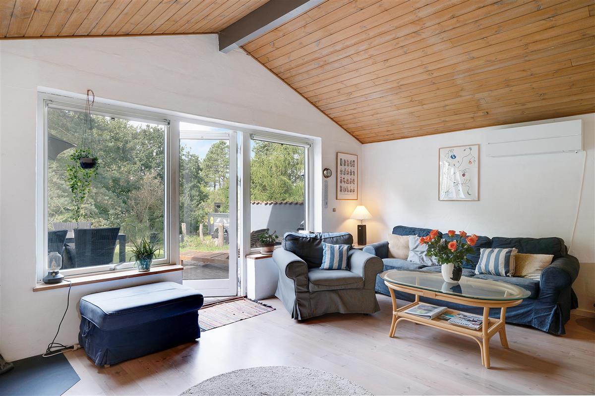 In the beautiful and peaceful area of Handrup Hills, you’ll find this older yet extremely cozy split-level holiday home. The house features a charmingly furnished living room with a wood-burning stove and a heat pump, as well as access to a lovely terrace. Adjacent to the living room is a stylish kitchen from 2022, along with a cozy dining nook, where you can also access another terrace.