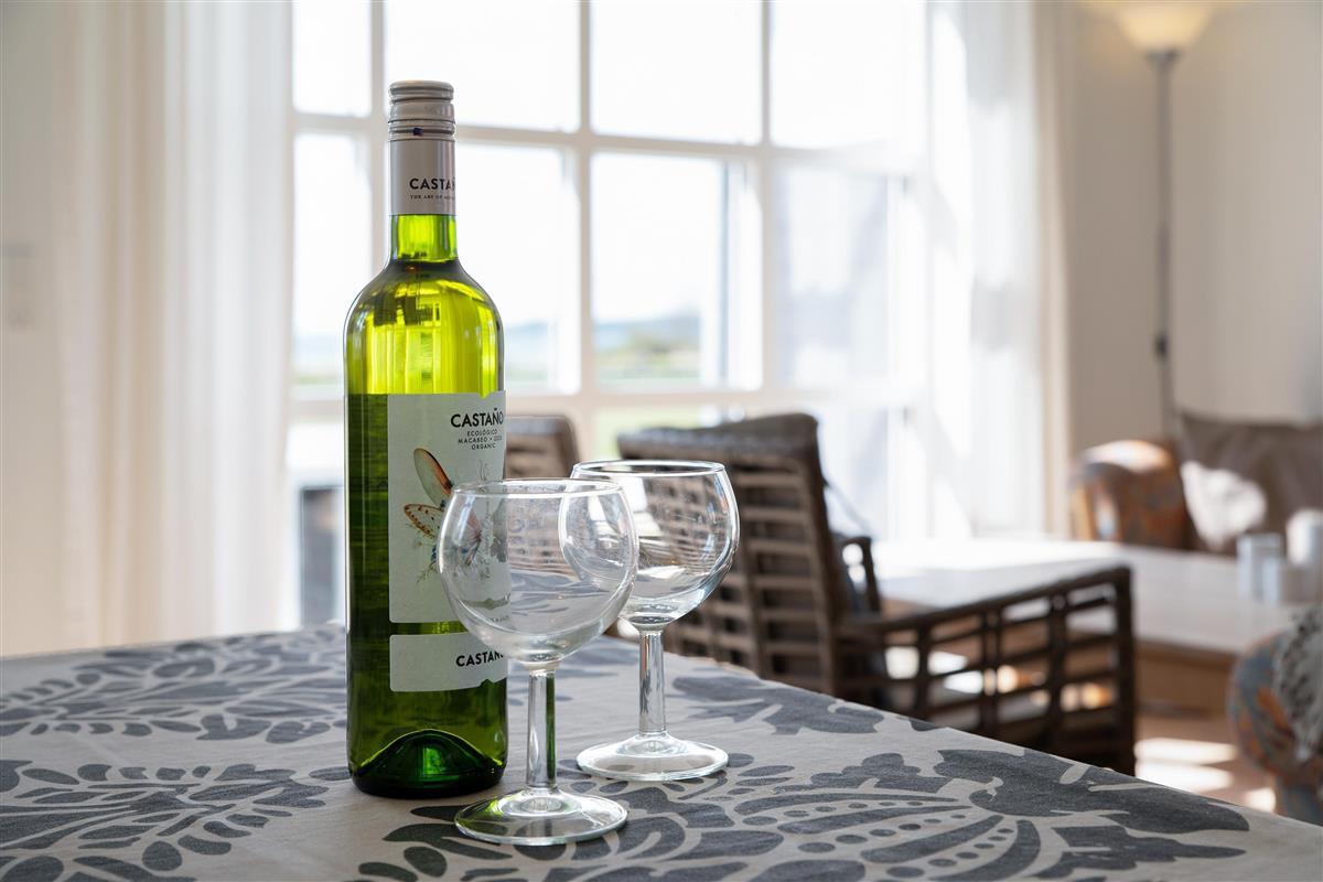 There is a luxurious, spacious tiled bathroom with a shower, a washing machine, and underfloor heating. The house offers six sleeping spaces divided into three delightful, bright bedrooms: one large room with a double bed and two smaller rooms, each with two single beds. The house also has a heat pump with air conditioning and internet access.