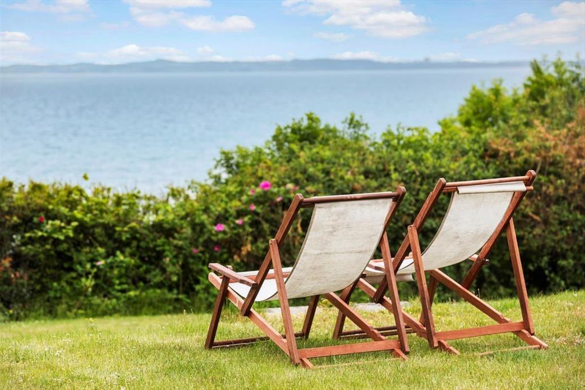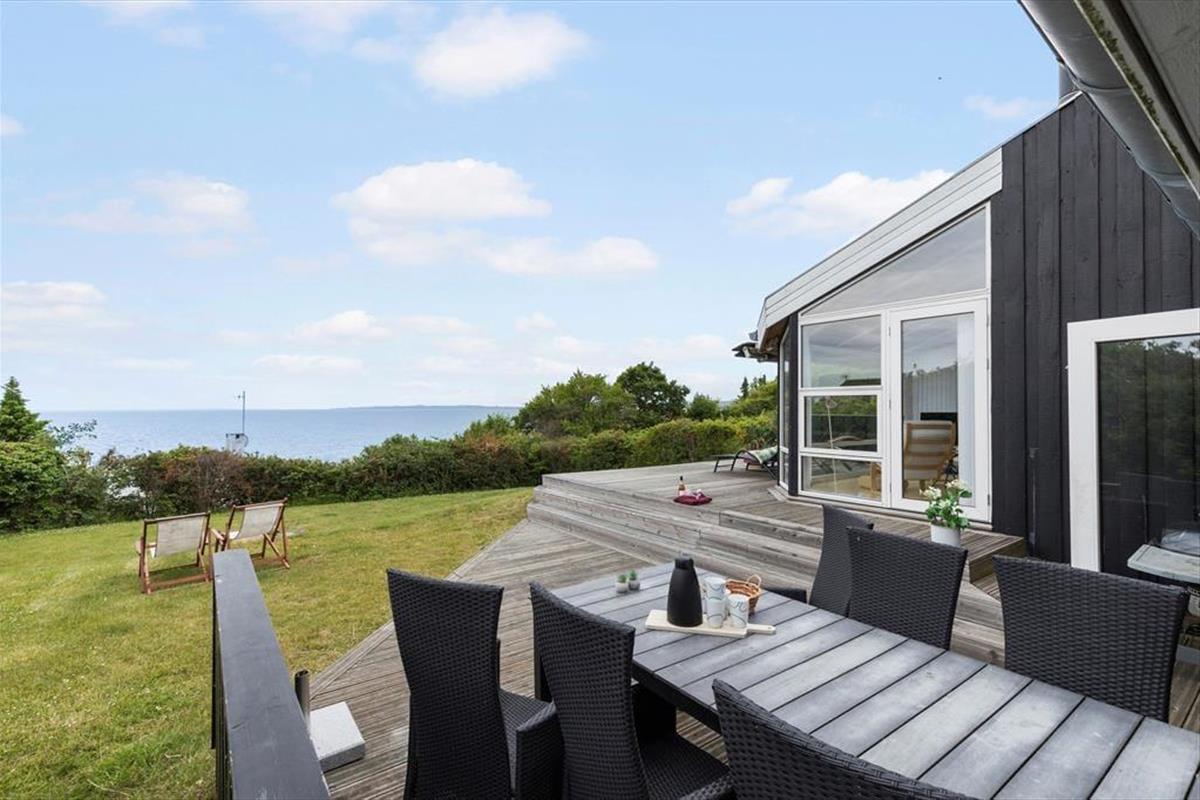 Unter freiem Himmel begrüßt dich eine schöne, sonnenverwöhnte Terrasse mit Gartenmöbeln und einem Grill - perfekt für ein Frühstück im Freien oder ein geselliges Abendessen nach einem langen, erlebnisreichen Tag. Die Terrasse überzeugt mit einem fantastischen Meerblick, der deine entspannten Stunden an der frischen Luft auf schönste Weise untermalt. Das große Grundstück bietet viel Platz zum Spielen, zum Entspannen und für gemeinsame, völlig ungestörte Momente in friedvollem Ambiente. Während deine Kinder vergnügt auf der Grasfläche umhertollen, kannst du es dir in aller Ruhe mit einem spannenden Buch gemütlich machen oder beim Klang der an den Strand rollenden Wellen die Seele baumeln lassen. Der Strand ist schnell erreicht, sodass du mit deiner Familie jederzeit zu erfrischenden Bädern im kühlen Nass und zu stimmungsvollen Spaziergängen entlang der Küste aufbrechen kannst.