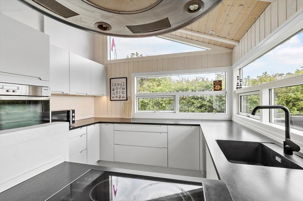 Dein Ferienhaus im Hornsvej 13, bei dem Funktionalität und Gemütlichkeit Hand in Hand gehen, begrüßt dich mit einer hellen, modernen Einrichtung. Die große Fensterpartie sorgt für einen tollen Tageslichteinfall und eröffnet zugleich einen prachtvollen Panoramaausblick auf das Meer, den du von morgens bis abends bewundern wirst. Der Wohnraum überzeugt mit ansprechenden Polstersitzmöbeln und einem Kaminofen, der dich und deine Mitreisenden an kühlen Abenden mit einem Maximum an klassischem Ferienhauscharme verzaubert. In der gut ausgestatteten Küche, die unter anderem einen Geschirrspüler und einen Backofen umfasst, wird die Zubereitung der täglichen Mahlzeiten zum Vergnügen. Du bereitest hier den ersten Kaffee des Tages garantiert ebenso gerne zu, wie ein 3-Gänge-Menü am Abend. Nach einem langen Ausflugs- oder Badetag gönnst du dir am besten ein erholsames Bad im Whirlpool, der für dich im tollen Badezimmer bereit steht. Mit drei ansprechenden Schlafräumen und dem geräumigen, zeitlosen Badezimmer mit Fußbodenheizung ist viel Komfort für Familien und befreundete Paare garantiert.