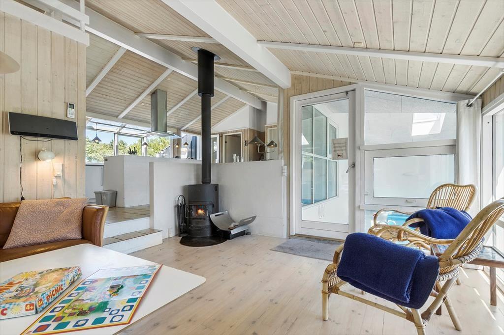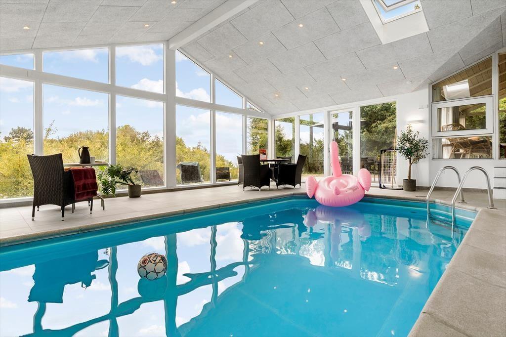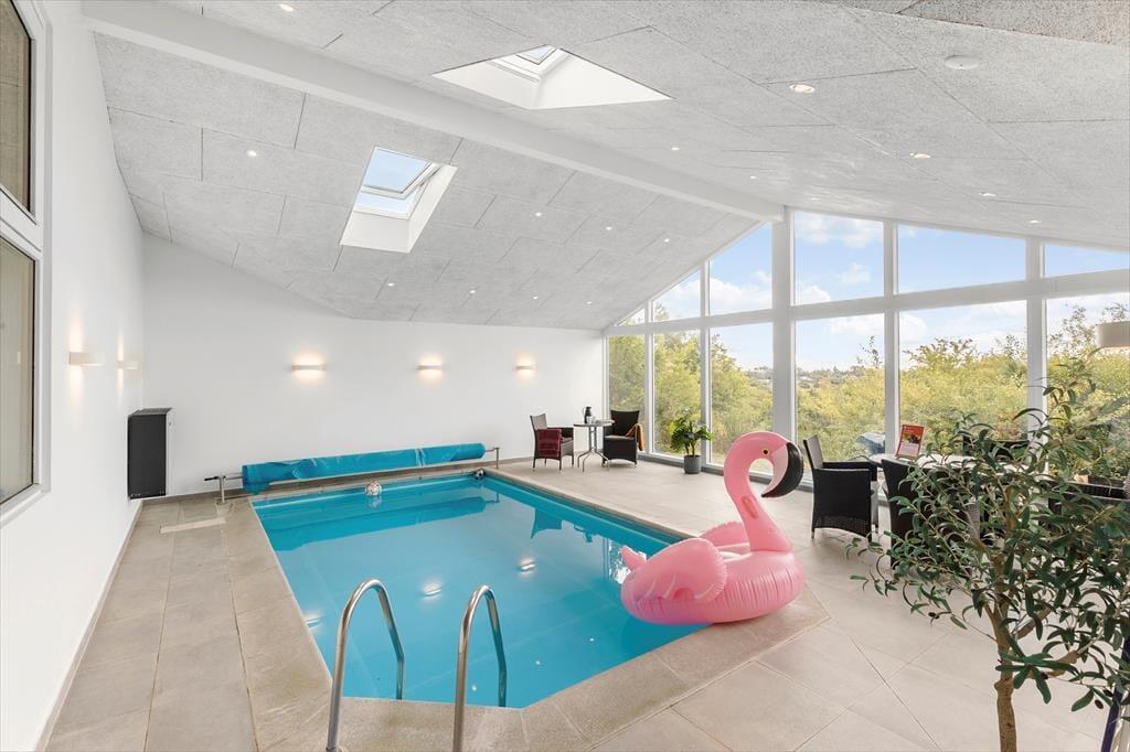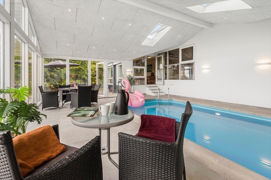 Willkommen in Ihrem gemütlichen Urlaubsparadies in Solkrogen 14 in der Nähe von Ebeltoft auf dem naturreichen Djursland. Hier betreten Sie ein helles, geräumiges und komfortables Ferienhaus für acht Personen mit vier Schlafzimmern und einem schönen Badezimmer. Hohe Decken und große Fensterfronten sorgen für viel Tageslicht, und die schöne Einrichtung und moderne Ausstattung – darunter Sauna, Holzofen, Geschirrspüler, Waschmaschine, Wäschetrockner und nicht zuletzt ein Innenpool – bieten optimale Voraussetzungen für Entspannung und geselliges Beisammensein.