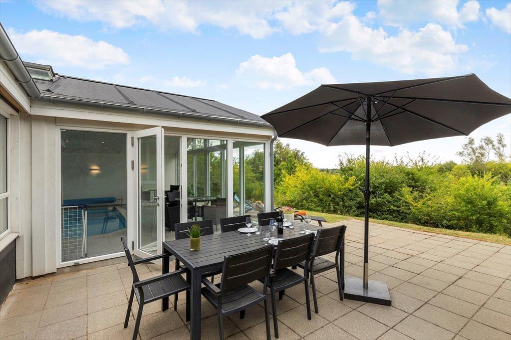 Bei Solkrogen 14 haben Sie einen wunderschönen Außenbereich für Ihren Urlaub. Die Terrasse lädt zum Entspannen in der Sonne, zu langen Grillabenden und gemütlichen Stunden unter freiem Himmel ein. Hier können Sie sich in den Gartenmöbeln zurücklehnen, während die Kinder herumtollen. Das Grundstück liegt ruhig und hoch, sodass Sie einen schönen Blick auf die umliegende Landschaft und die Ebeltoft-Bucht haben – hier spüren Sie die Ruhe und Natur direkt vor der Haustür. Der Strand ist nur 10 Gehminuten entfernt und erwartet Sie mit weichen Sandstränden und dem frischen Wasser der Ebeltoft-Bucht – perfekt für ein Bad, ein Picknick oder einen Abendspaziergang bei Sonnenuntergang.