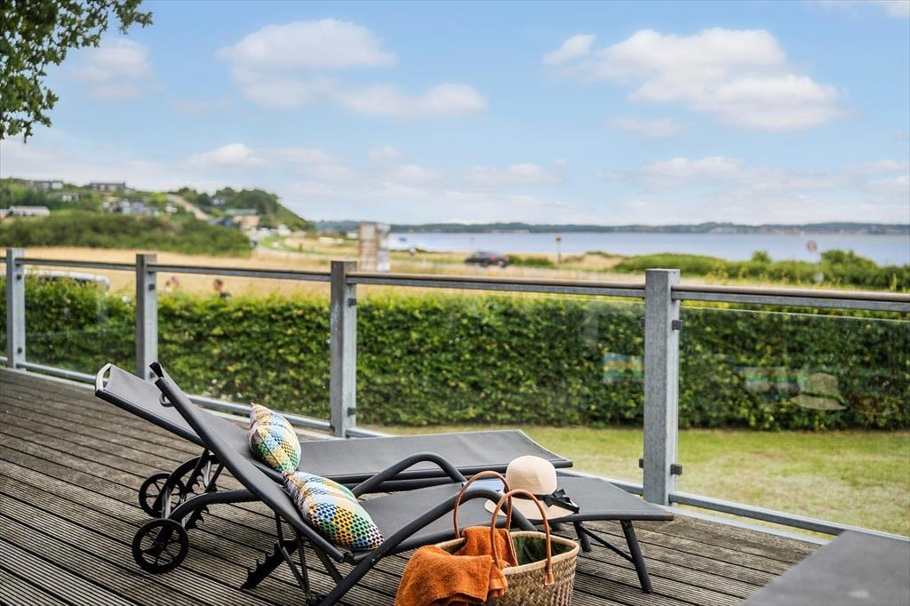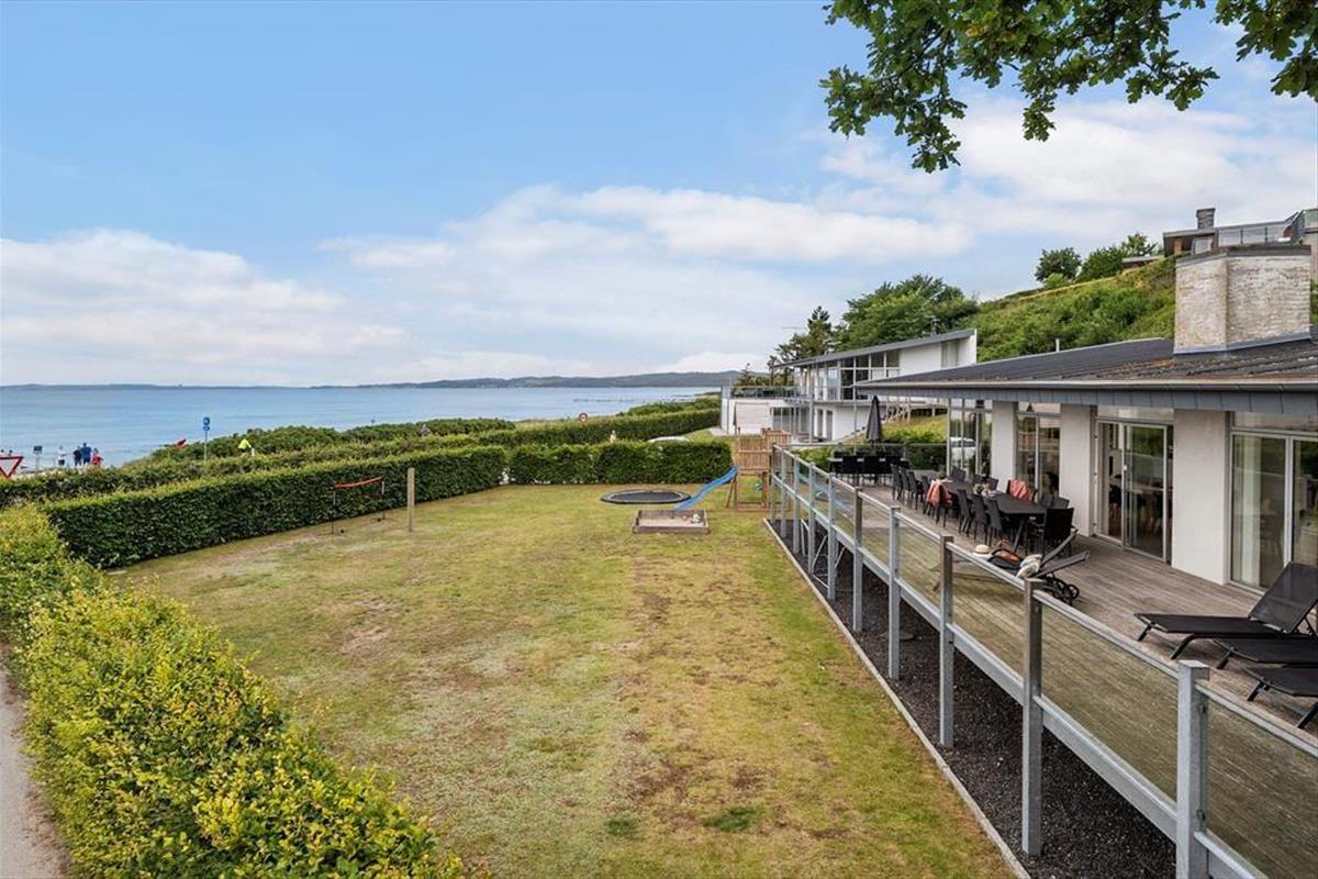 Unter freiem Himmel geht es bei diesem Ferienhaus mindestens genauso schön zu, wie im Haus selbst. Du darfst dich auf eine schöne, große Terrasse freuen, auf der du die Sonne und den Blick auf das Meer in vollen Zügen genießen kannst. Mache es dir in aller Ruhe auf einer der Gartenliegen gemütlich und lasse die Seele baumeln, nehme ein spannendes Buch zur Hand oder bereite alles für ein köstliches Abendessen vom Grill zu. Der Garten bietet deinen Kindern angenehm viel Platz zum Spielen. Zudem verwöhnt er mit kleinen, gemütlichen Eckchen, die es dir ermöglichen, dich in aller Ruhe ein wenig zurückzuziehen. Die tolle Lage deines Urlaubsdomizils bedingt einen uneingeschränkten Blick auf das Wasser. Lediglich zwei Minuten trennen dich und deine Lieben vom Strand - perfekt, um jeden Tag mit einem erfrischenden Bad in den wogenden Wellen zu begrüßen und mit einem Strandspaziergang im Abendlicht ausklingen zu lassen.