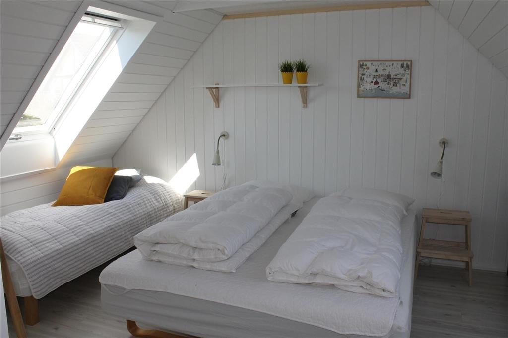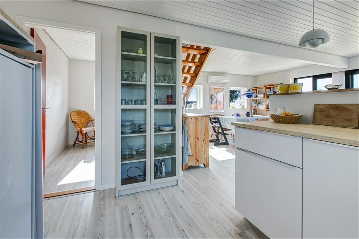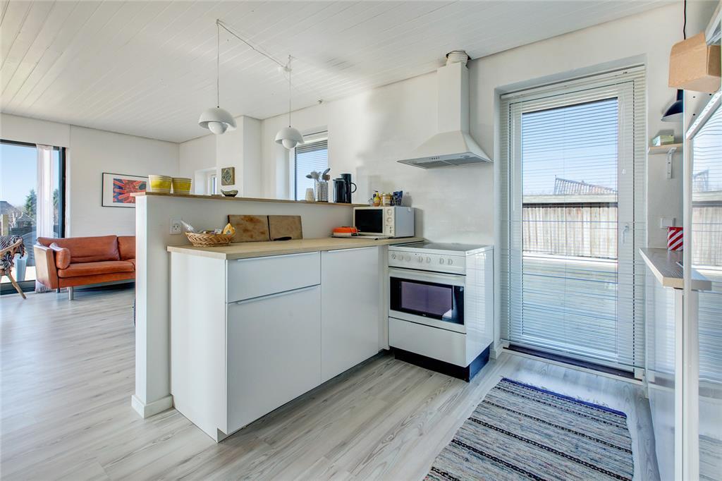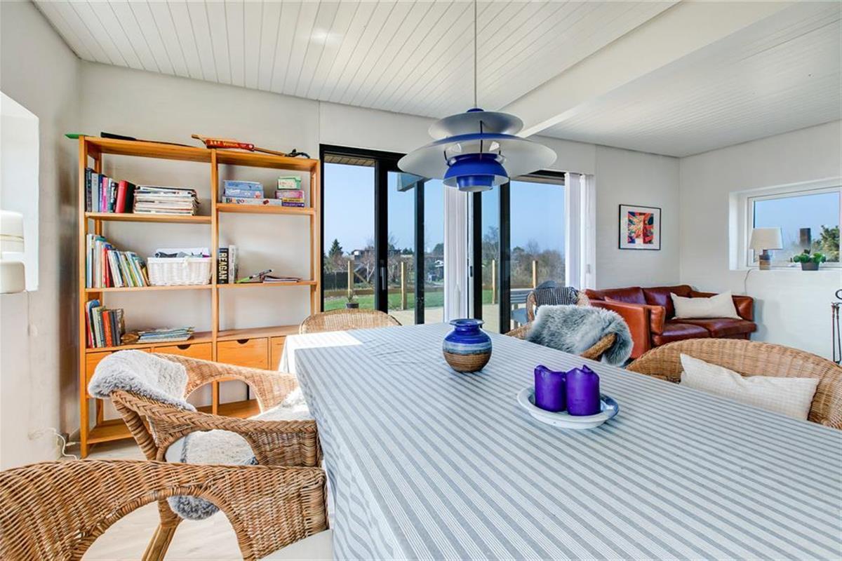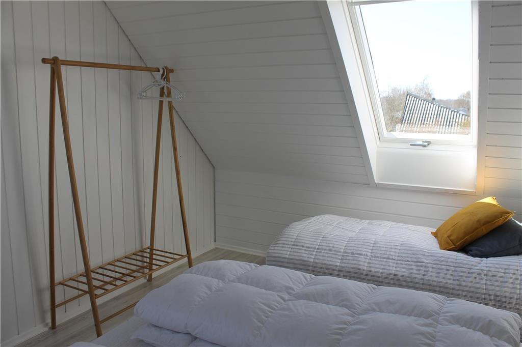 Mit fantastischem Meerblick heißt dich dieses gemütlich renovierte Ferienhaus willkommen. Bei der Einrichtung des zweigeschossigen Mietobjekts hat der Eigentümer großen Wert auf Komfort und beste Erholungsmöglichkeiten gelegt. Im Erdgeschoss empfängt dich eine Küche, die mit allem Notwendigen ausgestattet ist. Ein Geschirrspüler steht selbstverständlich zur Verfügung. Die Küche ist offen mit dem gemütlichen Esszimmer kombiniert, das mit einem Kaminofen und Tür zur großen Terrasse zu punkten weiß. Die wunderbare Aussicht auf die Ebeltoft Vig untermalt eure geselligen Runden und Mahlzeiten am Esstisch in schönster Weise. Das Erdgeschoss umfasst außerdem ein attraktives Badezimmer mit Duschnische und Fußbodenheizung und zwei Schlafräumen. Einer der Schlafräume verfügt über ein Einzelbett. Im zweiten Raum erwarten dich zwei Einzelbetten, die bei Bedarf zu einem Doppelbett zusammengeschoben werden können.