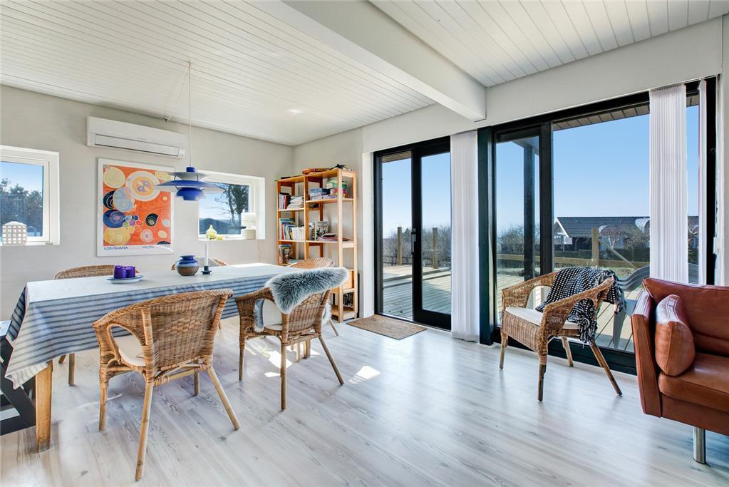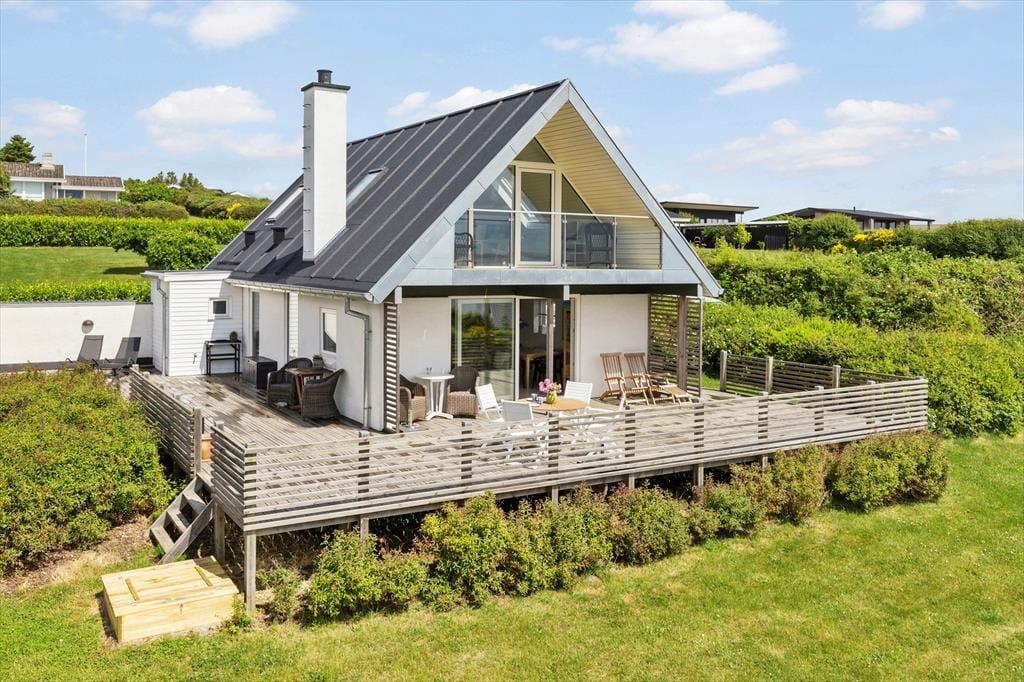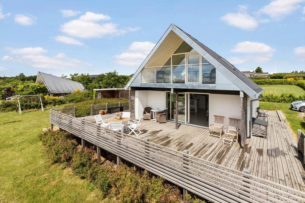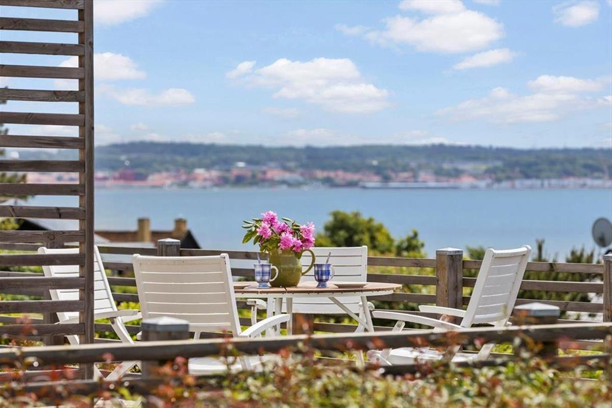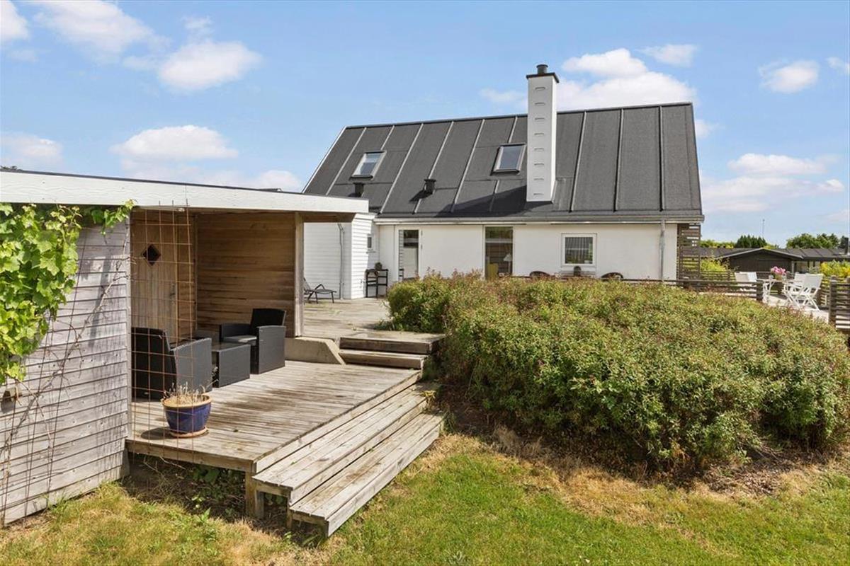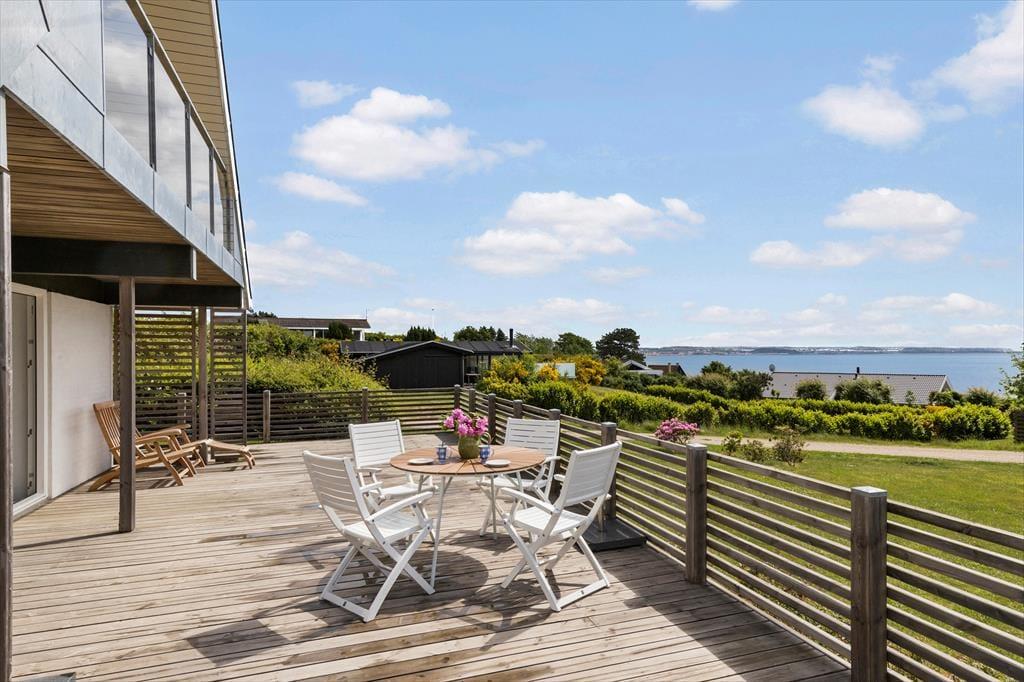 Dein Ferienhaus liegt auf abschüssigen Grundstück mit großer Rasenfläche, die Groß und Klein viel Platz zum Spielen und für andere Outdoor-Aktivitäten bietet. Rund ums Haus erstreckt sich ein imposantes, rund 130 m² großes Terrassenareal mit guten Gartenmöbeln und einem Grill. Hier könnt ihr viele erholsamen Stunden und gesellige Runden unter freiem Himmel erleben. Entspannte Momente in der Morgen- und Abendsonne krönt die herrliche Aussicht über die Ebeltoft Vig. Vom Grundstück gelangst du über kleine Wege und Pfade innerhalb von zehn Minuten zu Fuß an den nur 250 Meter entfernten Sandstrand.
