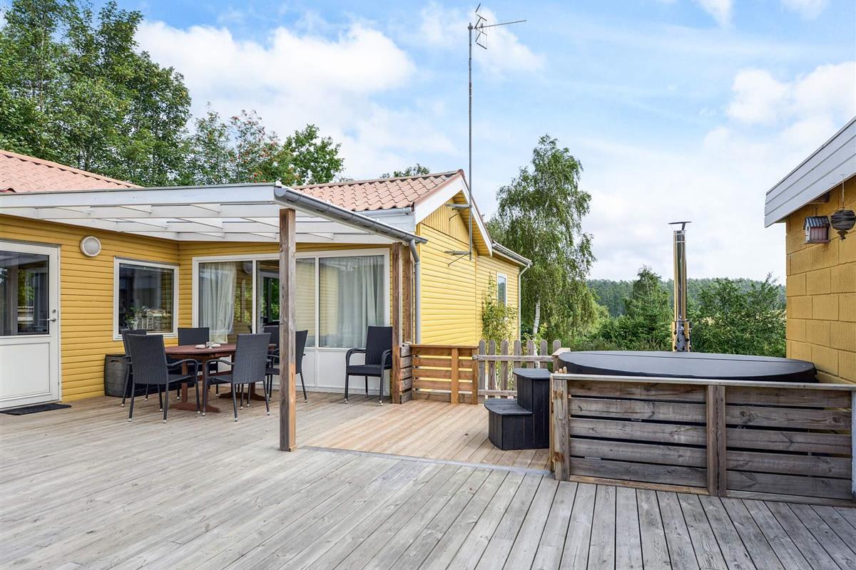 Das Ferienhaus steht auf einem schönem, ungestörten Grundstück mit Rasenfläche, die zum Spielen einlädt. Auf den verschiedenen Terrassen können Sie die Sonne genießen.