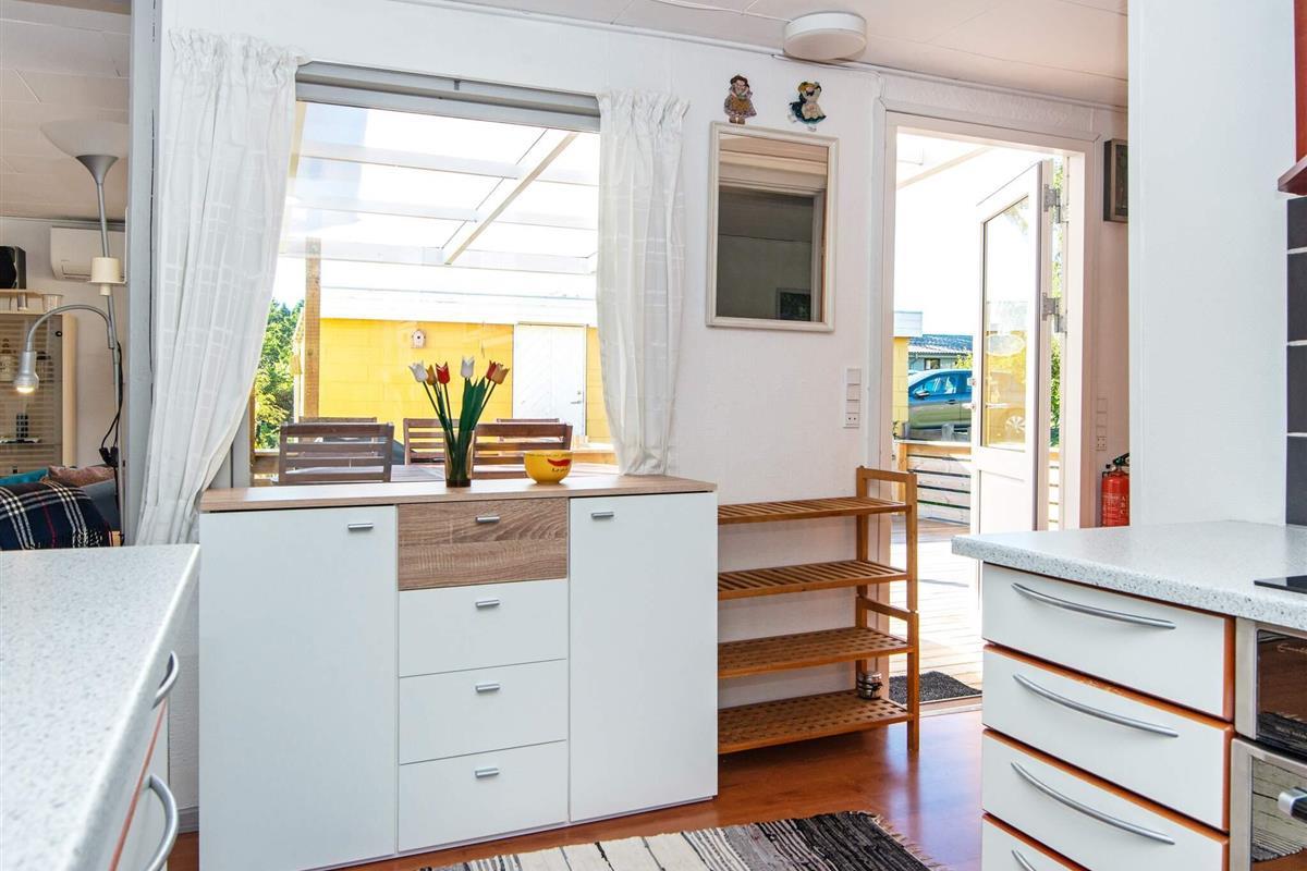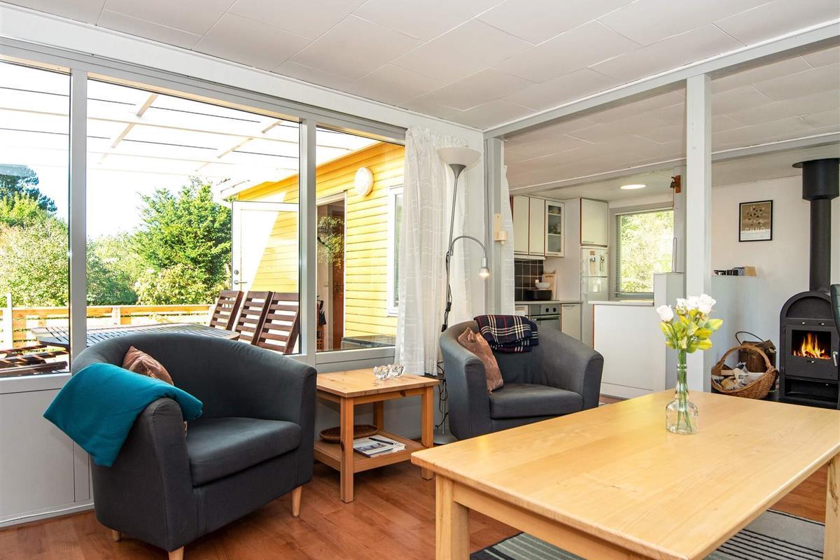 Ferienhaus in ruhiger Lage in einem Ferienhausgebiet. Das Haus wurde 2016 renoviert mit u.a. einer neuen Küche. Da die Küche im Wohnraum offen integriert ist, können alle beim Essen Zubereiten beisammen sein. Zum großen Schlafzimmer gehört ein eigens Bad. Im anderen Schlafzimmer stehen zwei Einzelbetten und im Wohnzimmer eine doppelte Aufbettung.