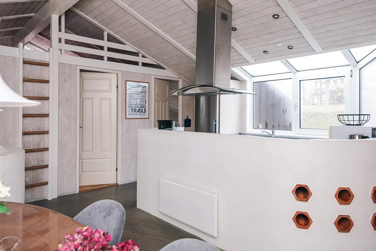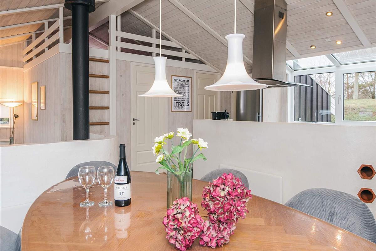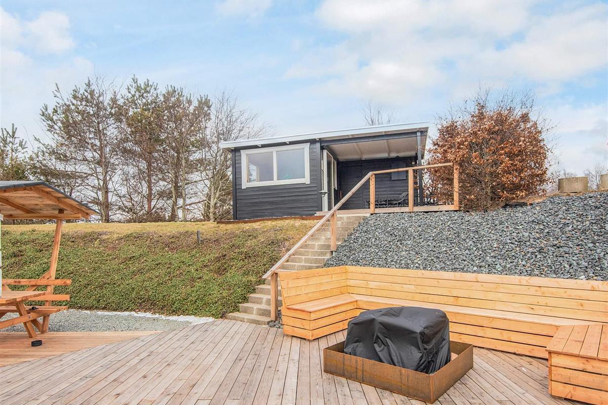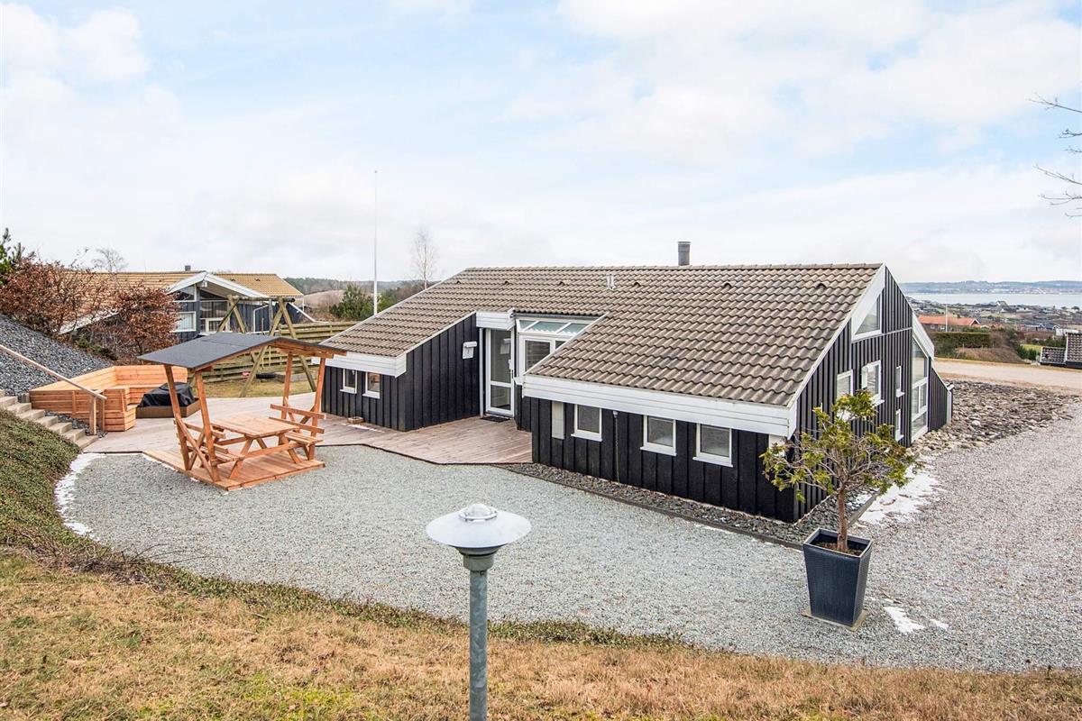 Gut gelegenes Ferienhaus mit Innenpool, Sauna und Panoramablick bei Handrup Bakker Dieses geräumige und gepflegte Ferienhaus befindet sich in der attraktiven Gegend Handrup Bakker, nahe Ebeltoft. Das Haus bietet Platz für bis zu 8 Personen und eignet sich sowohl für Familienurlaube als auch für Aufenthalte mit Freunden. Das Ferienhaus ist hell und modern eingerichtet, mit offen verbundenem Wohnzimmer und Küche. Vom Wohnzimmer aus genießen Sie einen herrlichen Panoramablick über die Bucht, die Küstenlinie und die Stadt Ebeltoft, und bei klarem Wetter ist Samsø am Horizont zu sehen. Das Haus ist mit energieeffizienten Lösungen ausgestattet, darunter eine Wärmepumpe und Klimaanlage, die das ganze Jahr über für ein angenehmes Raumklima sorgen. Eine Luft-Wasser-Wärmepumpe wird zur Beheizung des Pools genutzt, was die niedrigstmöglichen Kosten für die Poolheizung gewährleistet. Es gibt 4 Schlafzimmer und 2 Badezimmer mit Fußbodenheizung. Der hauseigene Innenpool und die Sauna bieten zu jeder Jahreszeit Entspannung. Im Außenbereich befindet sich ein 1.270 m² großes, angelegtes Grundstück mit schönen Terrassen nach Norden und Süden, Gartenmöbeln, Liegestühlen und Grill. Hier gibt es viel Platz zum Entspannen und Spielen, und außerdem eine gemütliche Feuerstelle, die zu Stockbrot und gemeinsamen Stunden an warmen Sommerabenden einlädt. Für die jüngsten Familienmitglieder gibt es einen Aktivitätsraum mit Platz zum Spielen und Verweilen – und gleichzeitig eine herrliche Aussicht, sodass sowohl Kinder als auch Erwachsene die Umgebung genießen können. Kostenlose Parkplätze sind auf dem Grundstück vorhanden, und ein Hund ist erlaubt. Die Umgebung bietet schöne Badestrände, malerische Wander- und Radwege sowie Restaurants in der Nähe. Ebeltoft liegt etwa 6 km vom Haus entfernt und bietet charmante Gassen, Einkaufsmöglichkeiten und Sehenswürdigkeiten. Das Ferienhaus ist außerdem ein idealer Ausgangspunkt für Ausflüge in Djursland und den restlichen Teil Ostjütlands. Ein gut ausgestattetes Ferienhaus in naturschöner Umgebung mit Fokus auf Komfort, Aussicht und Entspannung.