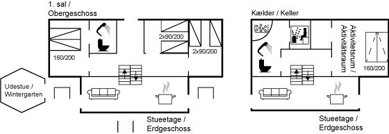 Er is 2 badkamers met douchehok en 2 toiletten. Er is vloerverwarming in 2 van de badkamers. De sauna biedt de gelegenheid tot ontspanning.