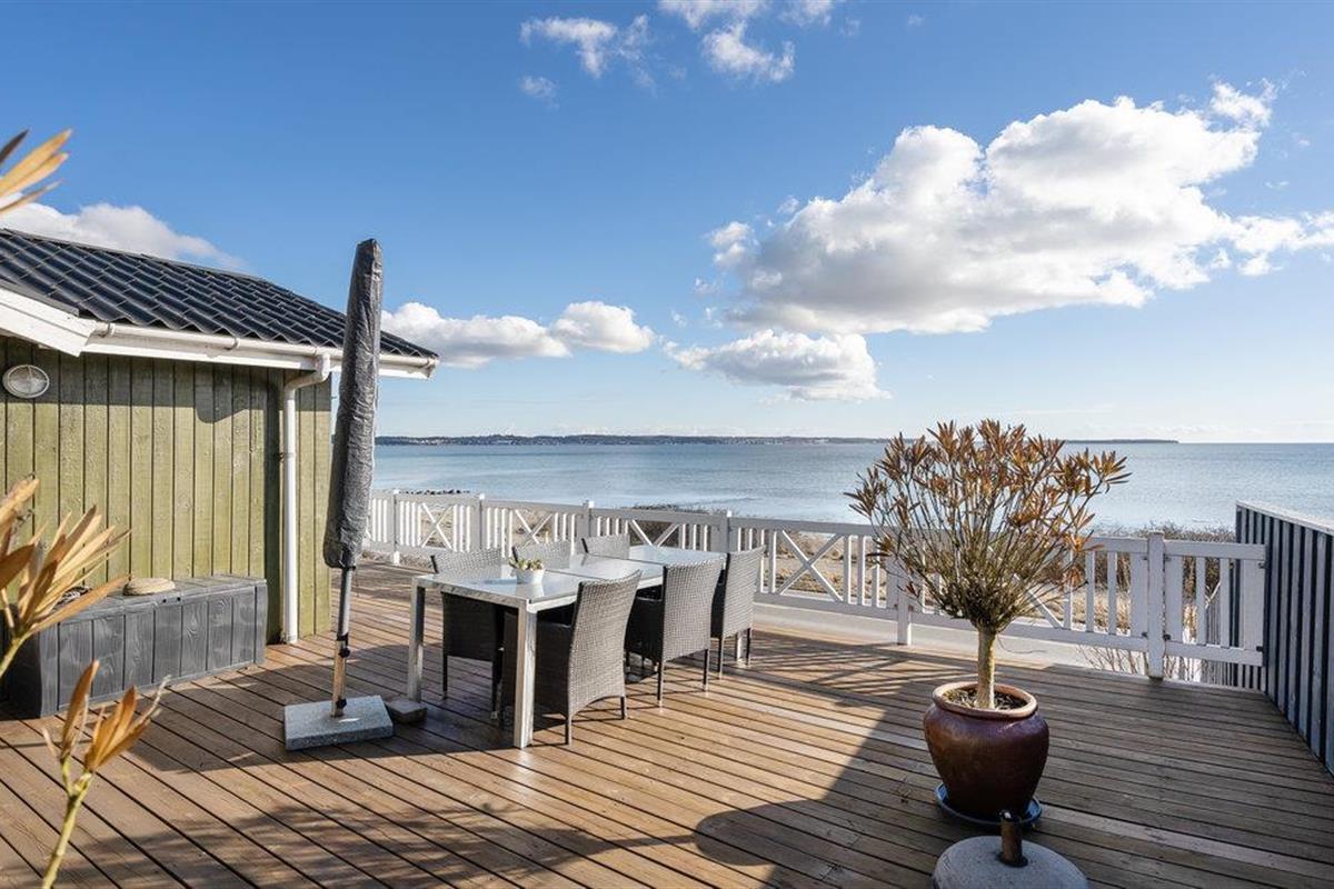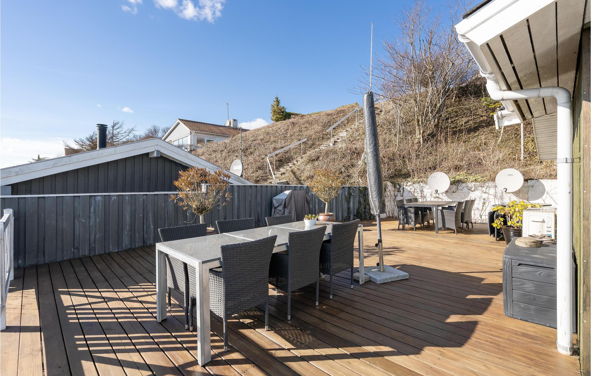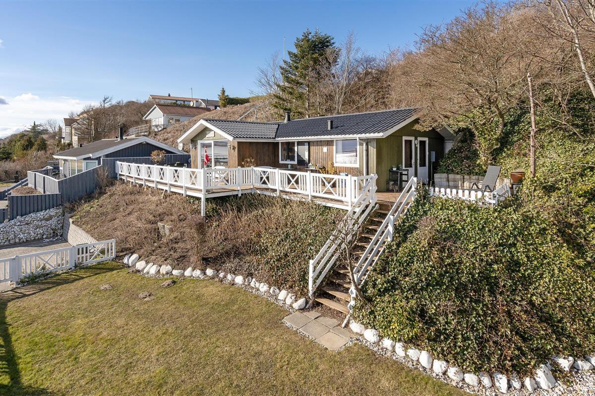 Charmant vakantiehuis met zeezicht en open terras nabij Handrup Strand.