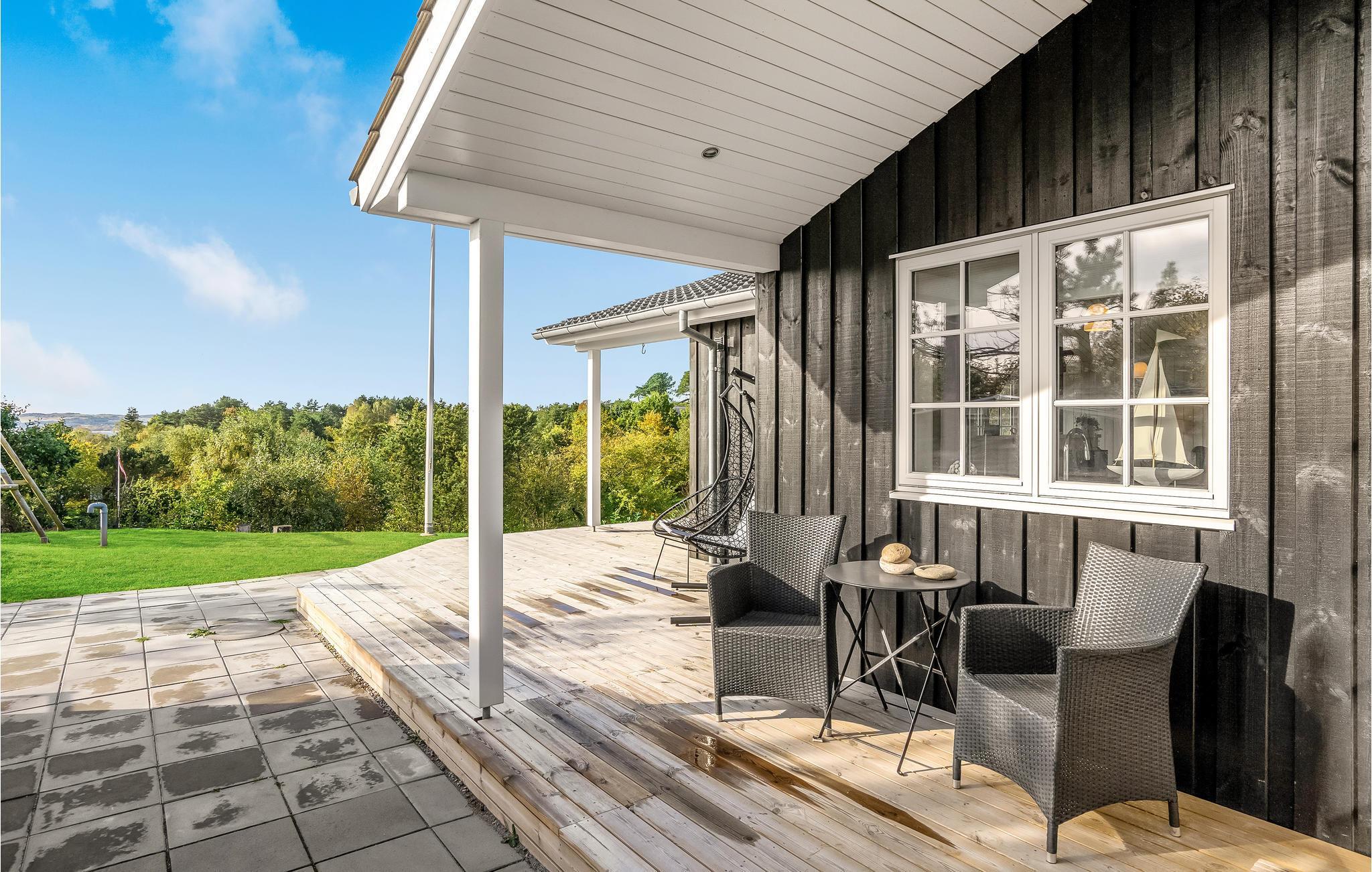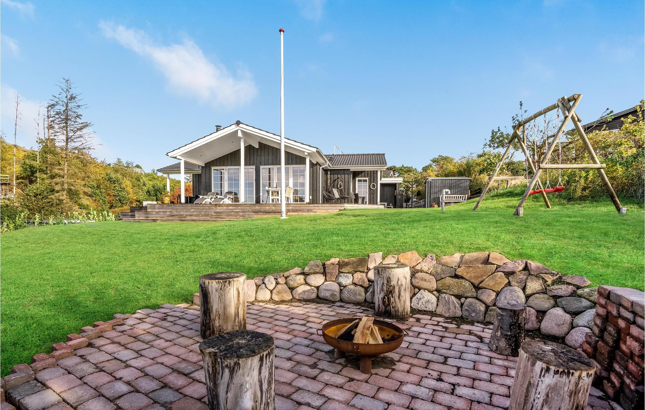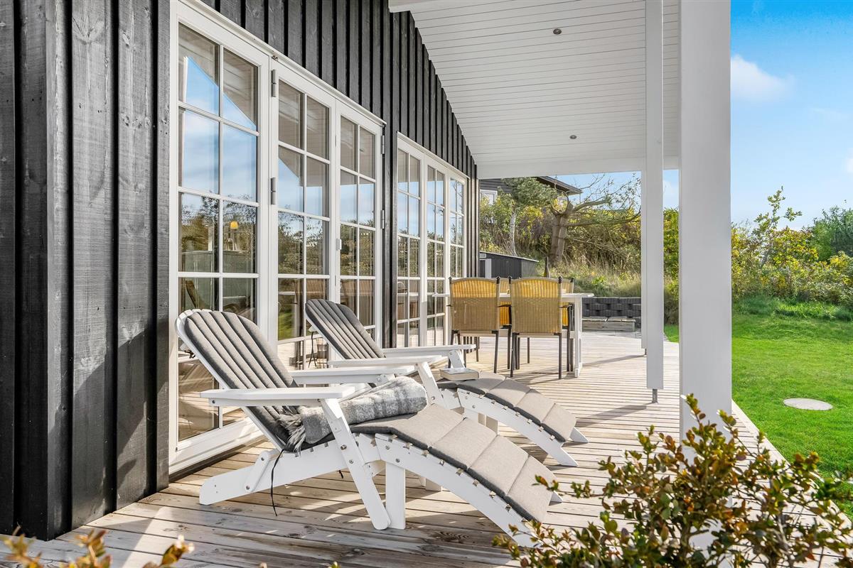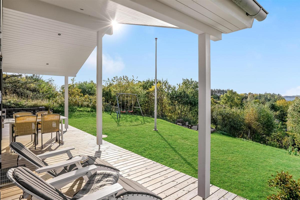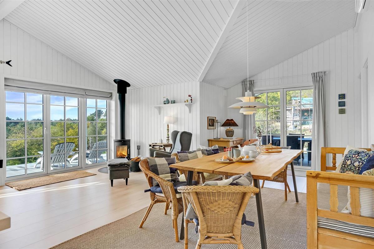Hoogwaardig vakantiehuis op een natuurgrondstuk met uitzicht op het water en op loopafstand van een kindvriendelijk zandstrand. Het huis is ingericht met ruime slaapkamers. De keuken is eersteklas. Vanuit het eetgedeelte heeft u toegang tot een overdekt terras en de patio's liggen rondom het huis.