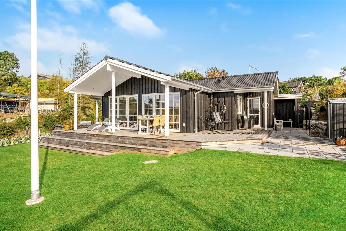 Hoogwaardig vakantiehuis met zeezicht, nabij kindvriendelijk zandstrand in Ebeltoft.