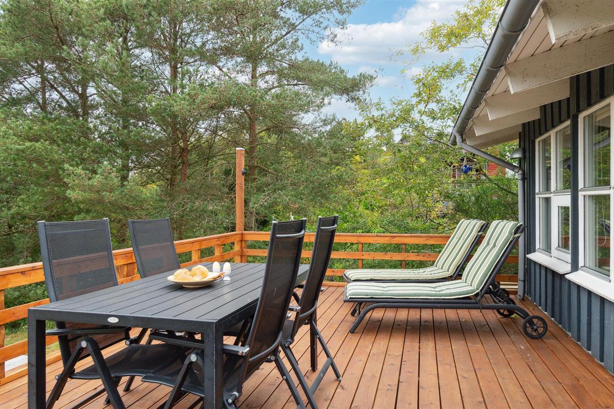 Rondom het huis is een houten terras waar u kunt genieten van uw vakantiemaaltijden in de buitenlucht of kunt zonnebaden op warme dagen. Hier staan tuinmeubelen en een barbecue tot uw beschikking.