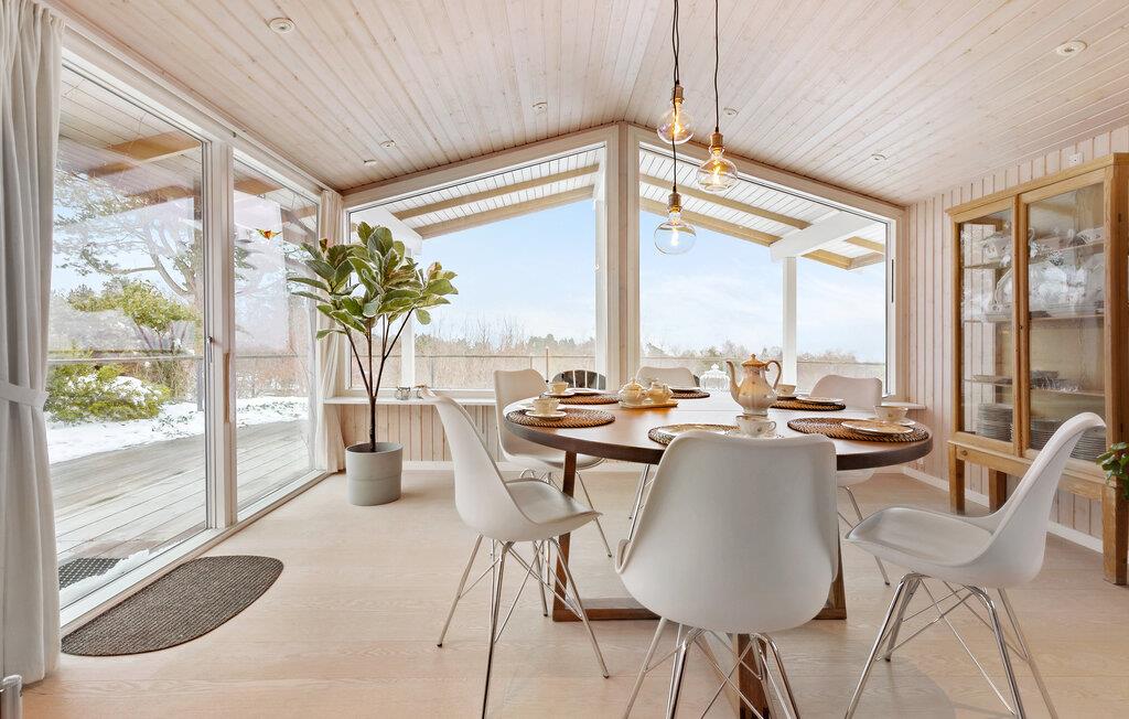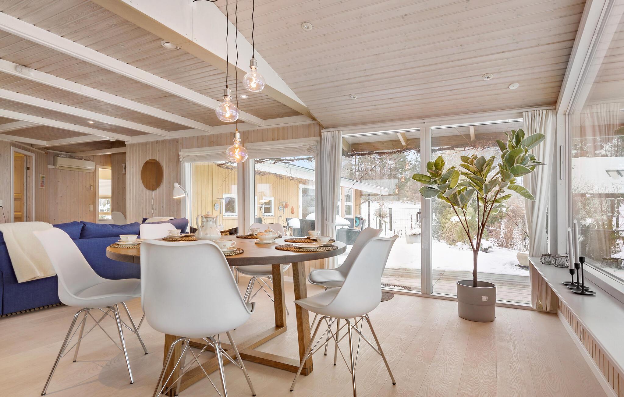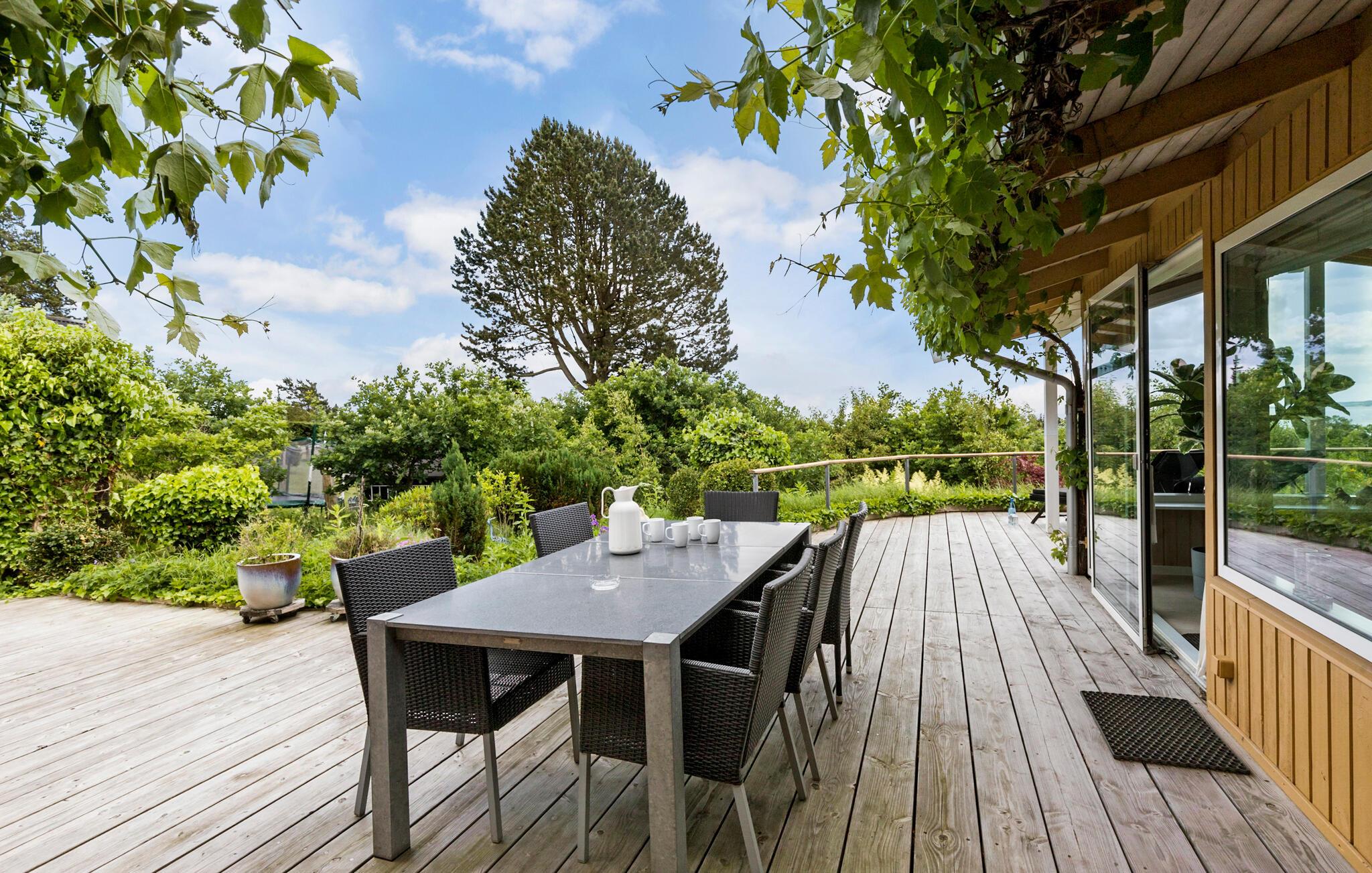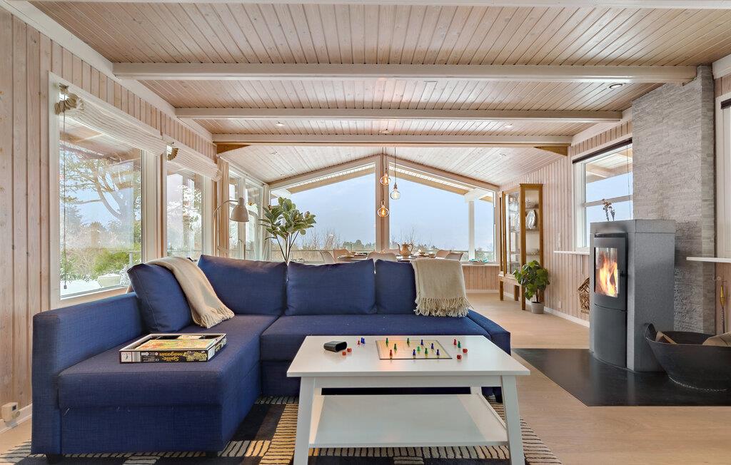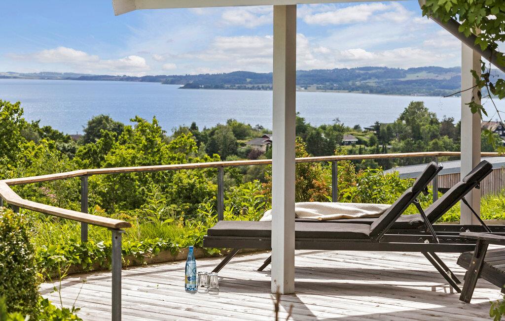 Geloof je ogen en neem plaats op het terrasmeubilair! Je zult tijdens je vakantie genieten van dit prachtige panoramische uitzicht. De woonkamer maakt ook gebruik van dit uitzicht en biedt je een lichtdoorstroomde woonsfeer met zijn panoramische ramen. De inrichting en uitrusting laten niets te wensen over en beloven je comfort en welzijn. Geniet van je dagelijkse vakantie met koken, eten, spelen en ontspannen en geniet van de ochtendzon op het grote zonneterras met een kopje koffie en uitzicht op de baai van Ebeltoft.