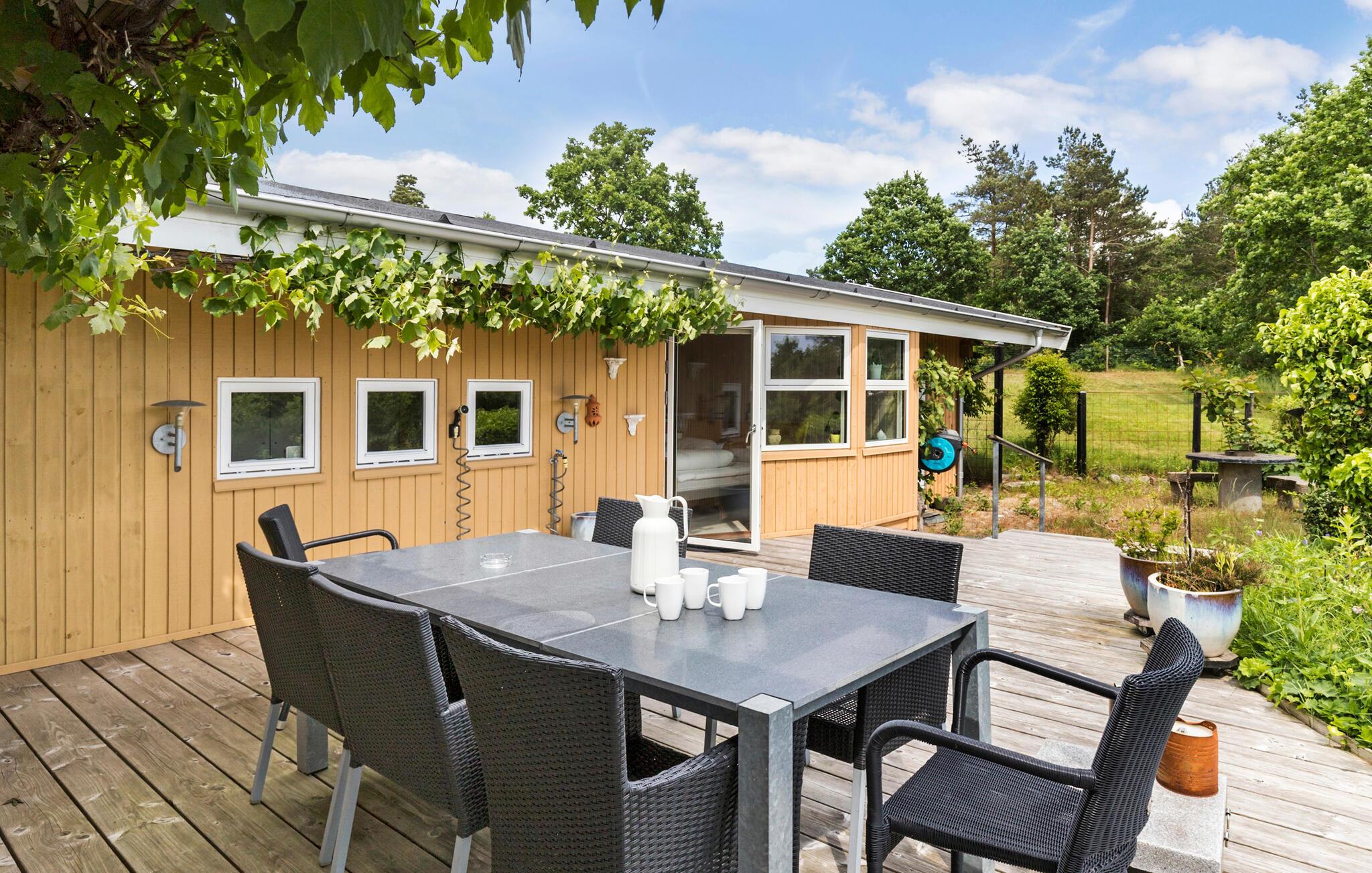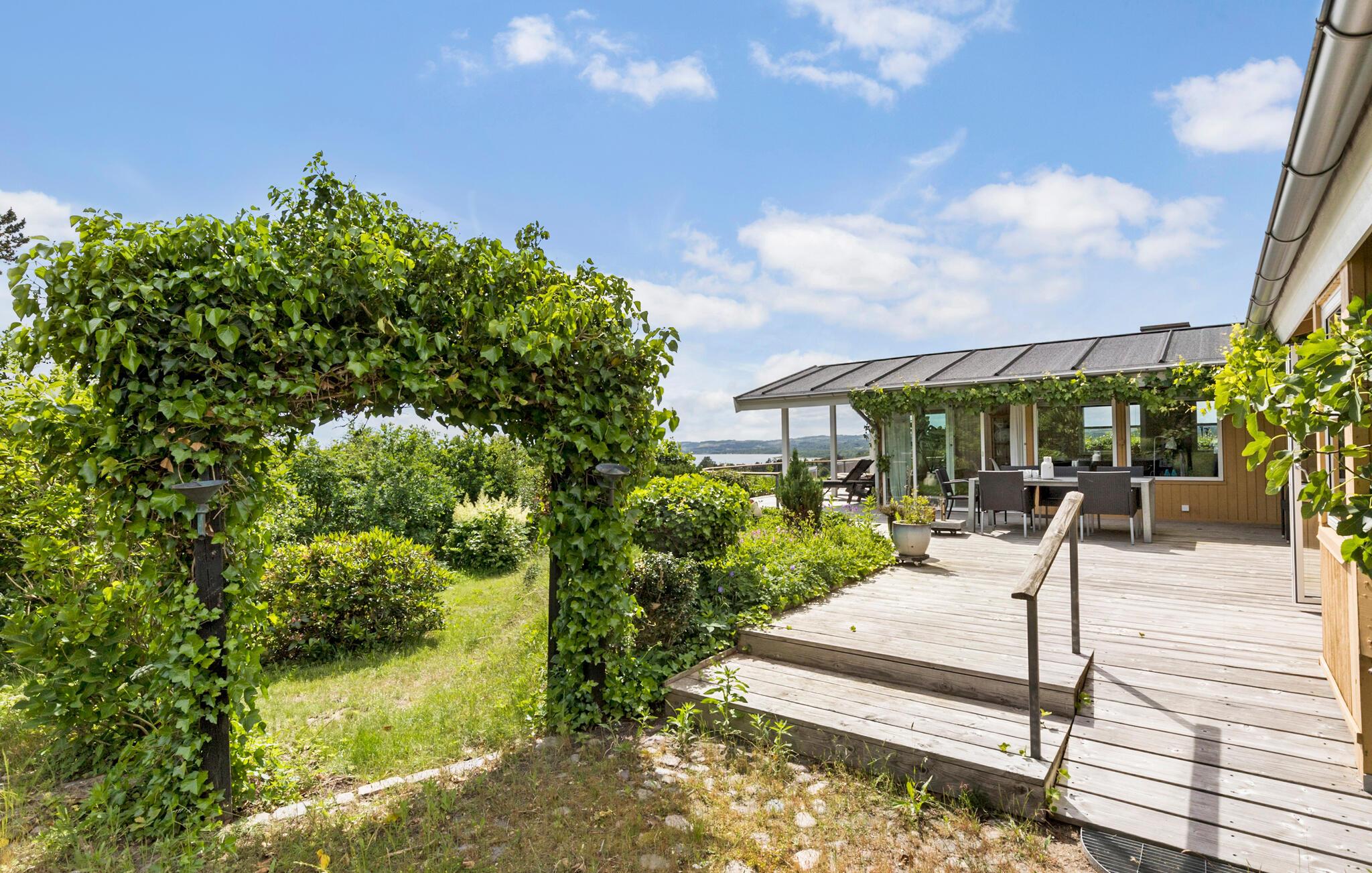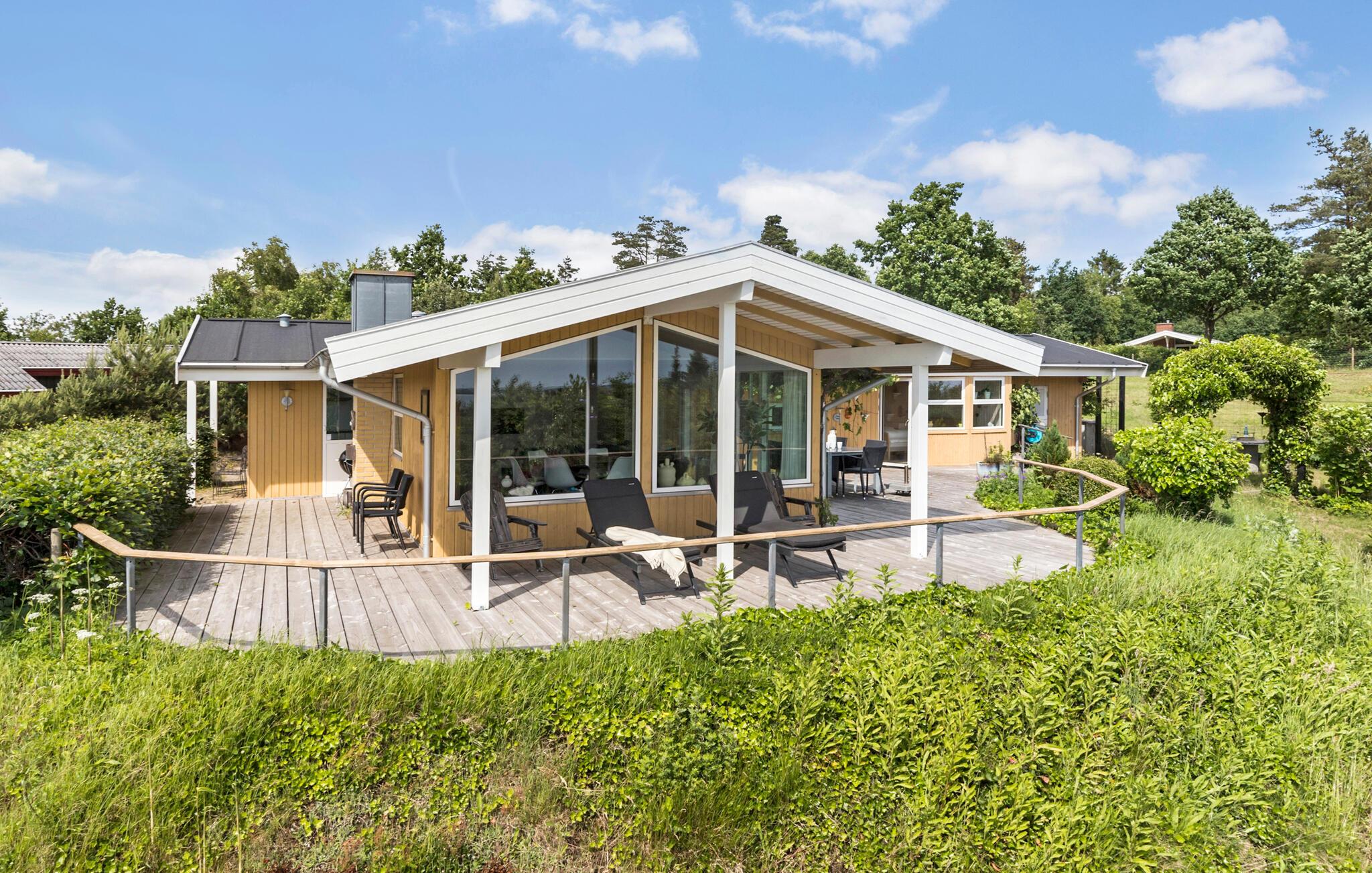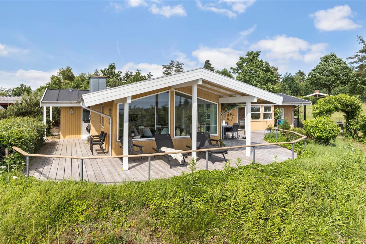 Ontdek dit charmante vakantiehuis met panoramisch zeezicht en een zonnig terras op Hanndrup Strand.