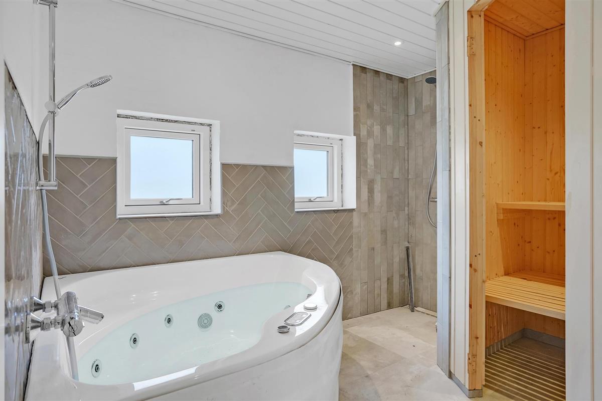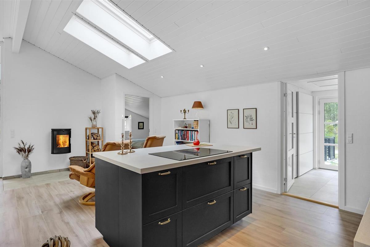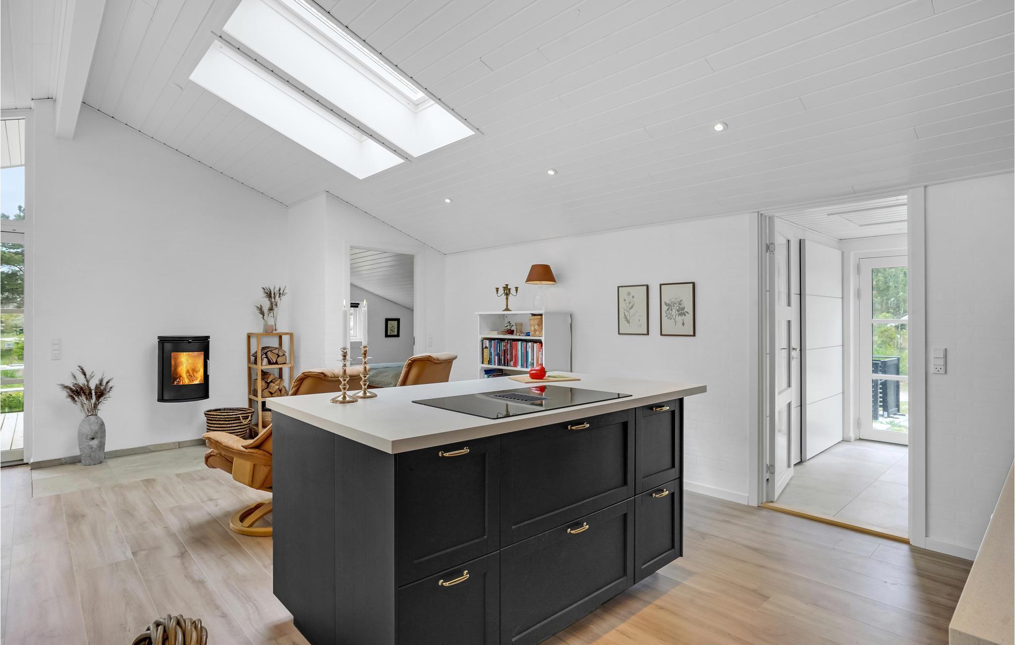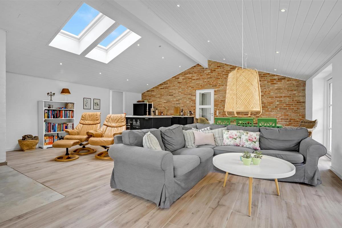 Dit charmante vakantiehuis wacht op u met een gezellige sfeer en een comfortabele inrichting. Hier vindt u een natuurlijke mix van natuurlijke materialen zoals bakstenen en hout, verfijnd met verfijnde decoraties. Bovendien is deze open leefruimte een bijzonder goede plek om je te installeren en te genieten van je tijd in Denemarken. Schuif aan met een glas wijn, voer gesprekken met uw geliefden en eet samen heerlijke maaltijden. Je hebt ook toegang tot een sauna en een jacuzzi voor extra verwennerij. Vanuit de woonkamer heeft u toegang tot een open en overdekt terras, met een barbecue en ligstoelen, om u ook te laten verwarmen door de zon terwijl u verdiept bent in een roman.