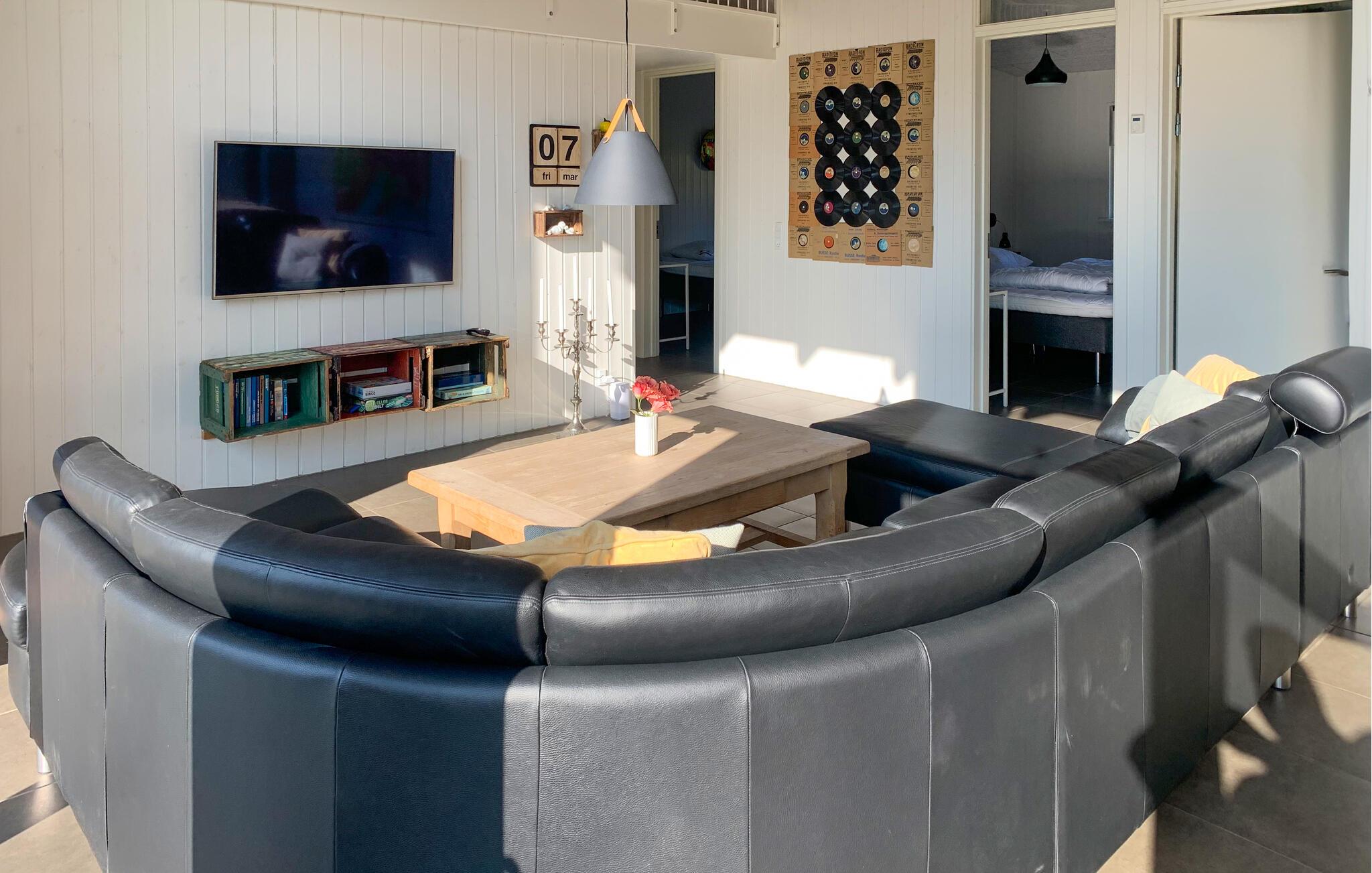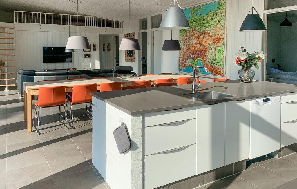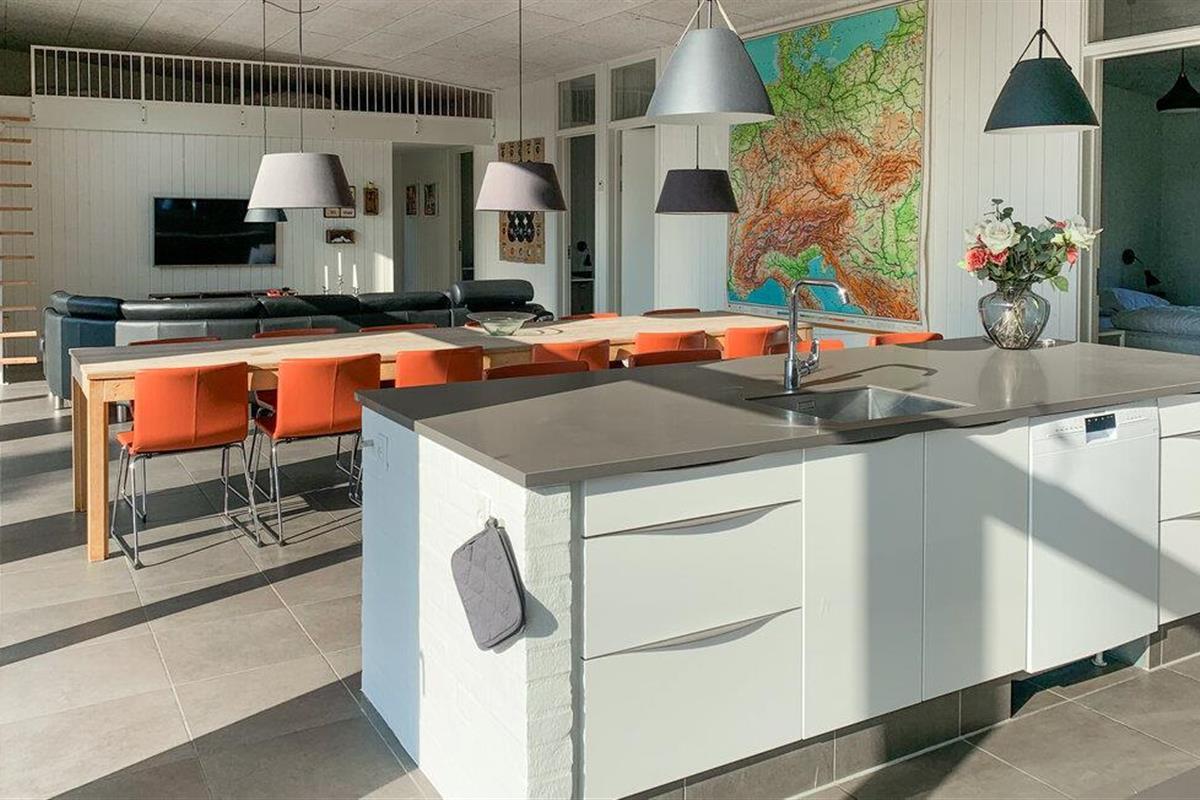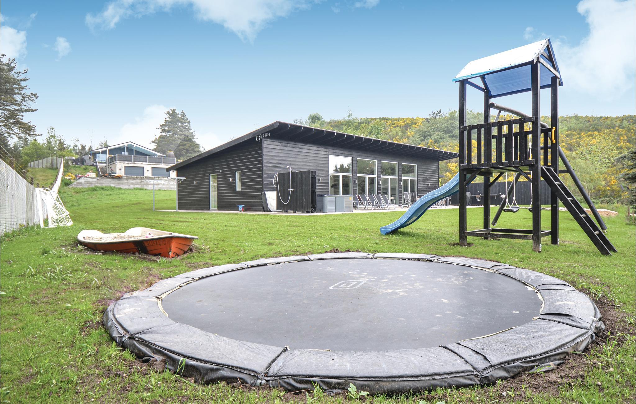Groot, mooi en modern, energiezuinig vakantiehuis gebouwd en ingericht voor een verblijf in elk seizoen. Goede slaapkamers, mooie badkamers en moderne keuken. Vanuit de grote badkamer heeft u toegang tot het terras waar u kunt genieten van het buitenleven, inclusief een jacuzzi voor 6 personen en een buitenkeuken waar u heerlijk eten kunt bereiden. Het huis ligt midden in het Nationaal Park Mols Bjerge, dat verschillende goede stranden en prachtige natuur biedt met goede mogelijkheden om te wandelen en te fietsen. In de buurt vindt u winkels en restaurants, Molskroen is bijvoorbeeld een bezoek waard.