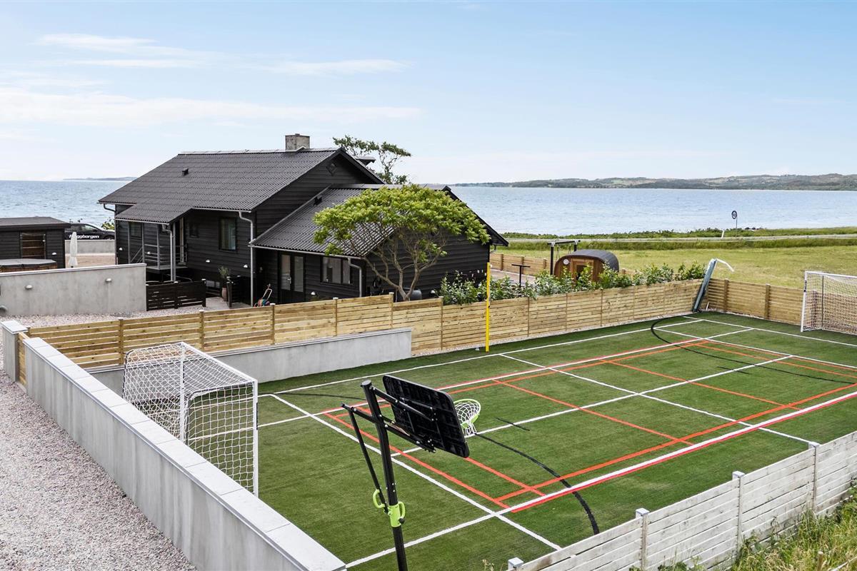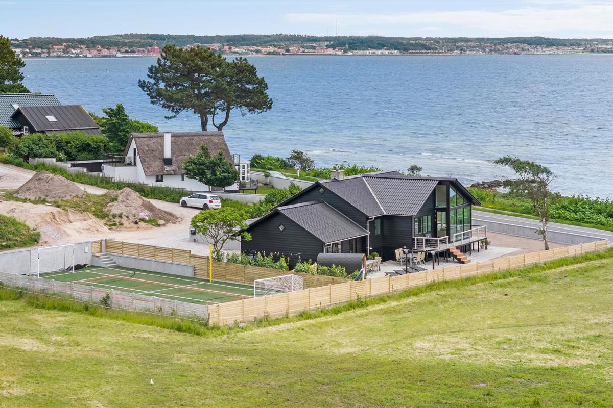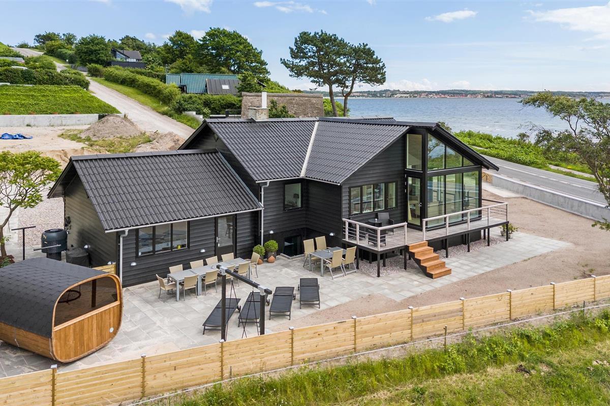 Ontdek dit ruime vakantiehuis aan zee met sauna, buitenbad en prachtig uitzicht op Ebeltoft Vig.