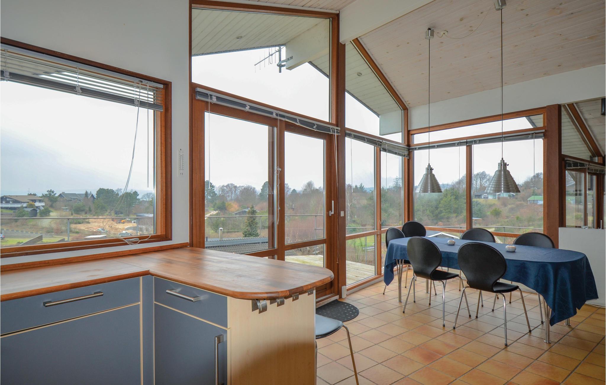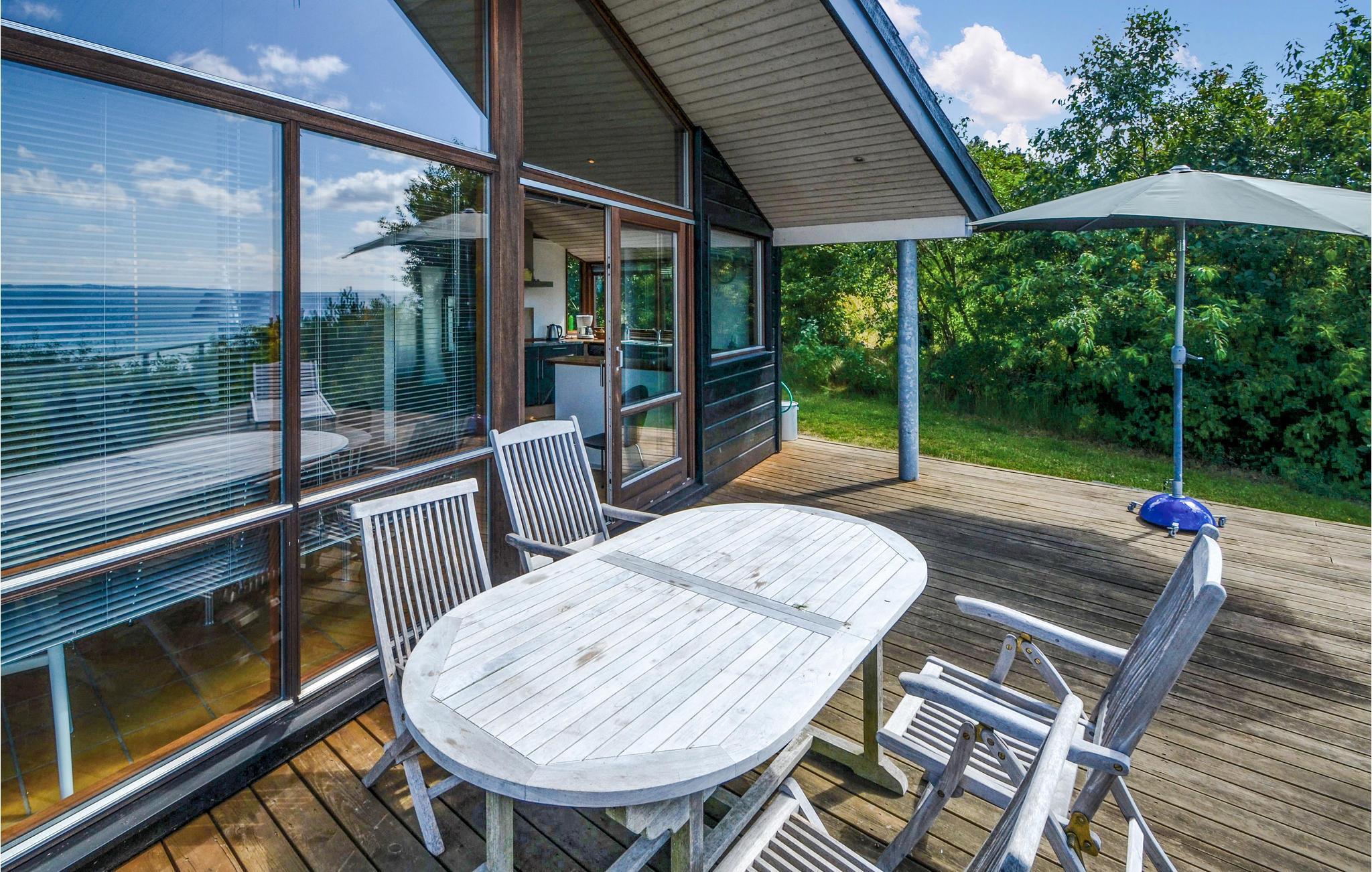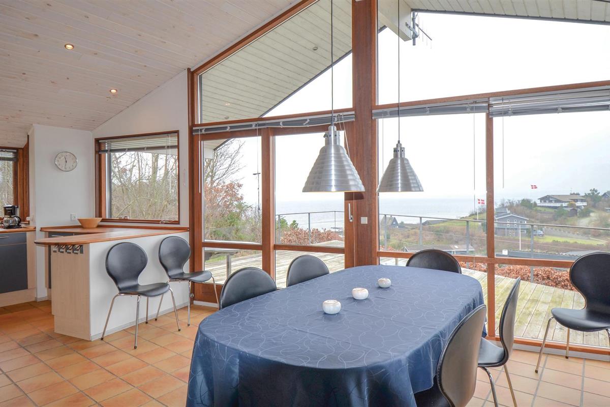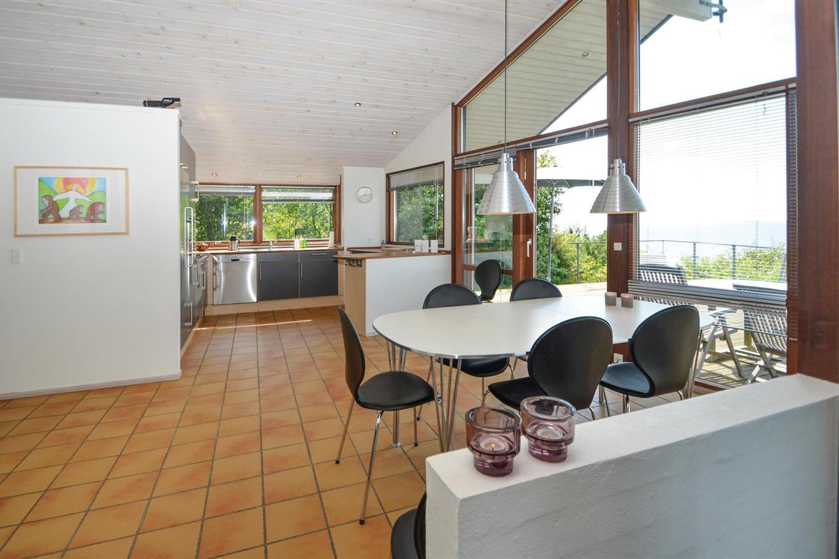 Een unieke locatie met een prachtig panoramisch uitzicht en prachtige architectuur kenmerken dit eersteklas vakantiehuis. Over de inrichting, het licht en de kwaliteit is goed nagedacht. Er is onder andere een ijsblokjesdispenser. Dit huis is de perfecte keuze voor een buitengewone vakantie! Aan de ene kant van het huis vindt u een ongestoorde zonnige binnenplaats, aan de andere kant een panoramisch terras met maritiem meubilair. Hier is de zonsondergang over de baai van Ebeltoft een onvergetelijke ervaring. Het huis heeft veel comfort en biedt een heerlijke vakantie in alle seizoenen!