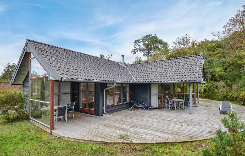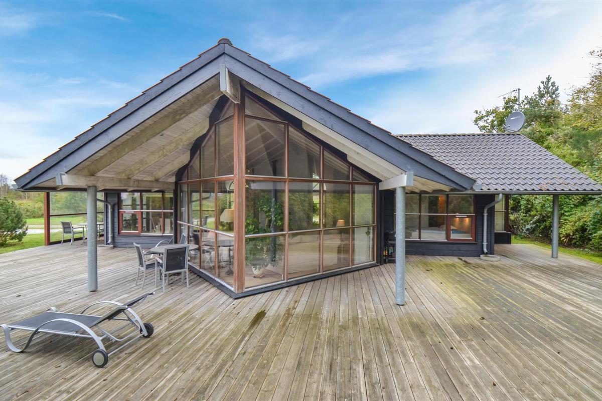 Luxe architectonisch vakantiehuis met zeezicht, jacuzzi en sauna nabij Handrup Strand, ideaal voor een ontspannen vakantie.