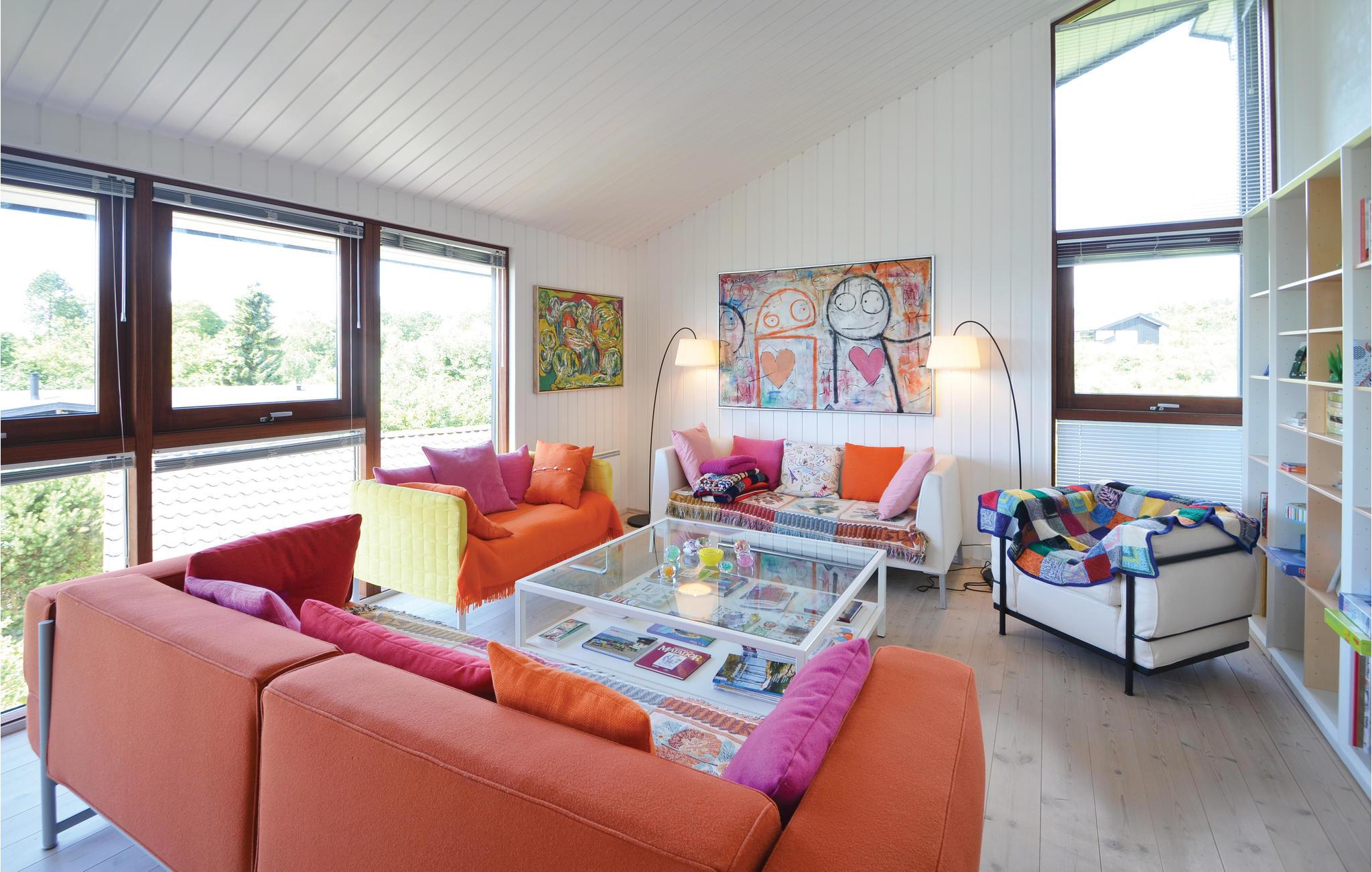 Unieke ligging en prachtig panoramisch uitzicht alsmede indrukwekkende architectuur kenmerken dit vakantiehuis. Hier wacht u een eersteklas huis met twee verdiepingen. Het interieur is goed verlicht en het moderne meubilair is van hoge kwaliteit. Een buitengewoon aangename vakantie-ervaring wordt u hierbij geboden. Buiten, voor het huis, is er een zonnige binnenplaats met privacy en een groot panoramisch terras. Het uitzicht op de zonsondergang en Ebeltoft Vig bieden onvergetelijke vakantie-ervaringen.