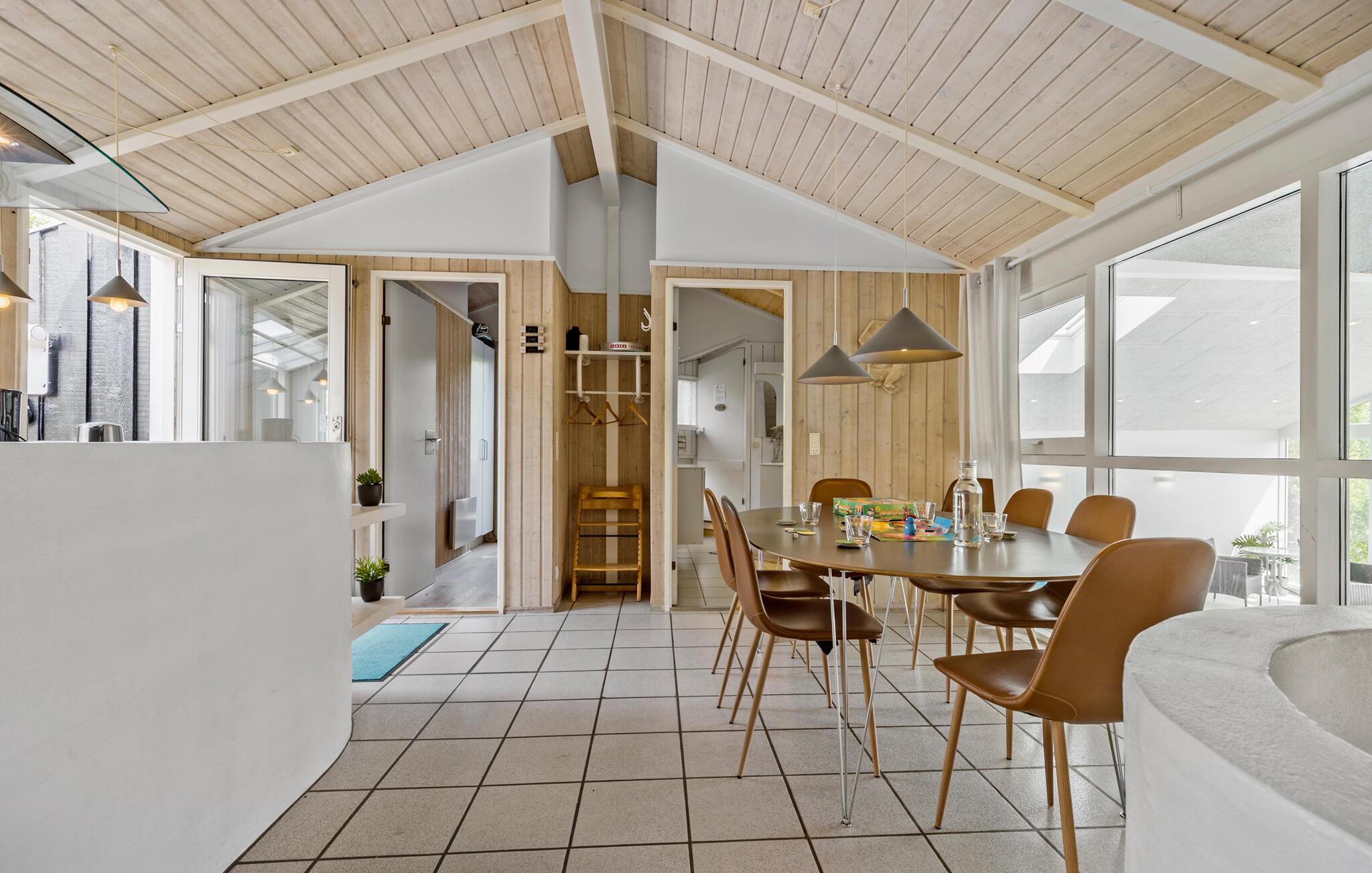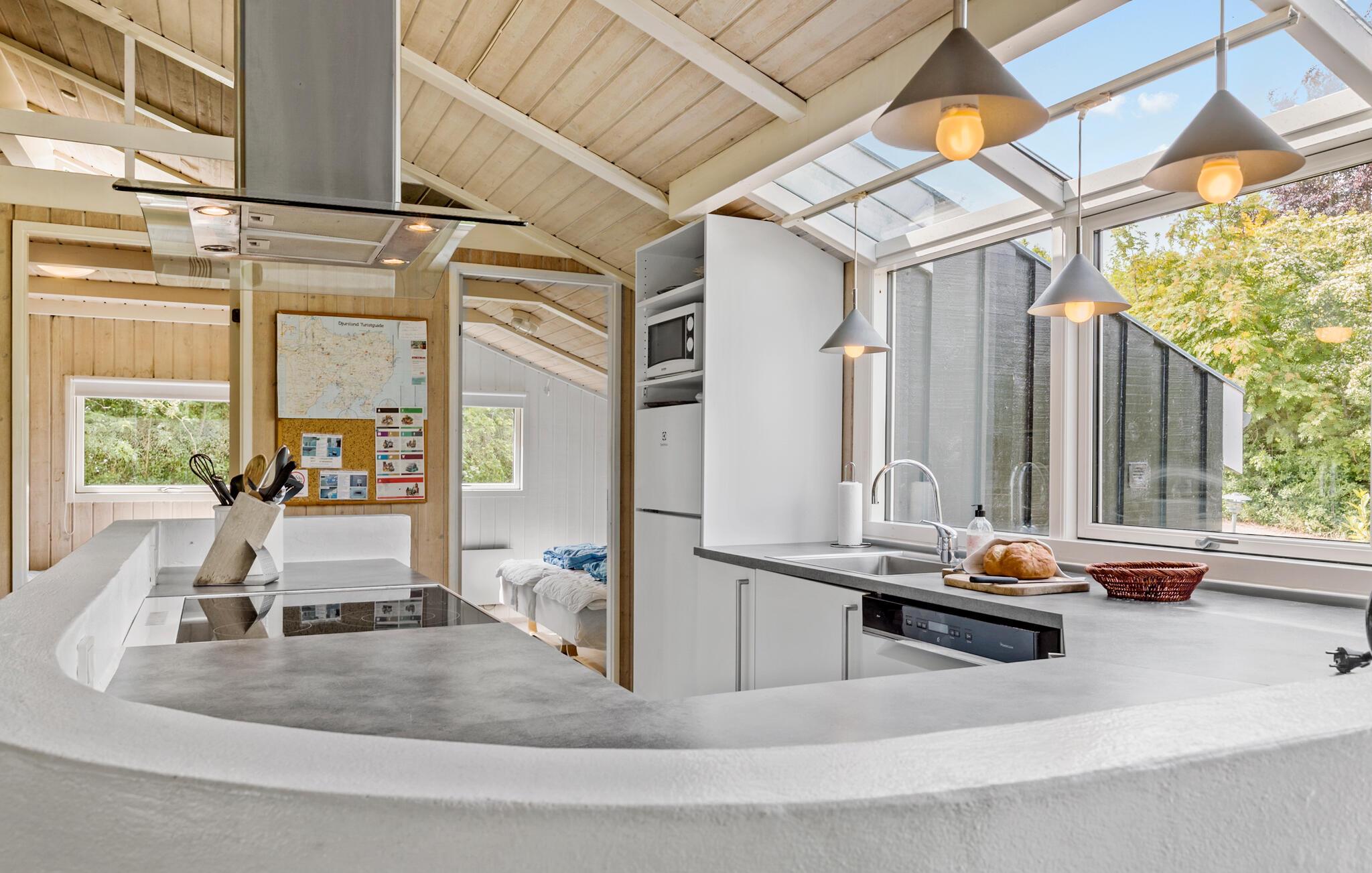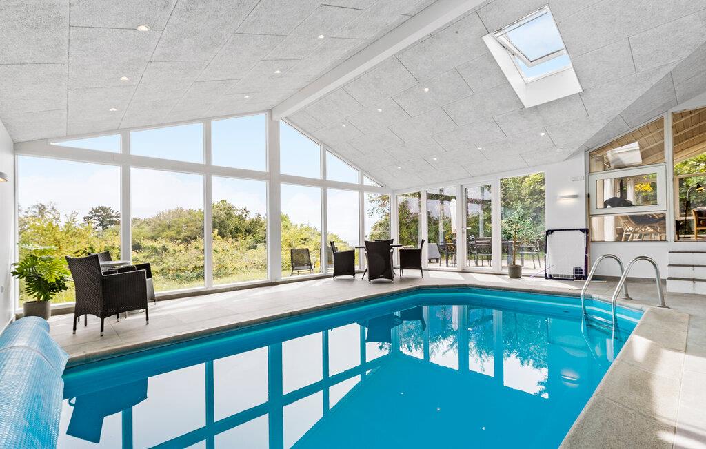 Kom aan en geniet van de locatie op een heuvel met uitzicht op de baai van Ebeltoft. Stap binnen en voel je meteen thuis. Het interieur maakt indruk met zijn klassieke stijl en toch gezellige charme, aangevuld met een houtkachel voor gezellige avonden en een sauna voor rustgevende ontspanning. Het zwembad belooft verfrissing en plezier voor het hele gezin en combineert, dankzij het grote raam aan de voorkant, overdekt zwemmen met zonnebaden in de tuin. Het ruime interieur van het vakantiehuis is perfect voor sociale bijeenkomsten.