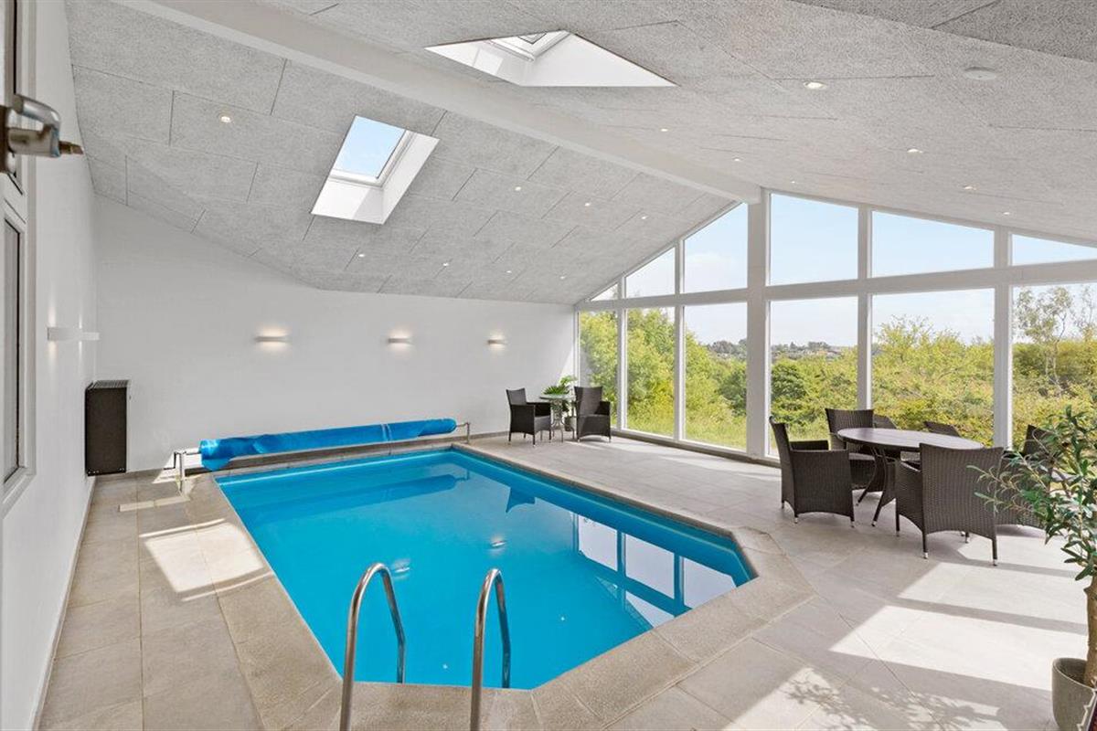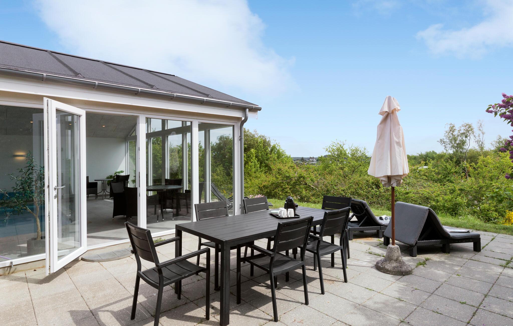 Geniet van een stijlvol vakantiehuis met zeezicht, sauna en binnenzwembad in het prachtige Ebeltoft.