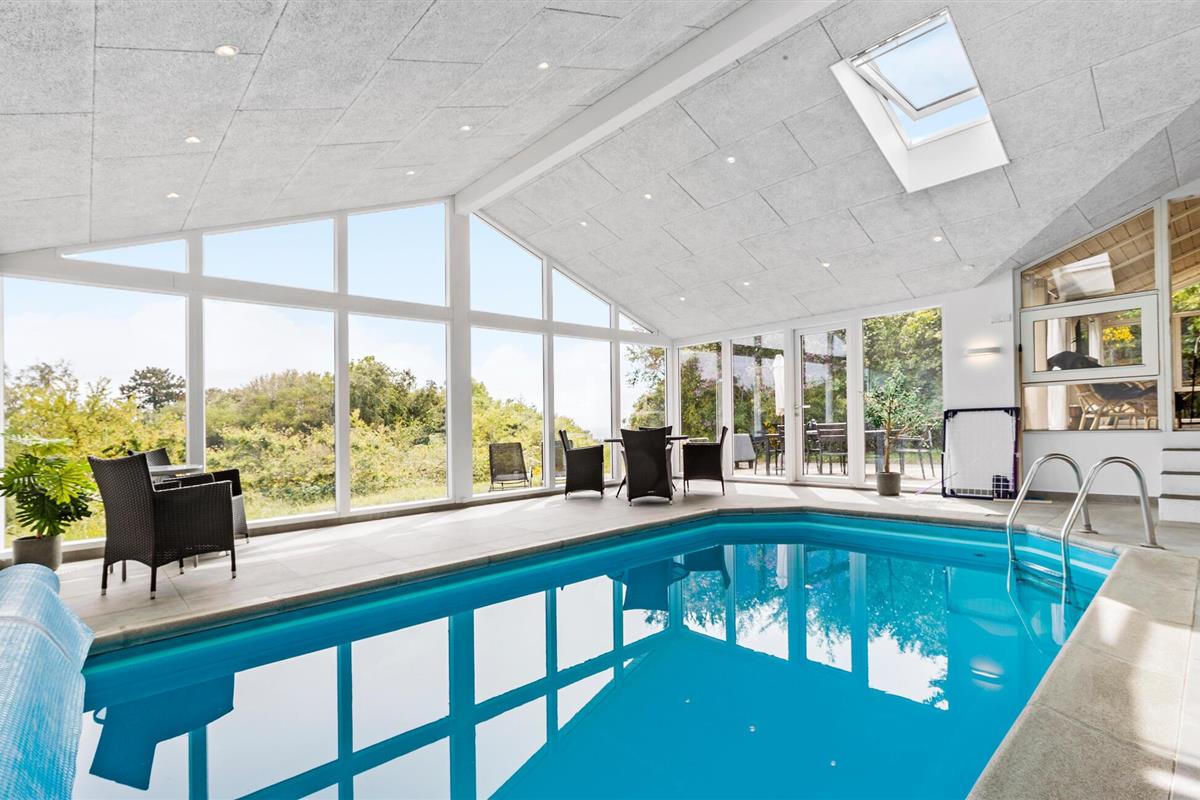 Exclusief vakantiehuis in Ebeltoft met zeezicht, sauna, binnenzwembad en gezellige houtkachel.