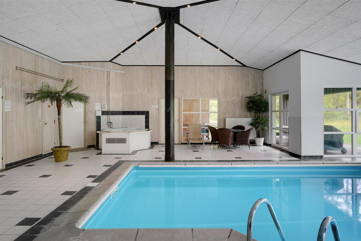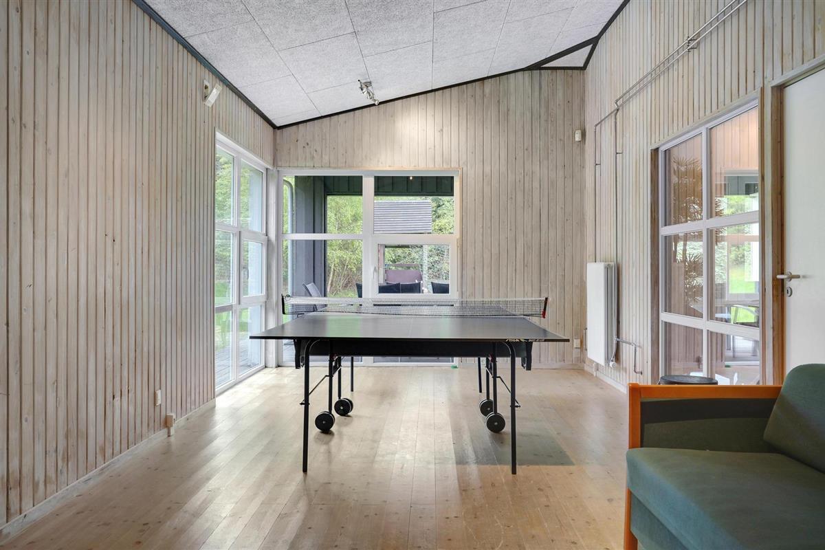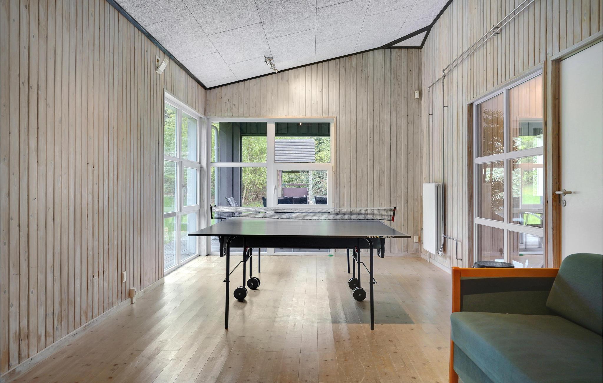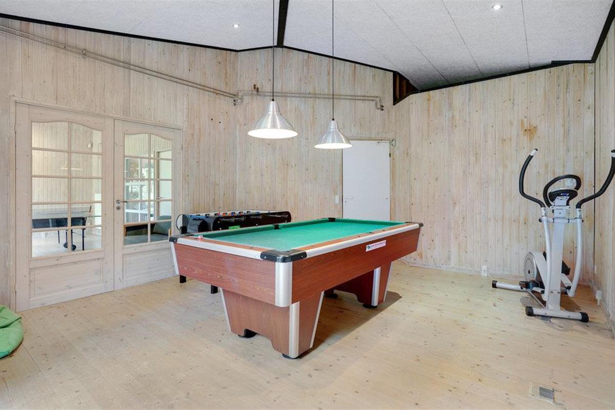 Een echt interessant vakantiehuis. Bent u graag actief, zwemt u graag in het zwembad, dan is dit huis de perfecte keuze. In de grote activiteitenruimte vindt u een biljart, tafelvoetbal, tafeltennis en darts. Het huis wacht op u in het grote, natuurlijke gebied van Handrup Bakker. Een groot speelveld is ook inbegrepen. Door zijn grootte en inrichting is het huis ook geschikt voor meerdere gezinnen, want het heeft een grote poolkamer waar waterratten hun plek kunnen vinden naast anderen die graag in alle rust bij elkaar zitten. Op het terras op het zuidwesten schijnt bijna de hele dag de zon. De verwarming is een milieuvriendelijke en rendabele geothermische warmtepomp. Brandhout kan worden gekocht.