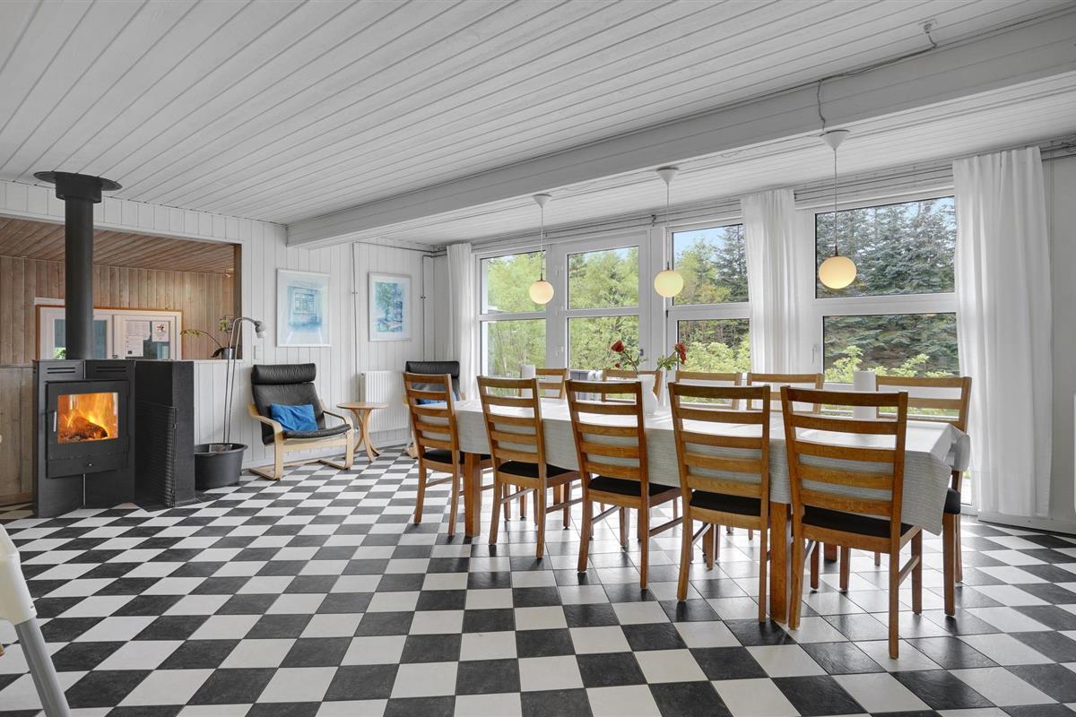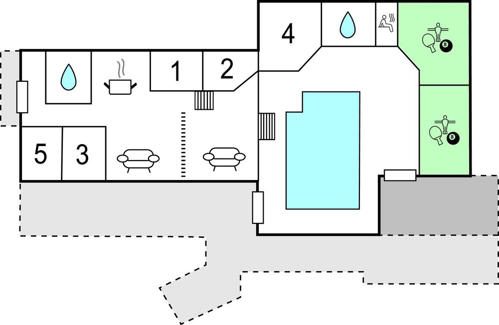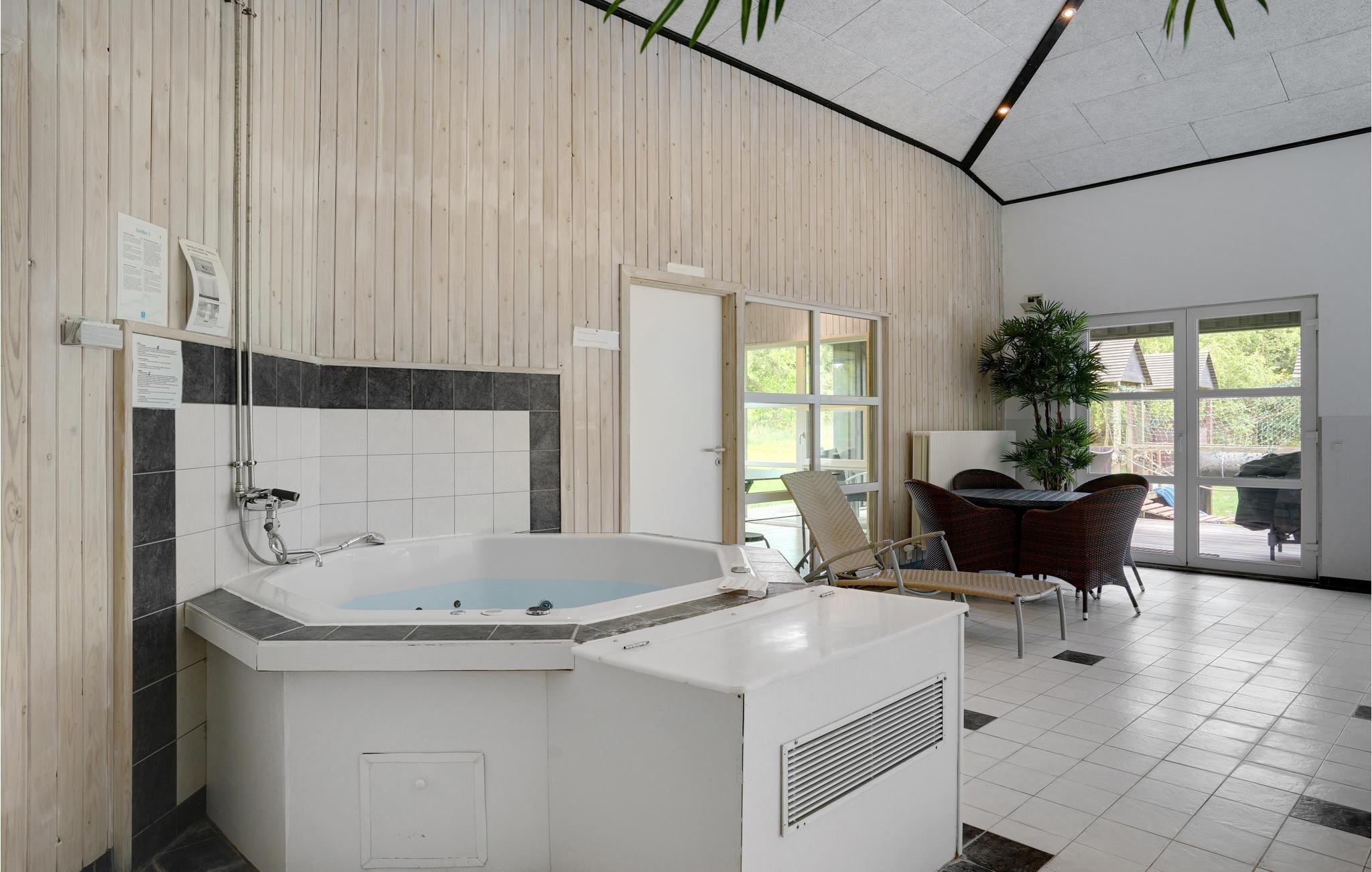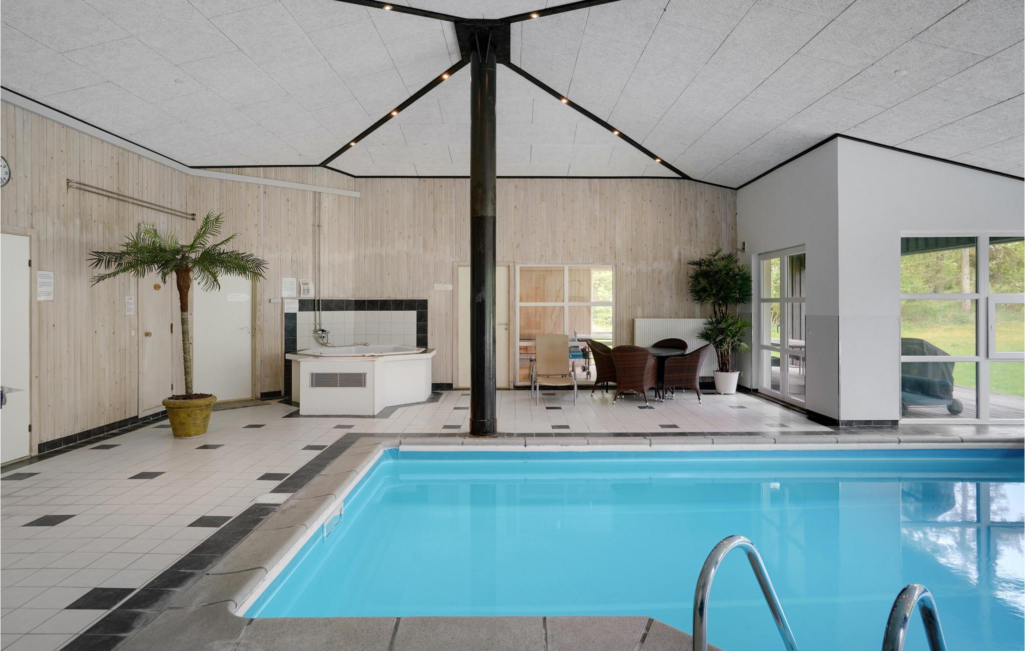 Een echt interessant vakantiehuis. Bent u graag actief, zwemt u graag in het zwembad, dan is dit huis de perfecte keuze. In de grote activiteitenruimte vindt u een biljart, tafelvoetbal, tafeltennis en darts. Het huis wacht op u in het grote, natuurlijke gebied van Handrup Bakker. Een groot speelveld is ook inbegrepen. Door zijn grootte en inrichting is het huis ook geschikt voor meerdere gezinnen, want het heeft een grote poolkamer waar waterratten hun plek kunnen vinden naast anderen die graag in alle rust bij elkaar zitten. Op het terras op het zuidwesten schijnt bijna de hele dag de zon. De verwarming is een milieuvriendelijke en rendabele geothermische warmtepomp. Brandhout kan worden gekocht.