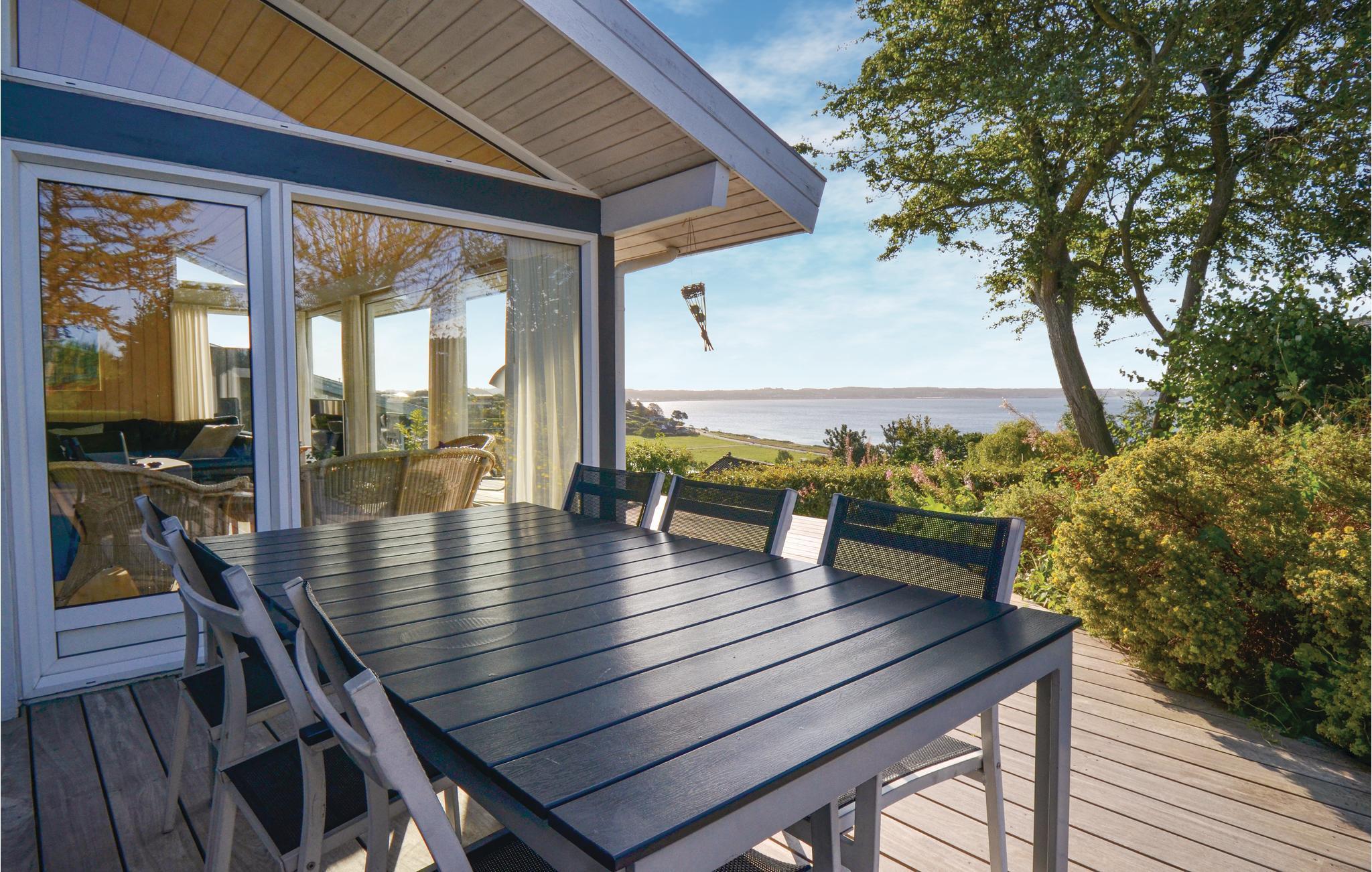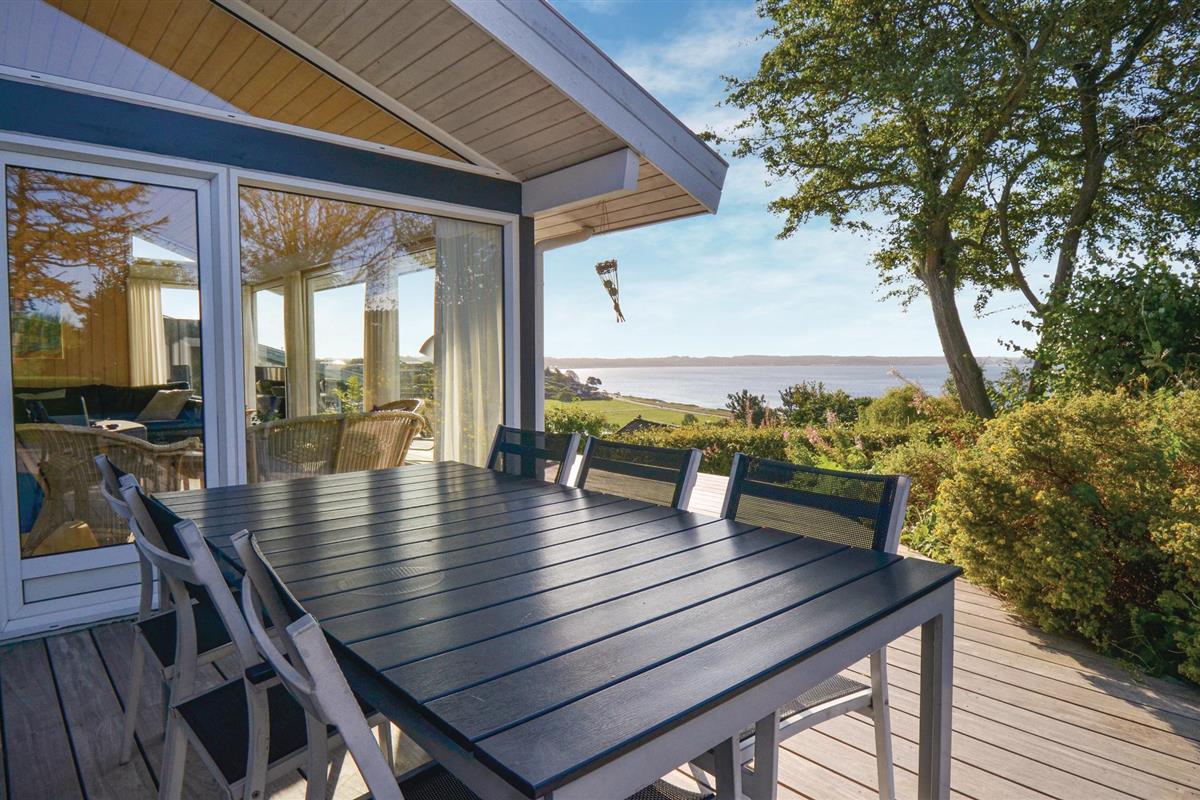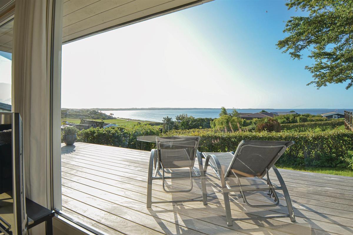 Vakantiehuis in Ebeltoft met panoramisch uitzicht en groot houten terras, perfect voor een ontspannen verblijf aan de Deense kust.