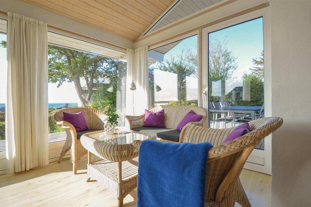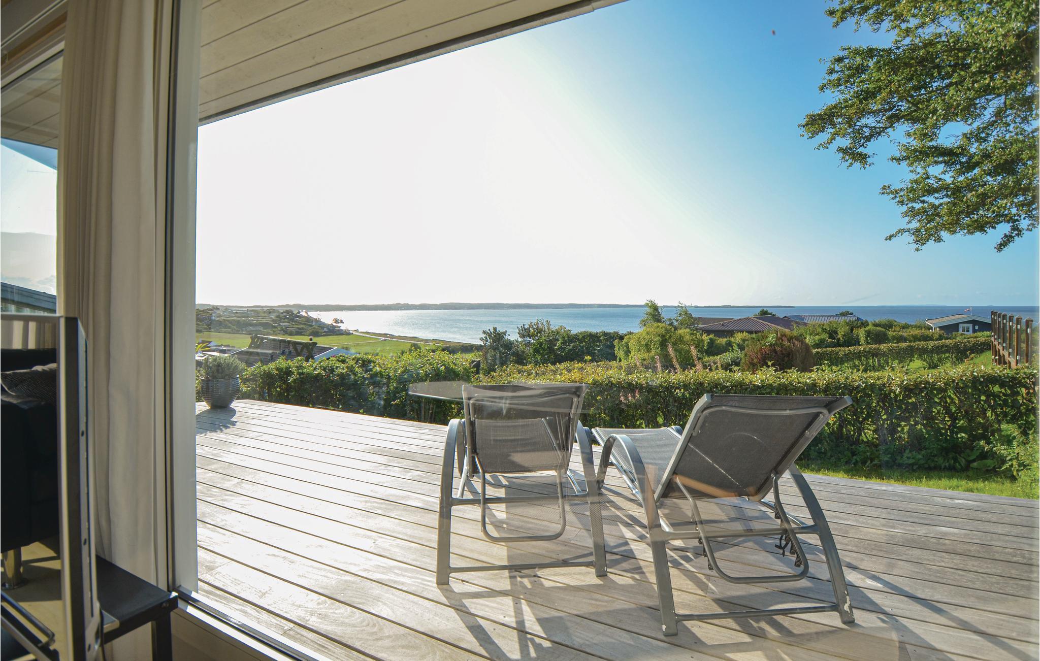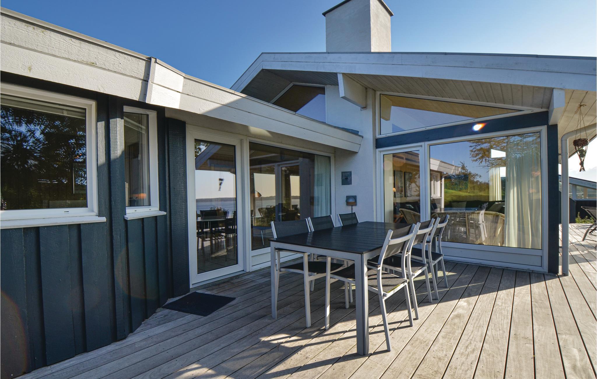 Vakantiehuis in Ebeltoft met panoramisch uitzicht en groot houten terras, perfect voor een ontspannen verblijf aan de Deense kust.