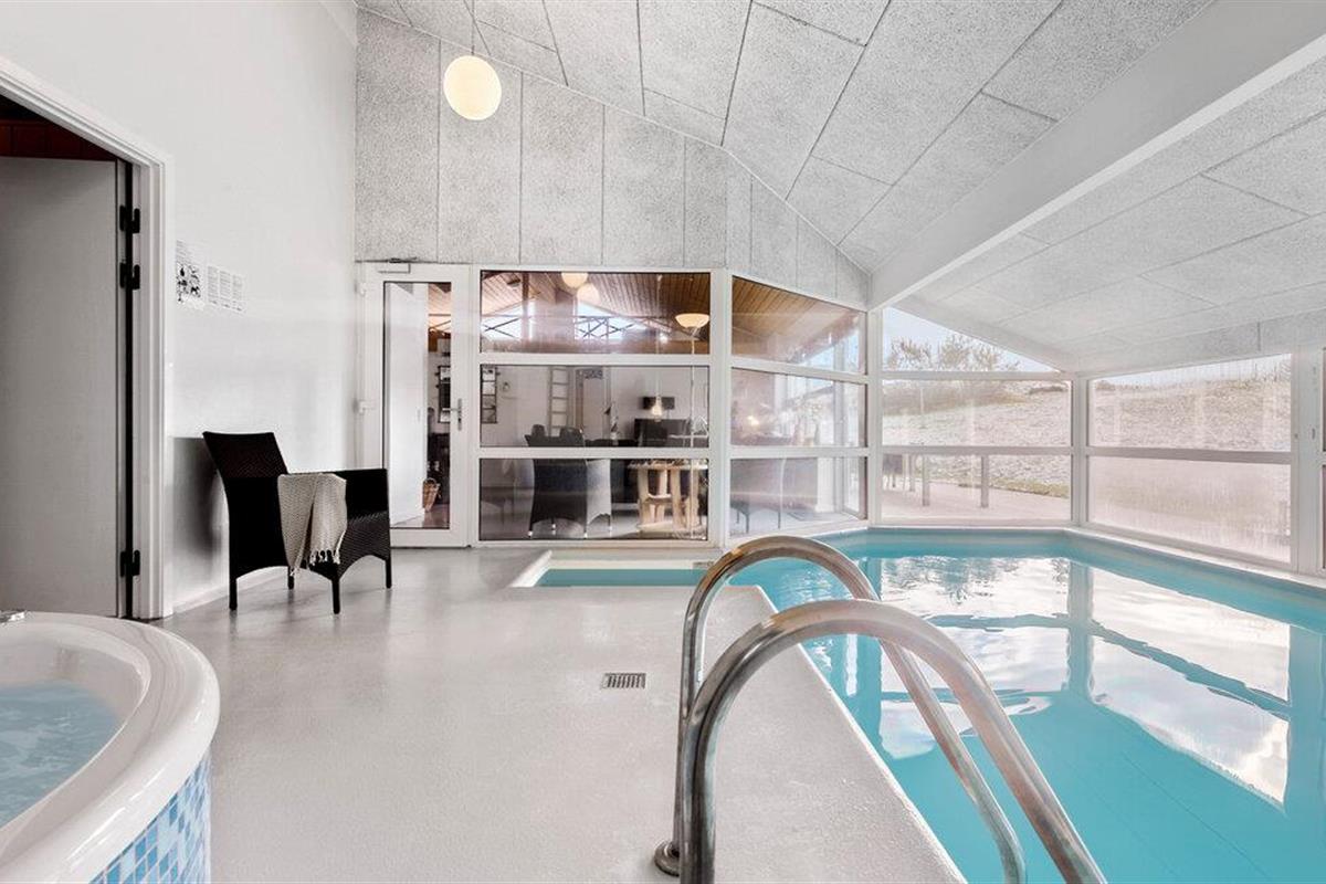 Dit mooie vakantiehuis in Handrup Strand heeft een goed zwembadgedeelte met zwembad, kinderbad en een 4-persoons whirlpool.