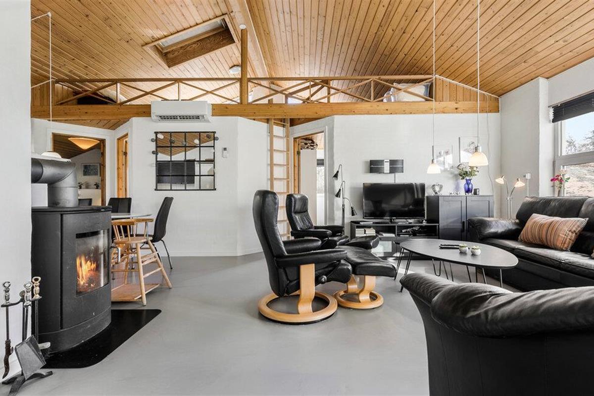 Vanuit de gezellige eetkeuken heb je goed zicht op de baders. Je kinderen kunnen zich vermaken in de loft, die speciaal is uitgerust met kussens, matrassen en een flatscreen, terwijl de volwassenen zitten te kletsen in de gezellige woonkamer of op het terras. Het zwembad wordt verwarmd door een energiebesparende warmtepomp.