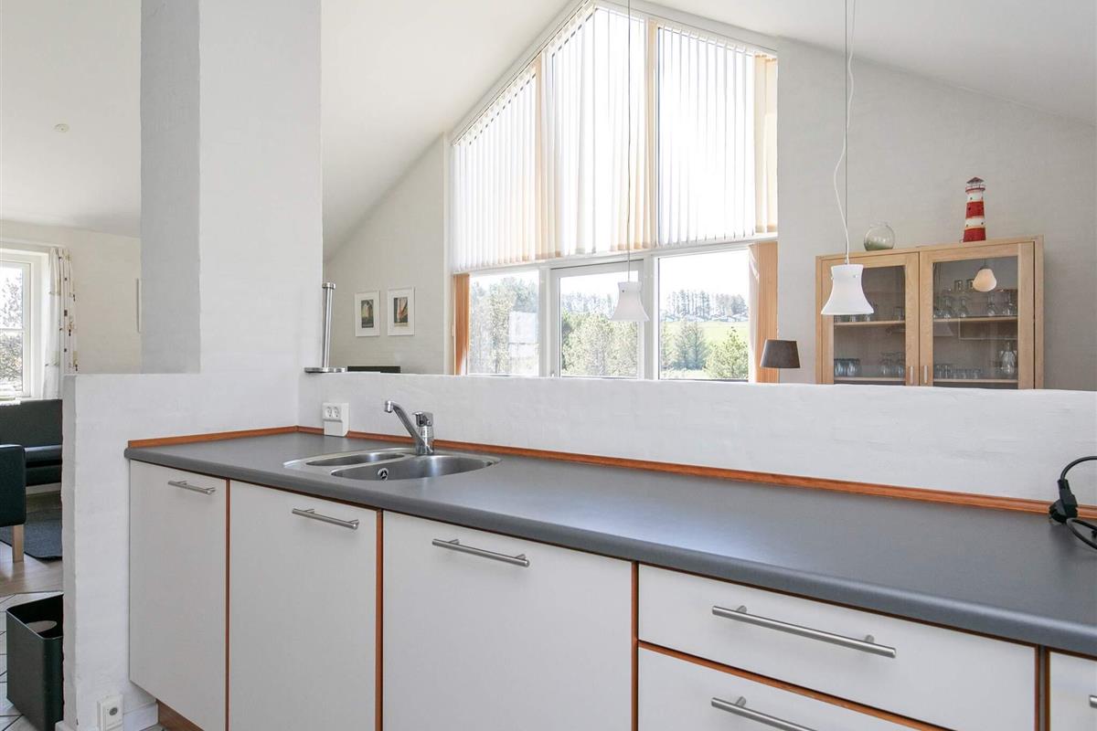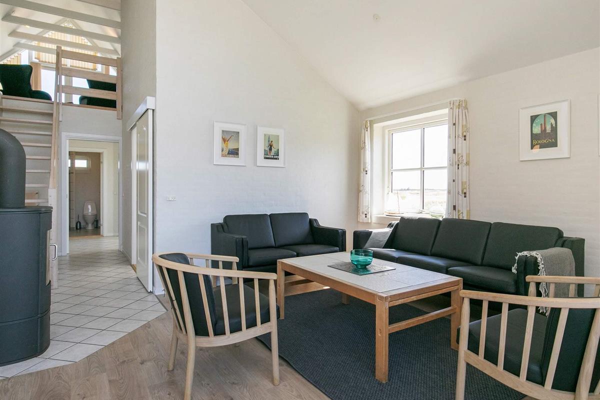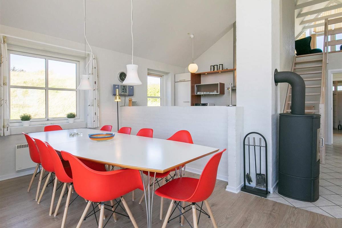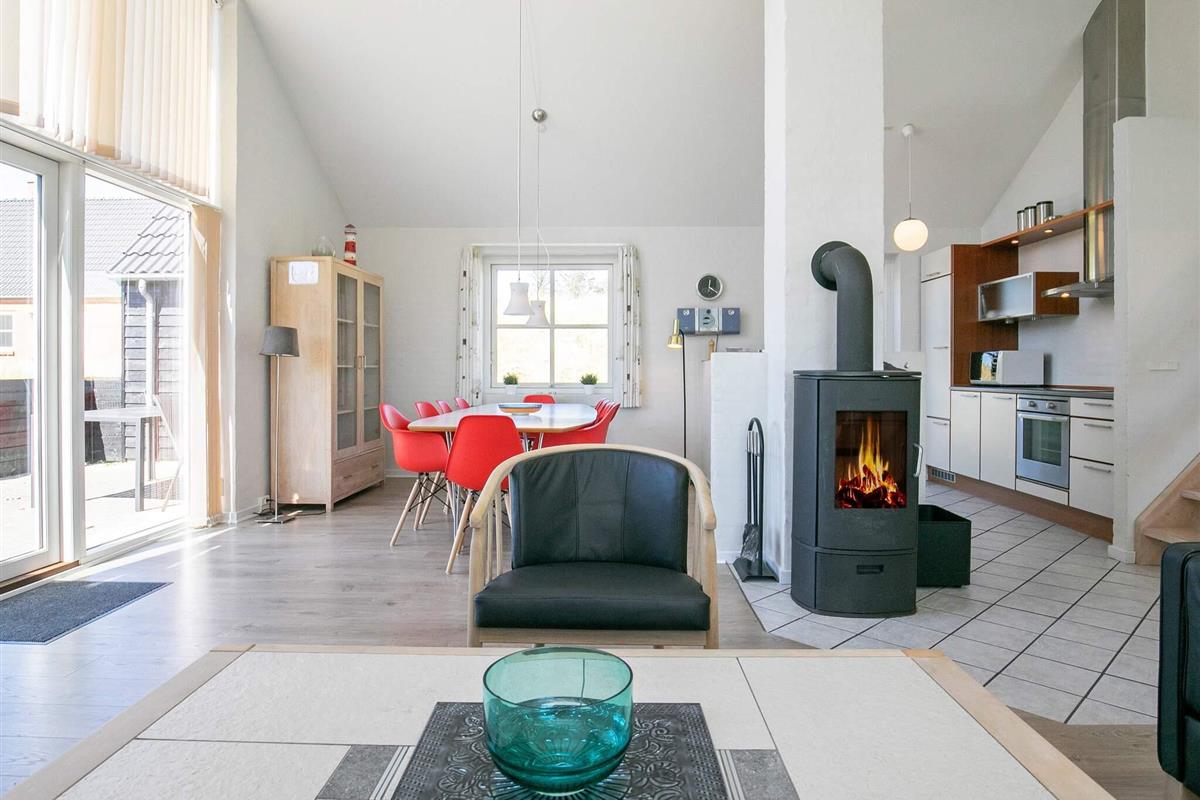 Das Haus verfügt über eine offene Terrasse mit Gartenmöbeln, auf der Sie Sonne und frische Seeluft genießen können. Innen wirkt das Haus hell und einladend mit frisch gekalkten Wänden, weiß gestrichenen Decken und Holzböden im Wohn- und Schlafzimmer. Der große Flur ist mit Fußbodenheizung ausgestattet und bietet Platz für Waschmaschine und Trockner. Das Haus verfügt über zwei Badezimmer mit Dusche und Fußbodenheizung – eines davon zusätzlich mit einer Whirlpool-Badewanne für zwei Personen. Die geräumige Küche ist bestens ausgestattet mit Geschirrspüler, Mikrowelle, Konvektionsofen, Herd mit Cerankochfeld, Wasserkocher und Gefrierschrank. Die Küche ist offen zum Wohnzimmer gestaltet, das mit einem Kaminofen, einem Fernseher mit digitalem Satellitenempfang, einem DVD-Player und direktem Zugang zur Südterrasse ausgestattet ist. Vom Wohnzimmer führt eine Treppe in den ersten Stock, wo sich ein weiteres großes Wohnzimmer mit Zugang zu einem Balkon und einem wunderschönen Blick auf die Dünenlandschaft befindet. Die Schlafmöglichkeiten verteilen sich auf vier Schlafzimmer: drei mit Doppelbett im Erdgeschoss und eines mit Doppelbett im ersten Stock. Ein sehr gut ausgestattetes Ferienhaus, ideal für einen Urlaub zu jeder Jahreszeit. Das Haus liegt in der Nähe des Ferienzentrums Vigsø, dessen Wasserpark ab der zweiten Februarwoche und das ganze Jahr über freien Eintritt bietet. Bitte beachten Sie, dass der Wasserpark in den Kalenderwochen 37, 38 und 39 aufgrund von Veranstaltungen am Freitag und Samstag geschlossen ist.