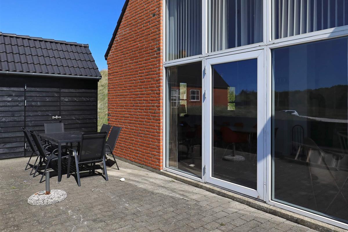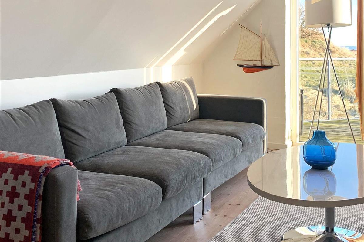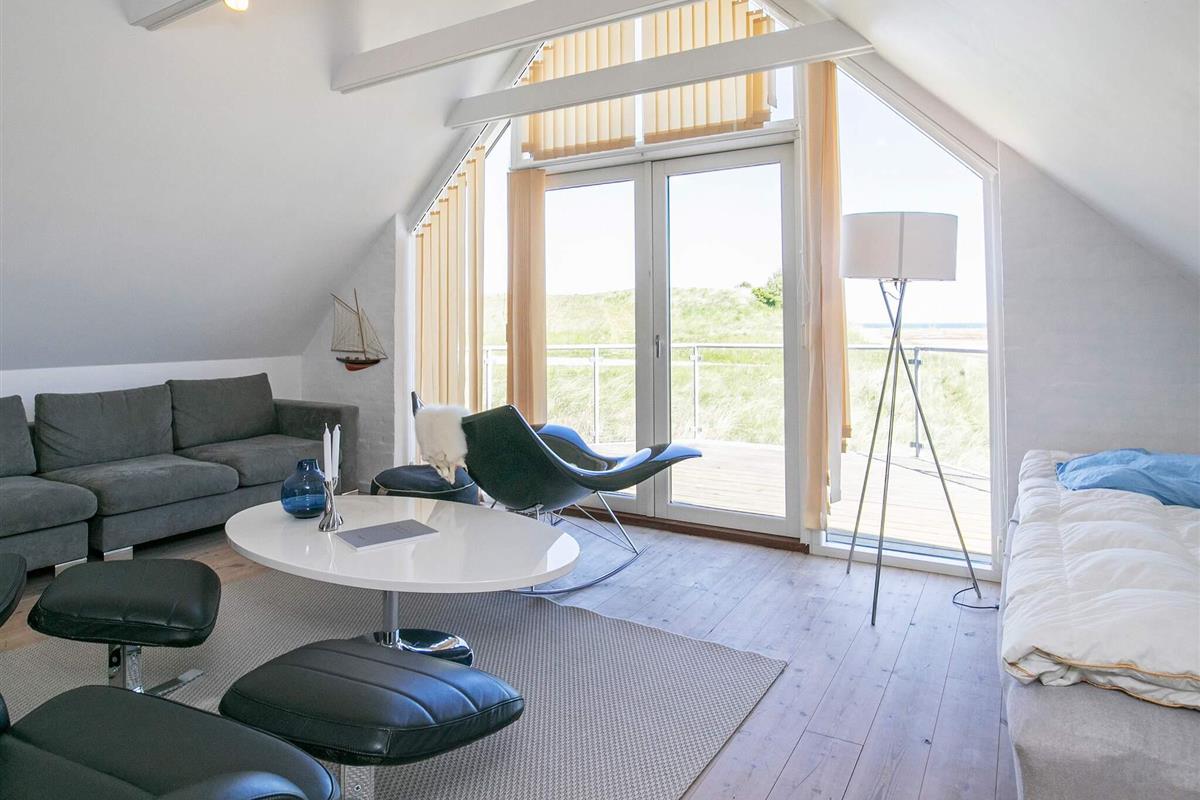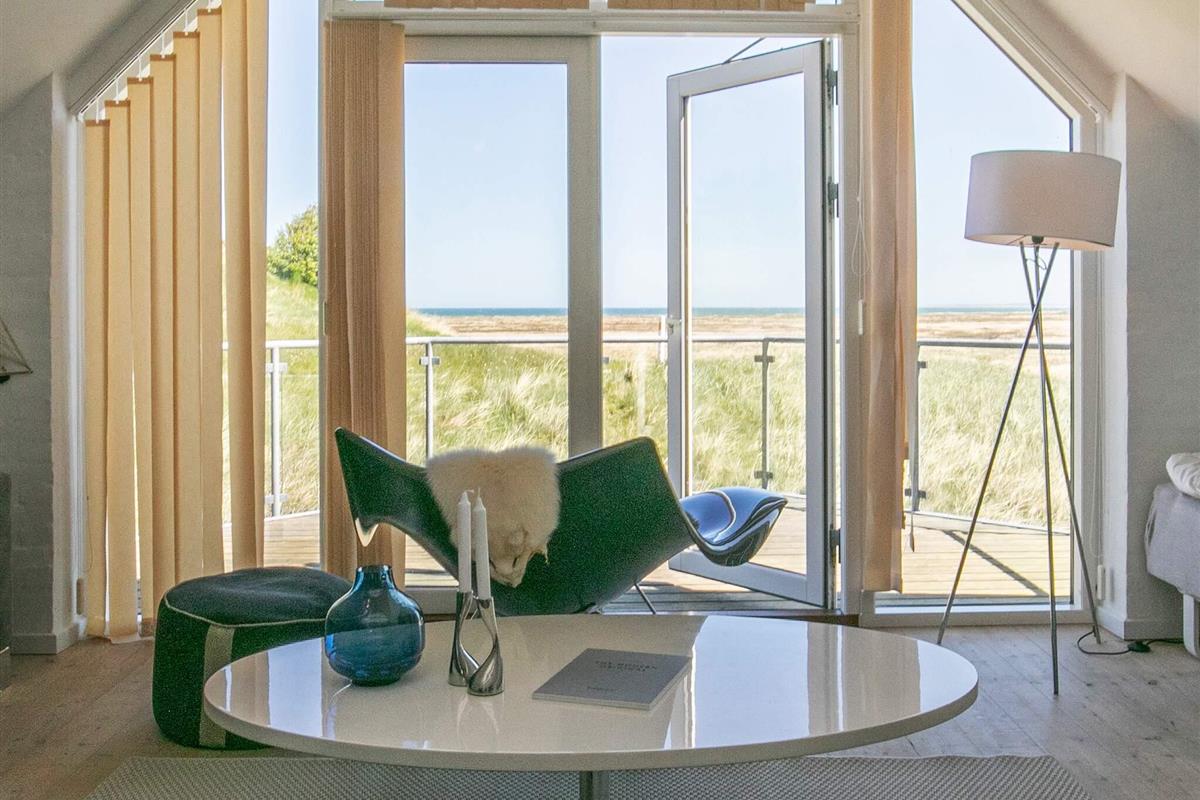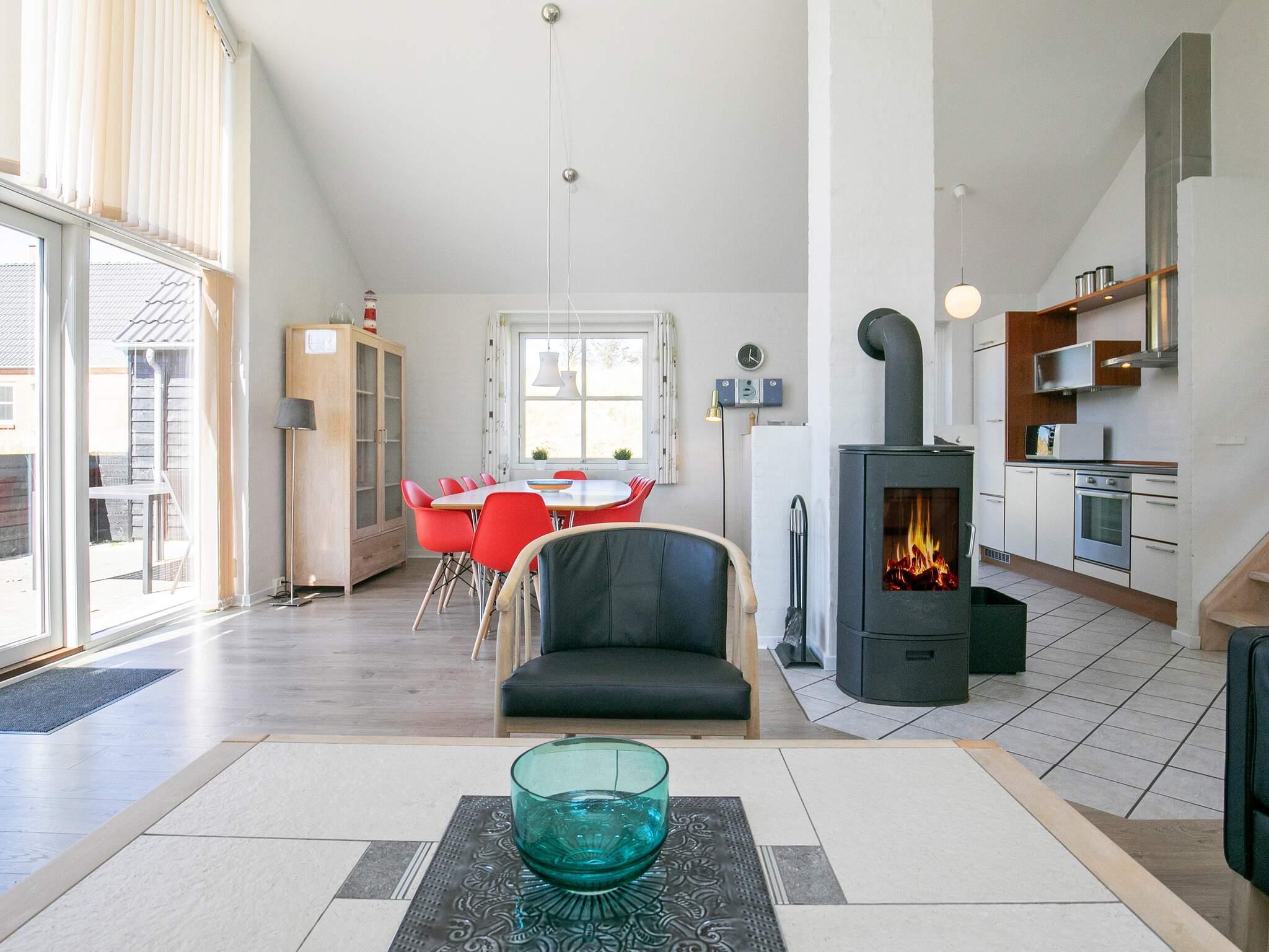 Das Haus verfügt über eine offene Terrasse mit Gartenmöbeln, auf der Sie Sonne und frische Seeluft genießen können. Innen wirkt das Haus hell und einladend mit frisch gekalkten Wänden, weiß gestrichenen Decken und Holzböden im Wohn- und Schlafzimmer. Der große Flur ist mit Fußbodenheizung ausgestattet und bietet Platz für Waschmaschine und Trockner. Das Haus verfügt über zwei Badezimmer mit Dusche und Fußbodenheizung – eines davon zusätzlich mit einer Whirlpool-Badewanne für zwei Personen. Die geräumige Küche ist bestens ausgestattet mit Geschirrspüler, Mikrowelle, Konvektionsofen, Herd mit Cerankochfeld, Wasserkocher und Gefrierschrank. Die Küche ist offen zum Wohnzimmer gestaltet, das mit einem Kaminofen, einem Fernseher mit digitalem Satellitenempfang, einem DVD-Player und direktem Zugang zur Südterrasse ausgestattet ist. Vom Wohnzimmer führt eine Treppe in den ersten Stock, wo sich ein weiteres großes Wohnzimmer mit Zugang zu einem Balkon und einem wunderschönen Blick auf die Dünenlandschaft befindet. Die Schlafmöglichkeiten verteilen sich auf vier Schlafzimmer: drei mit Doppelbett im Erdgeschoss und eines mit Doppelbett im ersten Stock. Ein sehr gut ausgestattetes Ferienhaus, ideal für einen Urlaub zu jeder Jahreszeit. Das Haus liegt in der Nähe des Ferienzentrums Vigsø, dessen Wasserpark ab der zweiten Februarwoche und das ganze Jahr über freien Eintritt bietet. Bitte beachten Sie, dass der Wasserpark in den Kalenderwochen 37, 38 und 39 aufgrund von Veranstaltungen am Freitag und Samstag geschlossen ist.
