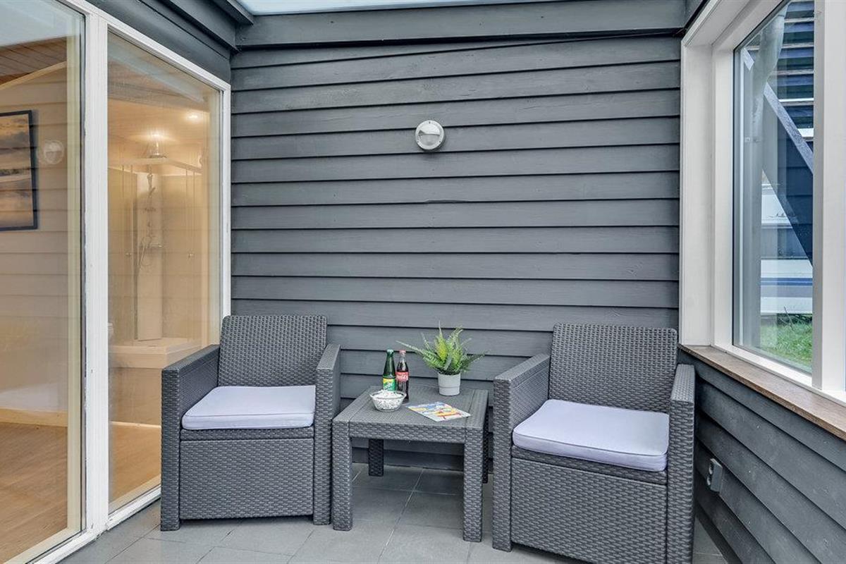 Gezellig vakantiehuis met privéterras en toegang tot verwarmd zwemgedeelte nabij strand in Hanstholm.