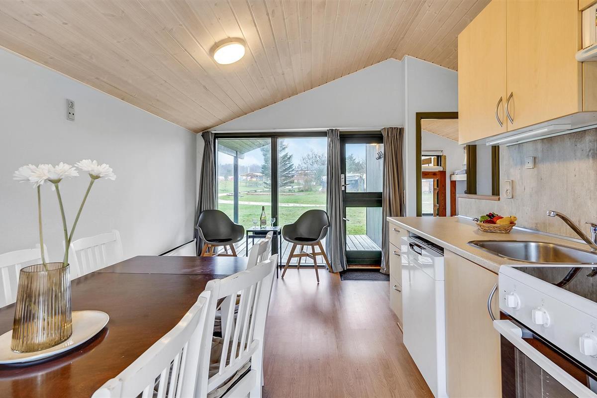 Dit praktische vakantiehuis voor maximaal zes gasten is de ideale plek om een ontspannen en afwisselende vakantie door te brengen aan de prachtige westkust van Denemarken. Het is licht en gezellig ingericht. Op je eigen, gedeeltelijk overdekte terras kun je samen genieten van vele maaltijden of de dag afsluiten met een koud drankje. Er is veel ruimte om te spelen rondom je vakantiehuis op het gemeenschappelijke terrein.