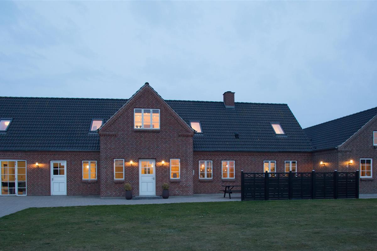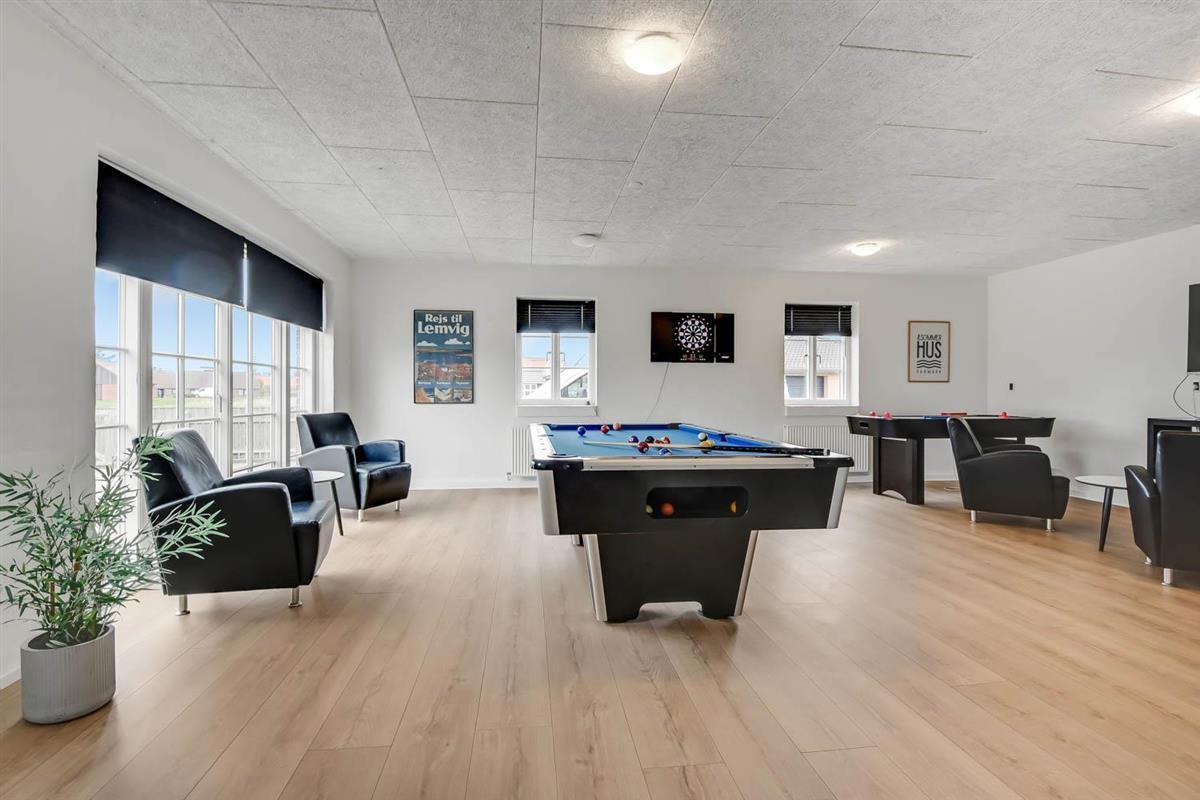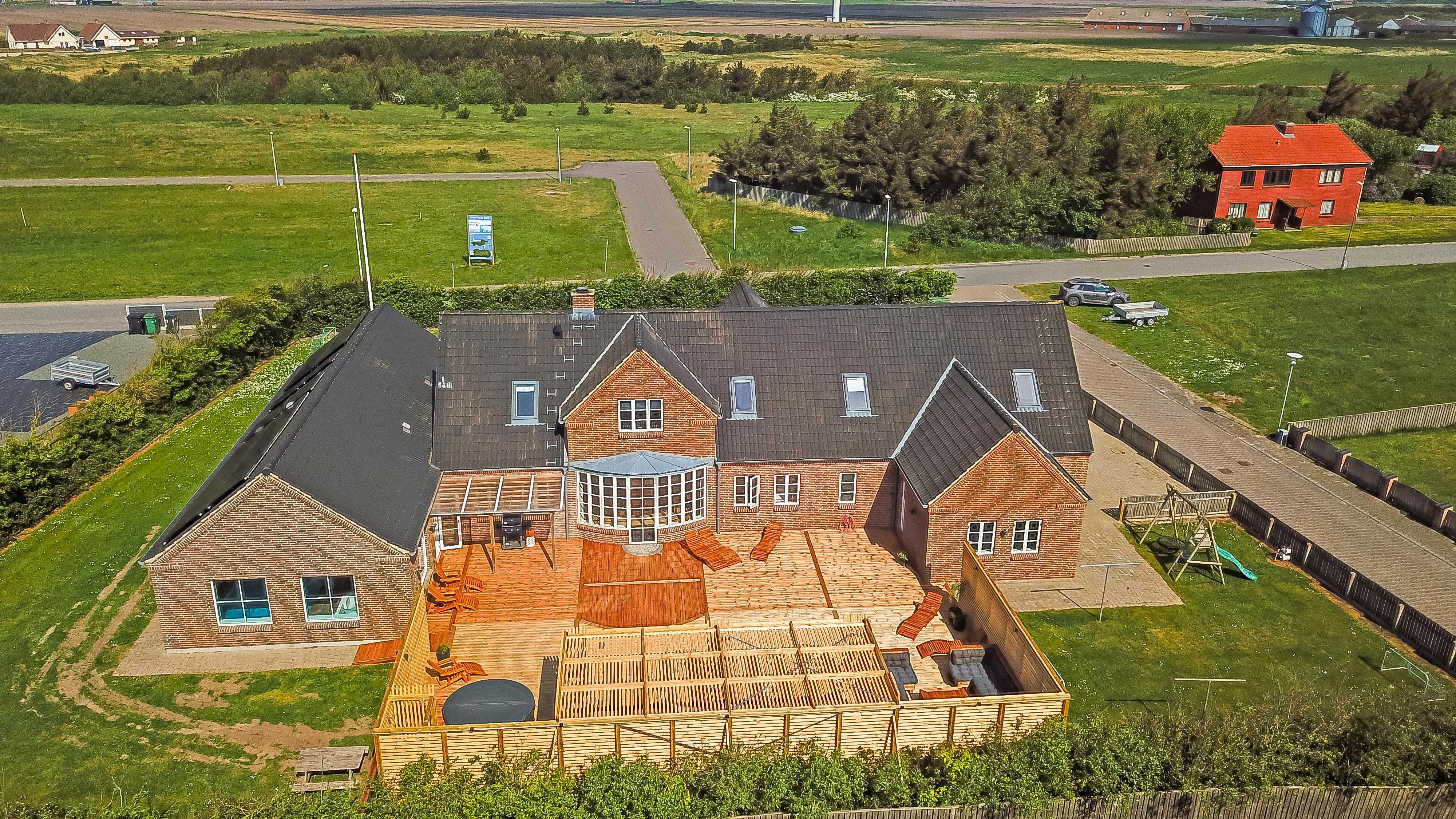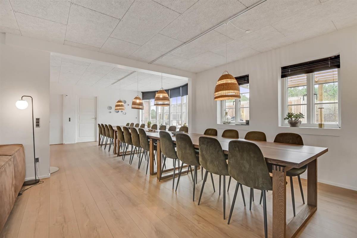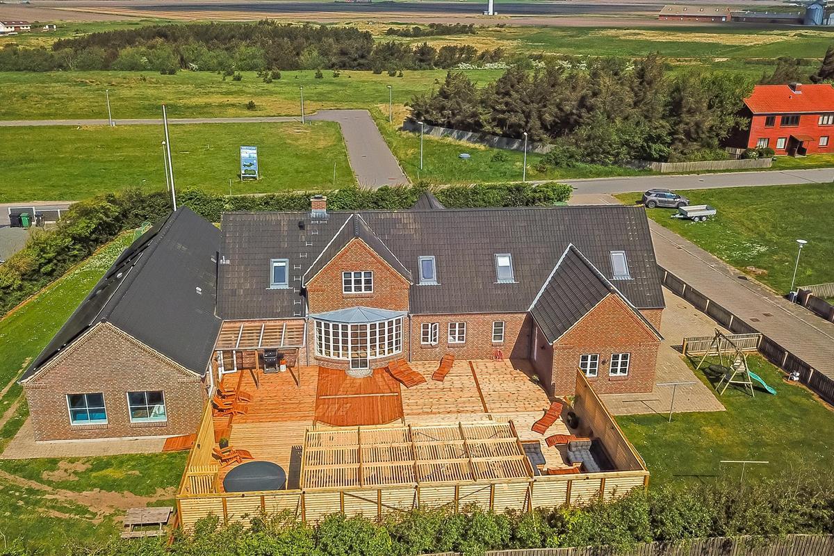 Das Ganzjahreshaus ist 550 m² groß und hat kostenfreies WLAN. Zentrum ist die große, offene Küche mit einem geräumigen Wohn- und Essbereich mit Fußbodenheizung. Hier bieten sich gute Möglichkeiten zum Entspannen. Die Küche ist komplett ausgestattet, sodass man für alle Bewohner ein wunderbares Abendessen zubereiten kann. Die Türen im Haus sind 90 cm breit. Sie können von der Wohnküche direkt ins Schlafzimmer gehen, was relativ behindertenfreundlich ist. In den schönen Möbeln können Sie sowohl dänisches als auch deutsches Programm auf dem Flachbildschirm-TV genießen oder DVD abspielen. An kühlen Abenden sorgt der Holzofen für zusätzliche Gemütlichkeit. Das Haus verfügt über einen geräumigen Wellnessbereich mit Sauna, einen großen Pool mit Rutsche und einen Whirlpool. Es gibt 4 Badezimmer, jedes mit Toilette, Dusche und Fußbodenheizung. Im Erdgeschoss befinden sich 4 Schlafzimmer für 8 Personen. Im Obergeschoss 5 Schlafzimmer für 10 Personen und ein großer Hems (Schlafboden) mit 6 weiteren Schlafplätzen. Hier gibt es auch ein weiteres schönes Wohnzimmer mit TV sowie ein Badezimmer mit einer Badewanne. Im Aktivitätsraum gibt es u. a. Billard, Tischkicker, Airhockey, Playstation 3 und Tischtennis. Das Haus ist als Energieoptimiertes Haus gemacht, da es mit Fernwärme aufgewärmt wird – was in Harboøre eine wesentlich billigere Aufwärmung als Strom ist. Im Moment ist der Preis für Fernwärme 2,50 kr. pro Einheit. Außerdem bezahlt man auch für Strom und Wasser. Kaution Wintersaison EUR 1000 und Sommersaison EUR 700. Wenn Sie ein Elektroauto oder einen Plug-in-Hybrid haben, verfügt das Haus über eine Ladebox ab. ca 1.6.2023. Als Mieter haben Sie freien Zutritt zur Haboøre Centret.