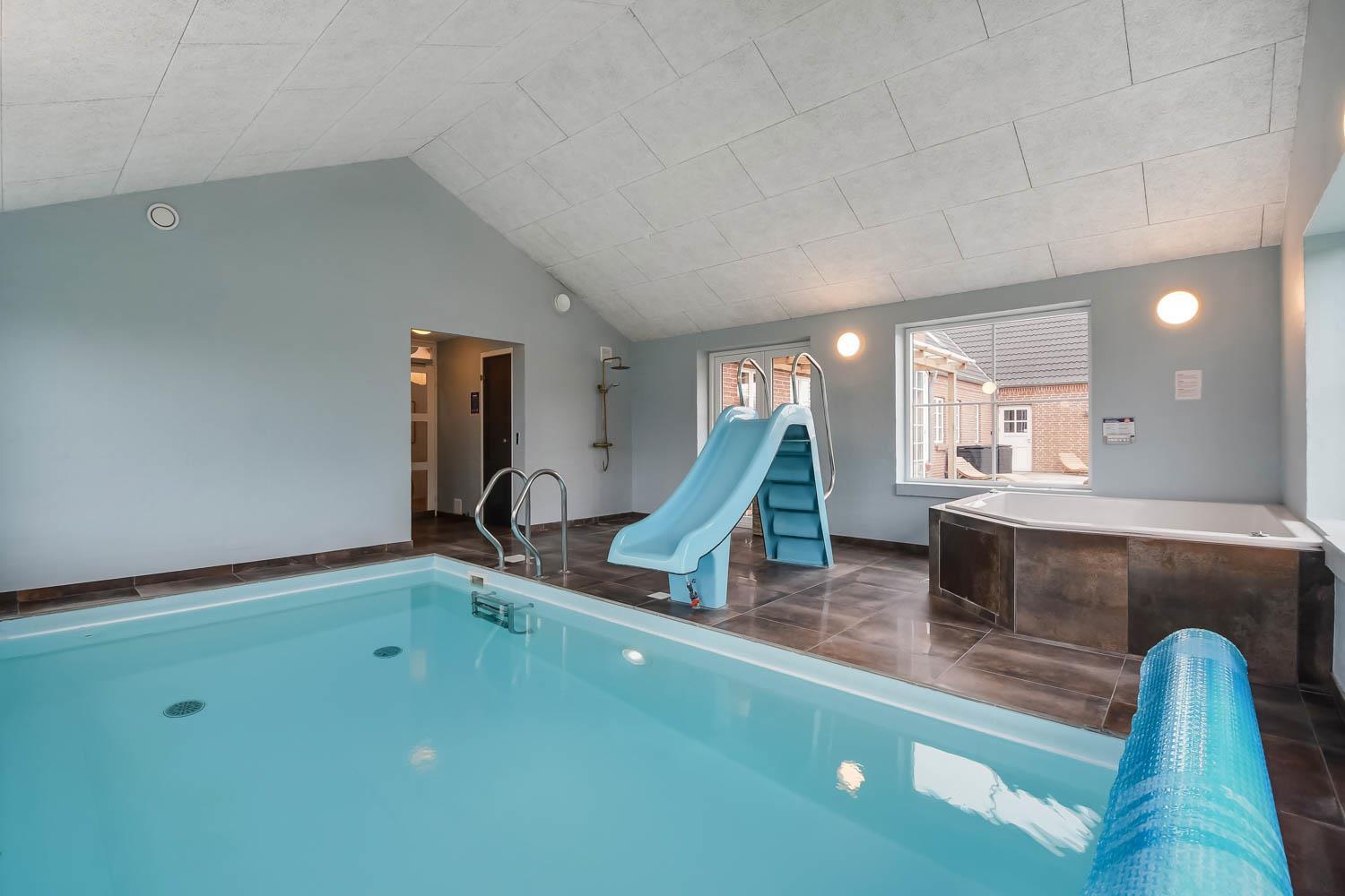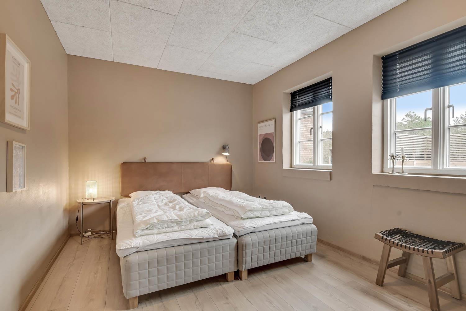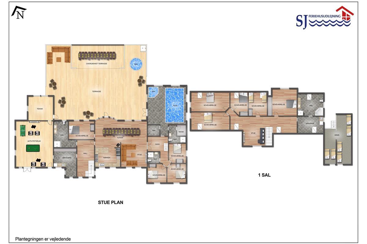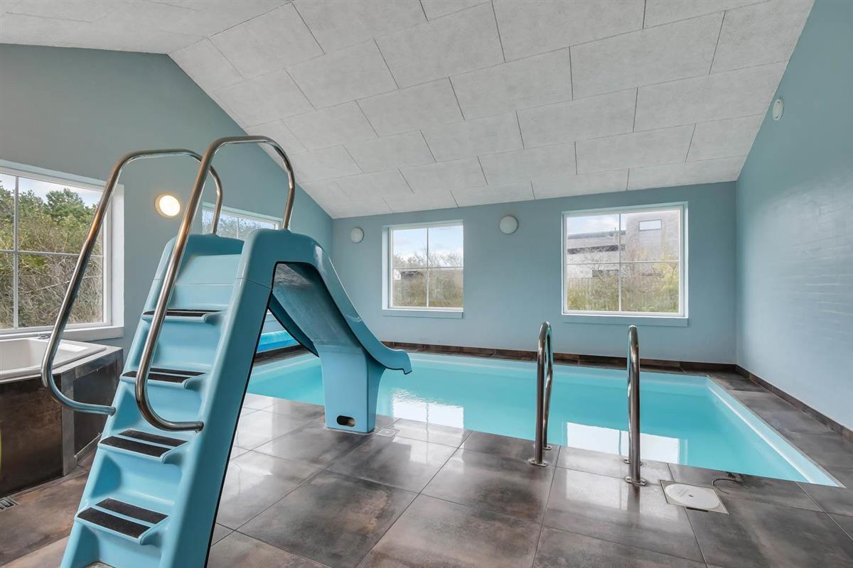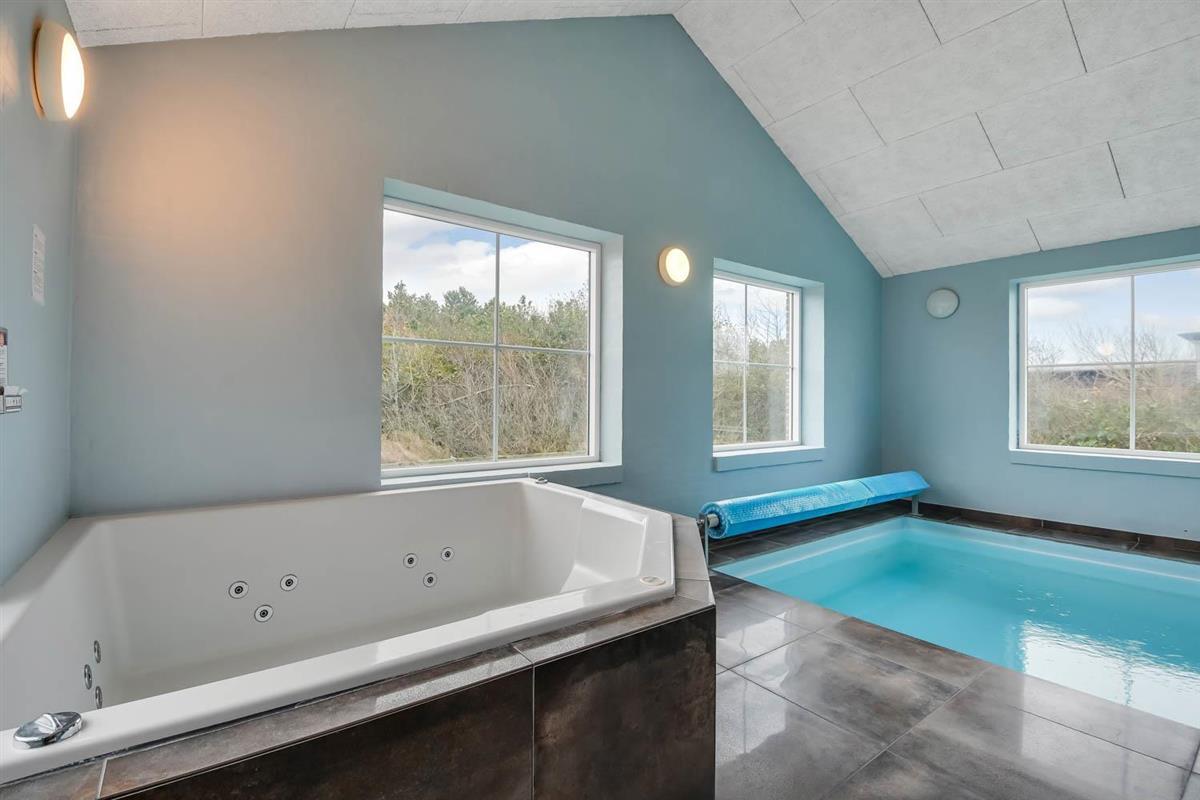Das Ganzjahreshaus ist 550 m² groß und hat kostenfreies WLAN. Zentrum ist die große, offene Küche mit einem geräumigen Wohn- und Essbereich mit Fußbodenheizung. Hier bieten sich gute Möglichkeiten zum Entspannen. Die Küche ist komplett ausgestattet, sodass man für alle Bewohner ein wunderbares Abendessen zubereiten kann. Die Türen im Haus sind 90 cm breit. Sie können von der Wohnküche direkt ins Schlafzimmer gehen, was relativ behindertenfreundlich ist. In den schönen Möbeln können Sie sowohl dänisches als auch deutsches Programm auf dem Flachbildschirm-TV genießen oder DVD abspielen. An kühlen Abenden sorgt der Holzofen für zusätzliche Gemütlichkeit. Das Haus verfügt über einen geräumigen Wellnessbereich mit Sauna, einen großen Pool mit Rutsche und einen Whirlpool. Es gibt 4 Badezimmer, jedes mit Toilette, Dusche und Fußbodenheizung. Im Erdgeschoss befinden sich 4 Schlafzimmer für 8 Personen. Im Obergeschoss 5 Schlafzimmer für 10 Personen und ein großer Hems (Schlafboden) mit 6 weiteren Schlafplätzen. Hier gibt es auch ein weiteres schönes Wohnzimmer mit TV sowie ein Badezimmer mit einer Badewanne. Im Aktivitätsraum gibt es u. a. Billard, Tischkicker, Airhockey, Playstation 3 und Tischtennis. Das Haus ist als Energieoptimiertes Haus gemacht, da es mit Fernwärme aufgewärmt wird – was in Harboøre eine wesentlich billigere Aufwärmung als Strom ist. Im Moment ist der Preis für Fernwärme 2,50 kr. pro Einheit. Außerdem bezahlt man auch für Strom und Wasser. Kaution Wintersaison EUR 1000 und Sommersaison EUR 700. Wenn Sie ein Elektroauto oder einen Plug-in-Hybrid haben, verfügt das Haus über eine Ladebox ab. ca 1.6.2023. Als Mieter haben Sie freien Zutritt zur Haboøre Centret.