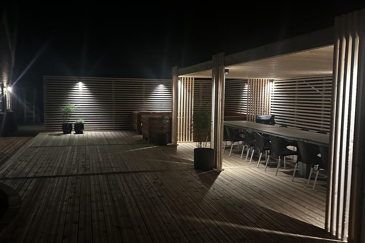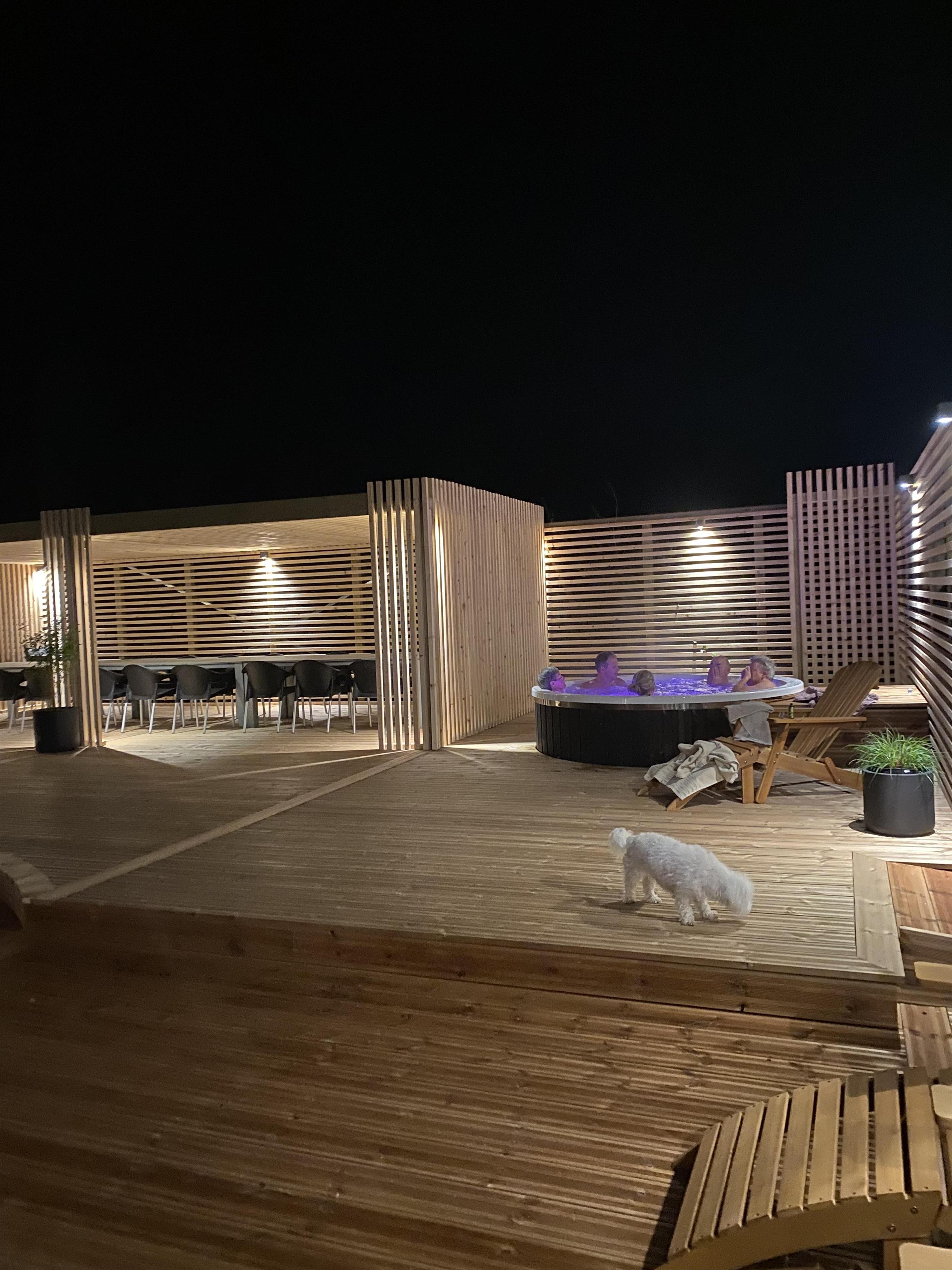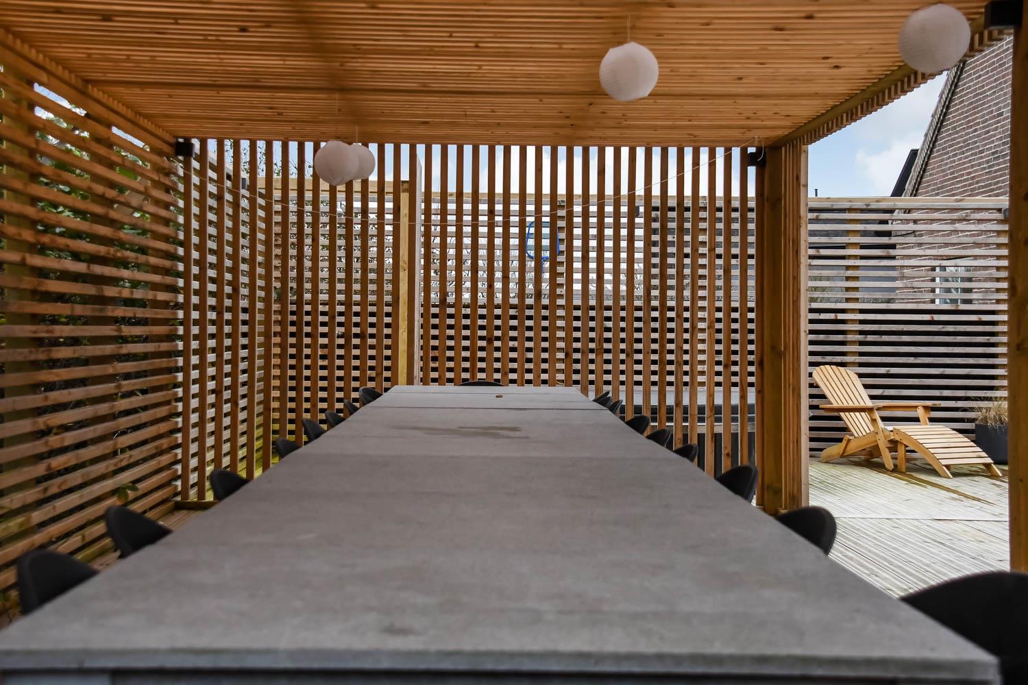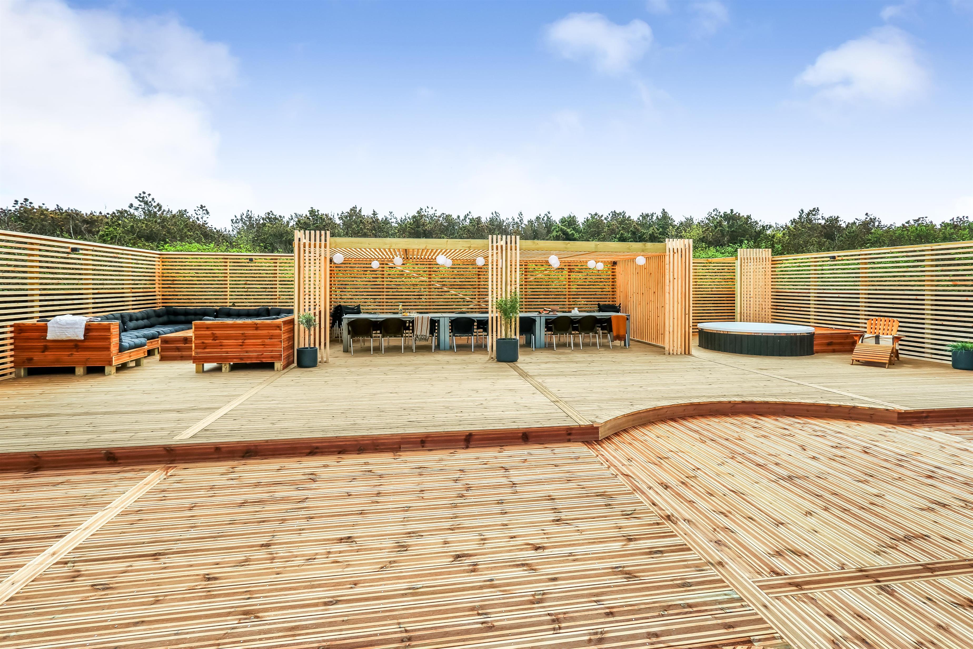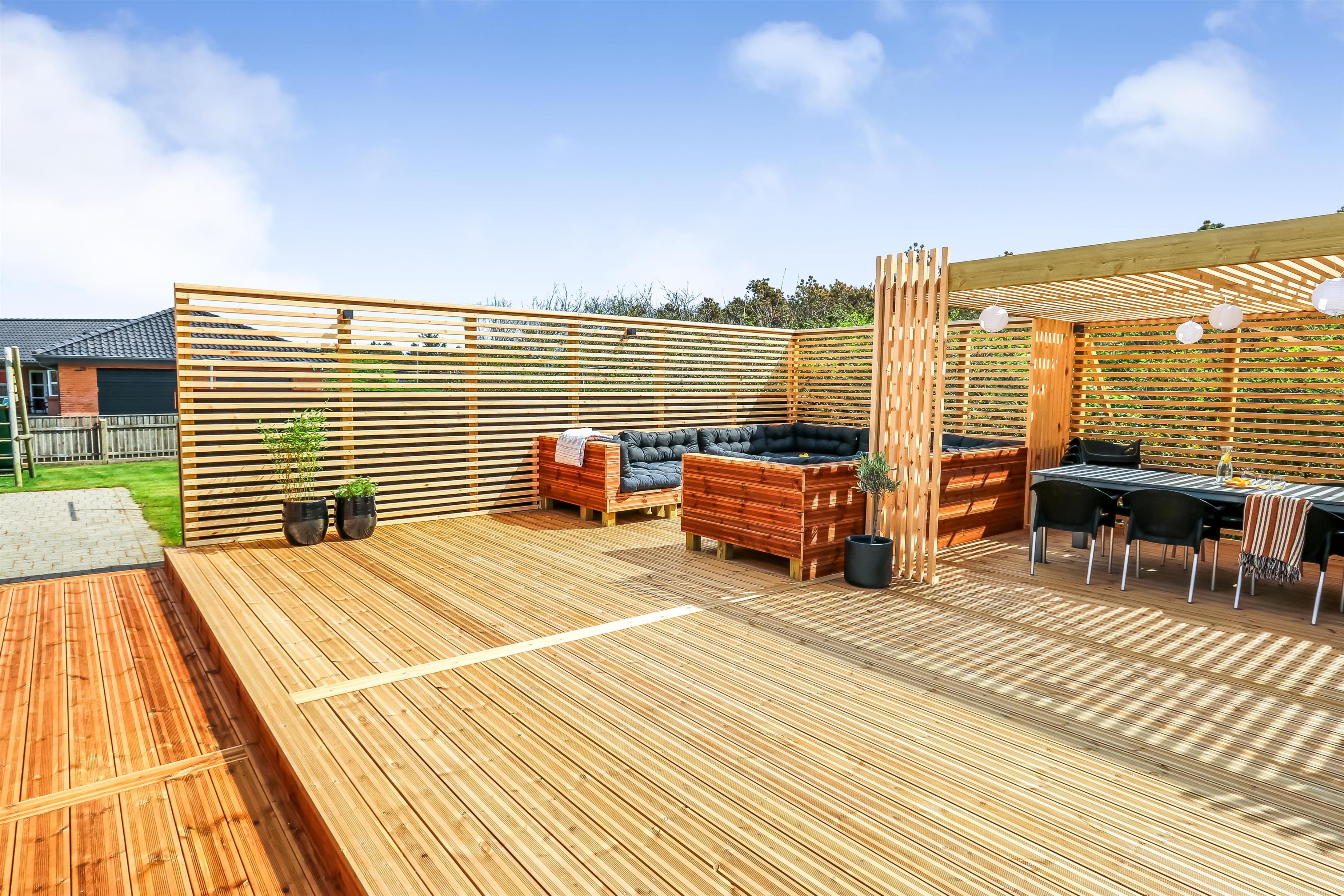 Zentral gelegen auf einem vollständig eingezäunten, gepflegten Grundstück in der Nähe von Einkaufsmöglichkeiten, Restaurants und nur 800 m von der Nordsee entfernt. Die Außenbereiche sind ein Kapitel für sich. Große, gepflegte Terrassen mit Gartenmöbeln. Hinter dem Haus befindet sich eine komplett neu errichtete Holzterrasse, die eine "südländische" Atmosphäre schafft. Es gibt Lounge-Sets, Liegestühle, eine Pergola mit großem Gartentisch und Stühlen, einen Bereich mit einer Außendusche und einen tiefgesetzten Whirlpool für 4-6 Personen - der perfekte Ort, um das Leben im Freien zu genießen. Eingezäuntes Grundstück mit vielen windgeschützten Stellen zum Sonnen. Für Kinder gibt es einen Spielturm mit Schaukeln. Schließen Sie die Tür zum Garten und genießen Sie es den Haustieren und Kindern auf dem geschlossenen Grundstück beim Toben zuzusehen. Das perfekte Haus von hoher Qualität mit viel Platz und mit bis zu 24 Personen bewohnbar.