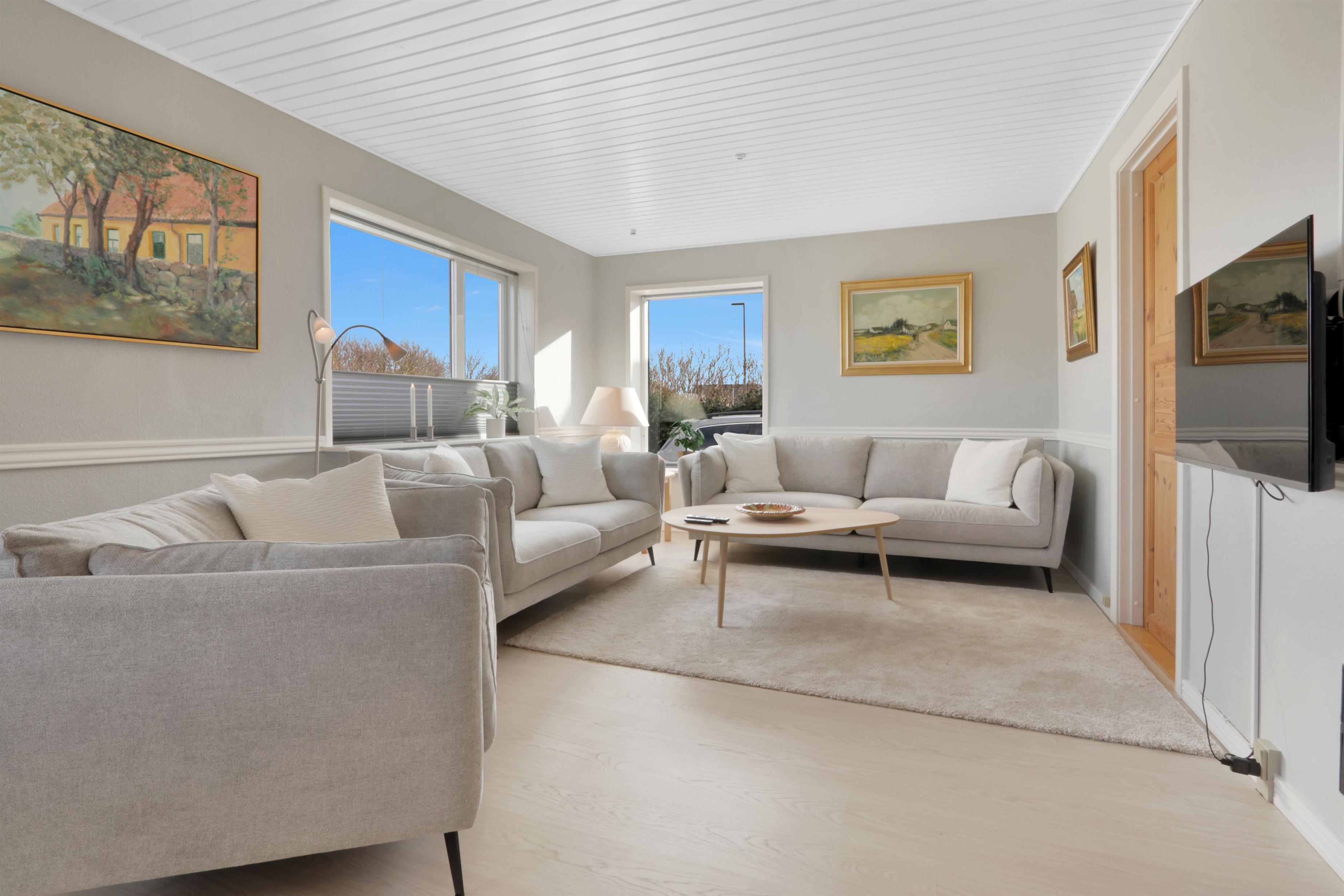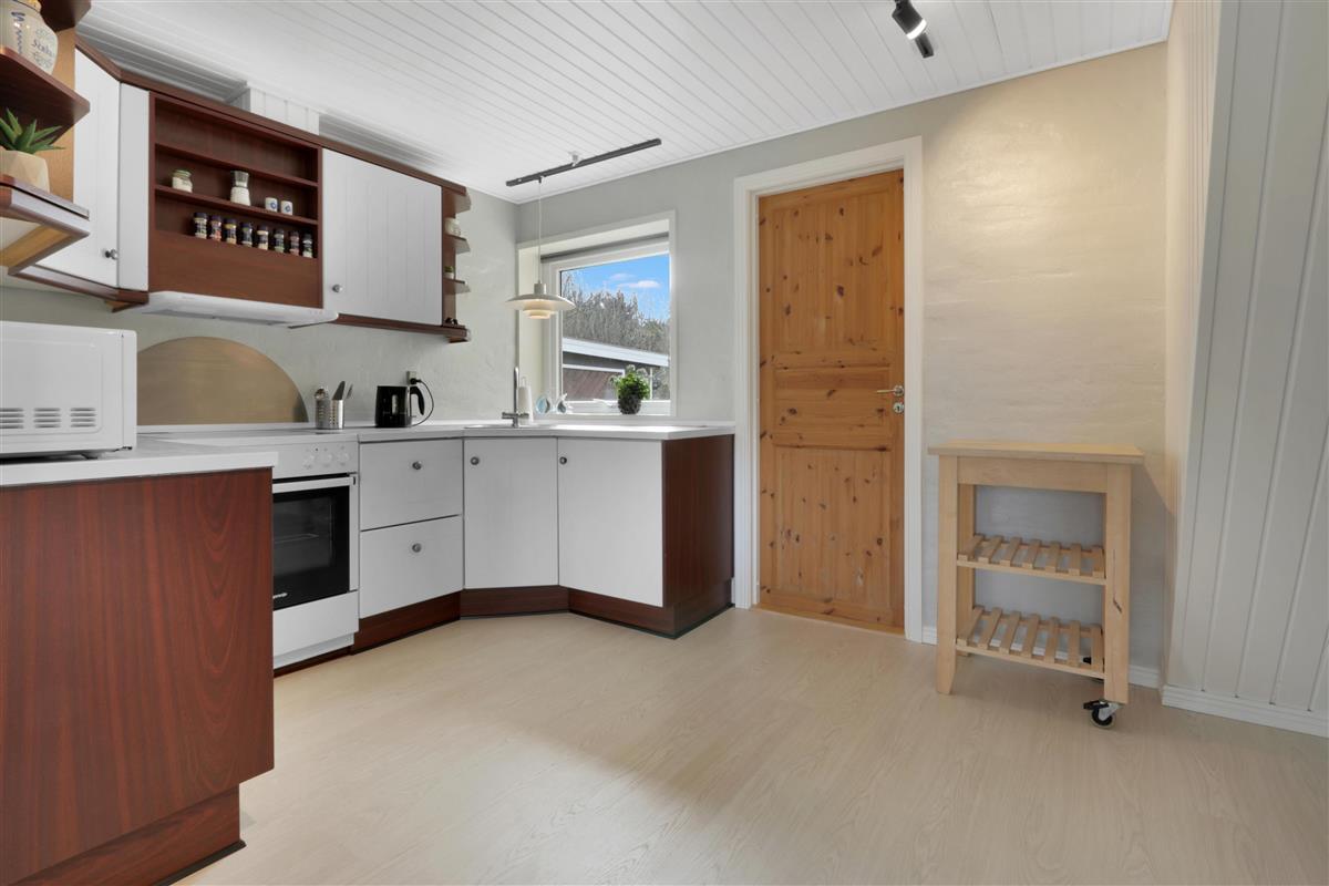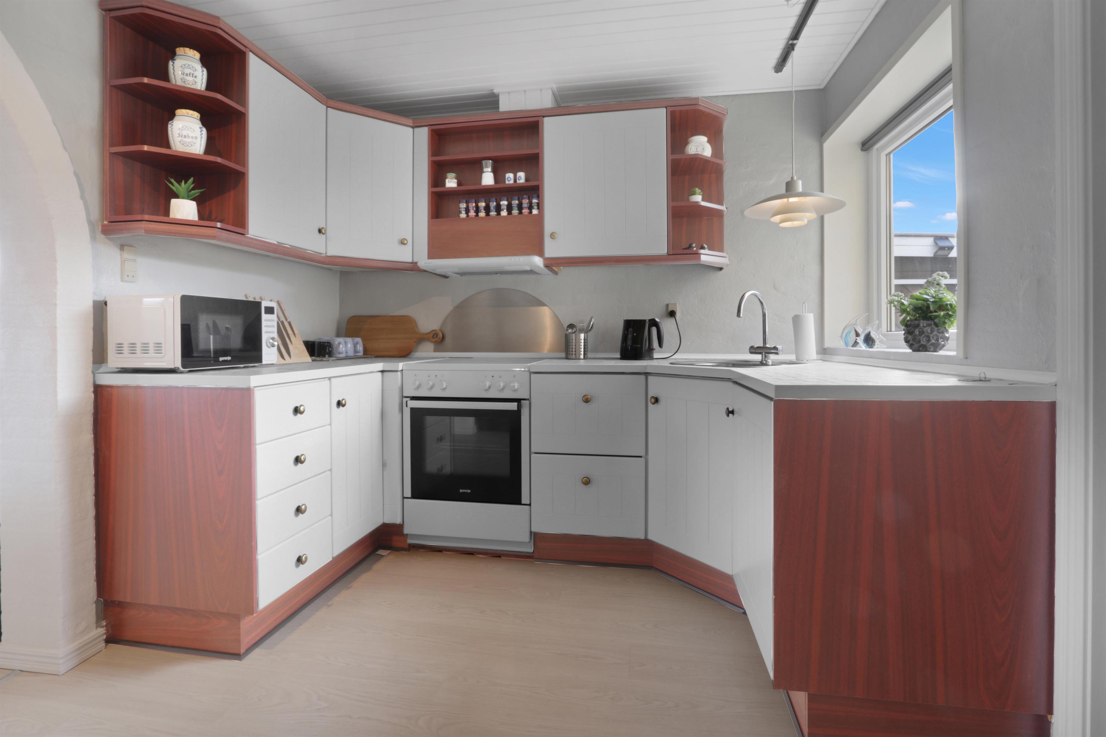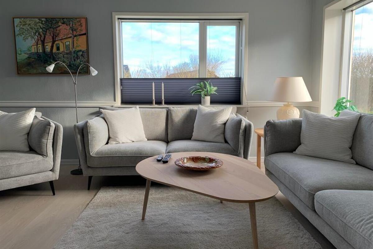 Dieses wunderschöne Ferienhaus wurde im Laufe von 2023 renoviert und ist schön hell und einladend. Das Wohnzimmer bildet das Herzstück des Hauses und bietet viel Platz für gemeinsame Stunden und Gemütlichkeit. Hier findest du einen stilvollen Essbereich, eine komfortable Sofaecke und einen stimmungsvollen Kaminofen, der die Abende besonders gemütlich macht. Der Fernseher verfügt über dänische und deutsche Kanäle, und mit Chromecast kannst du deine eigenen Streamingdienste nutzen.