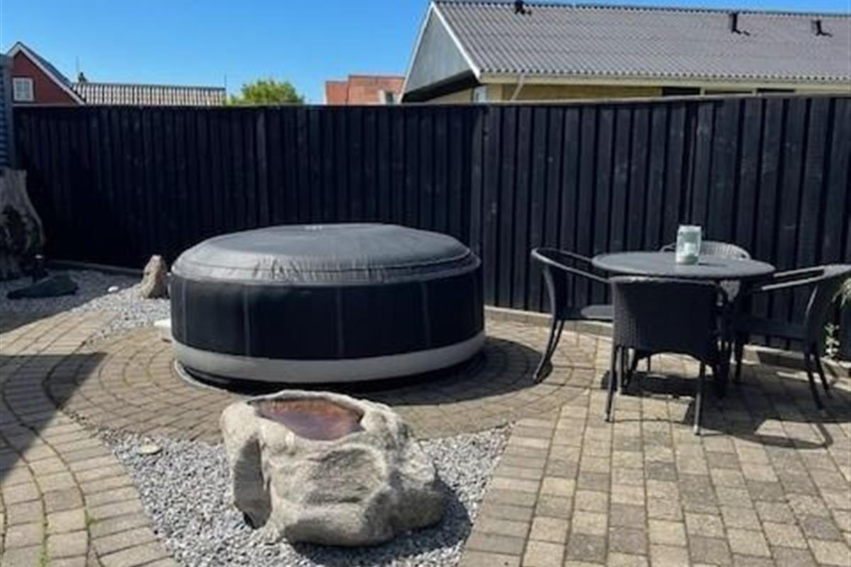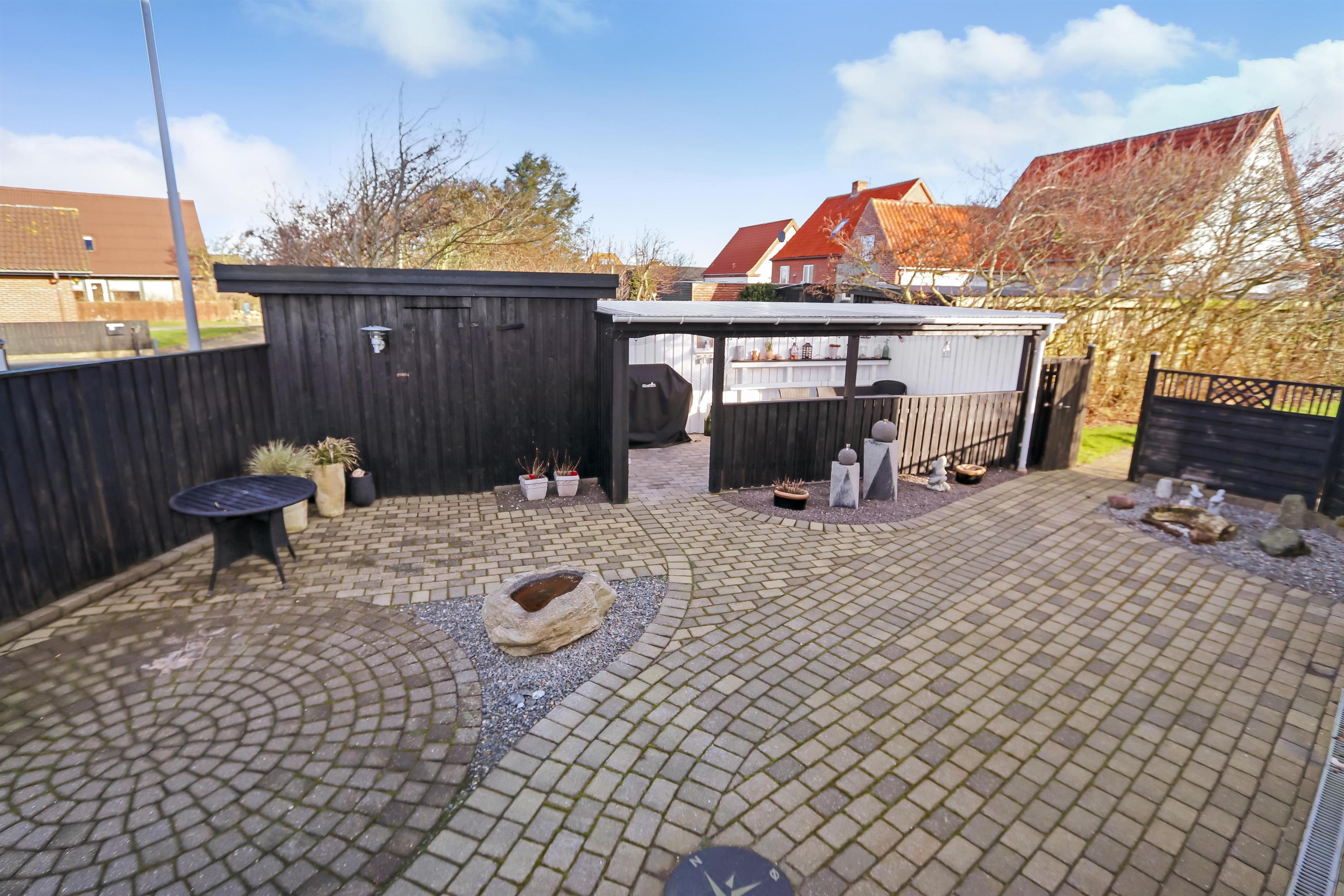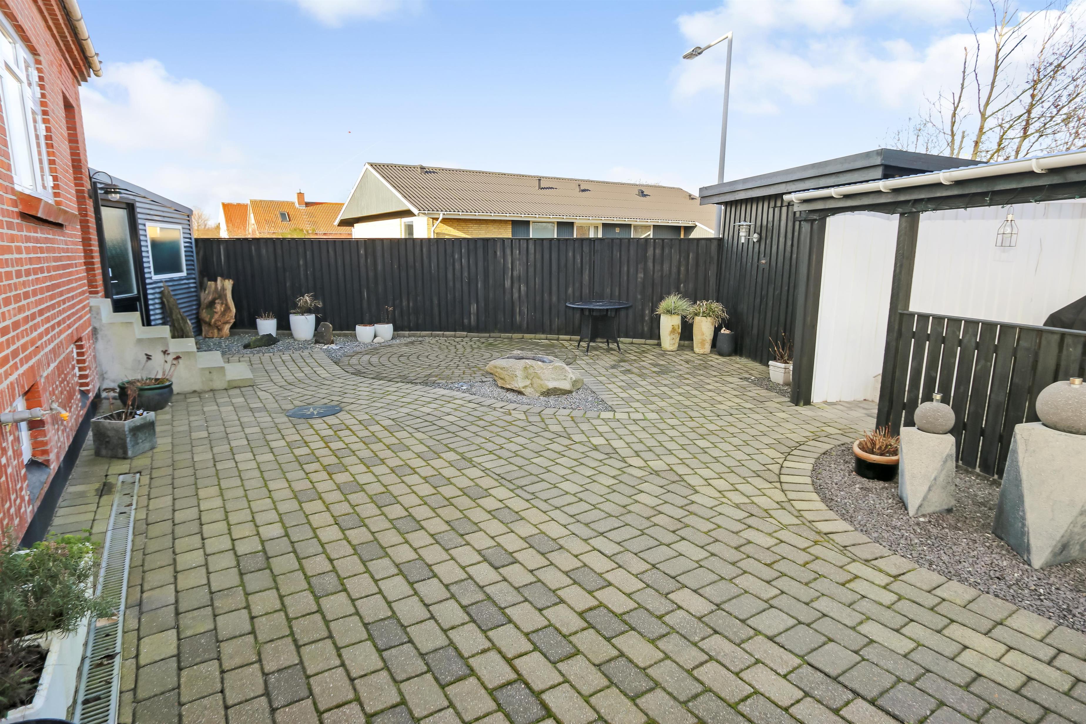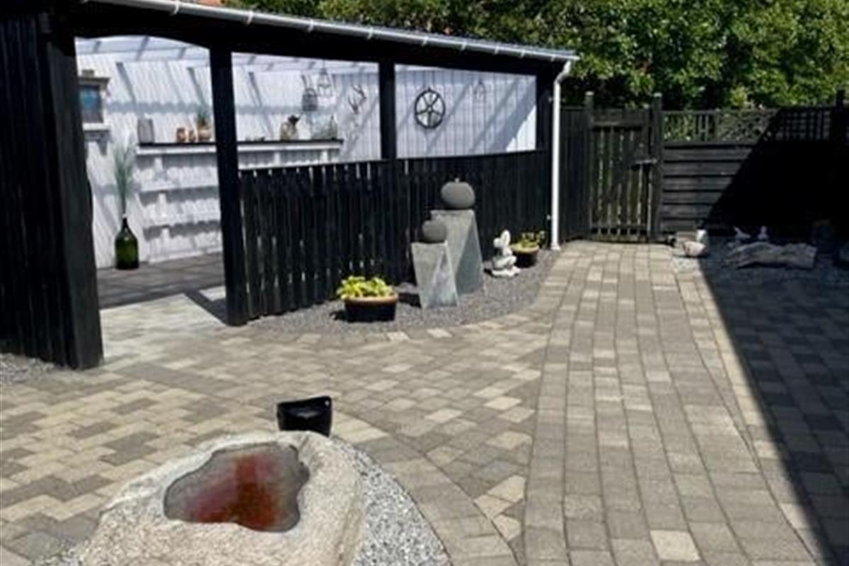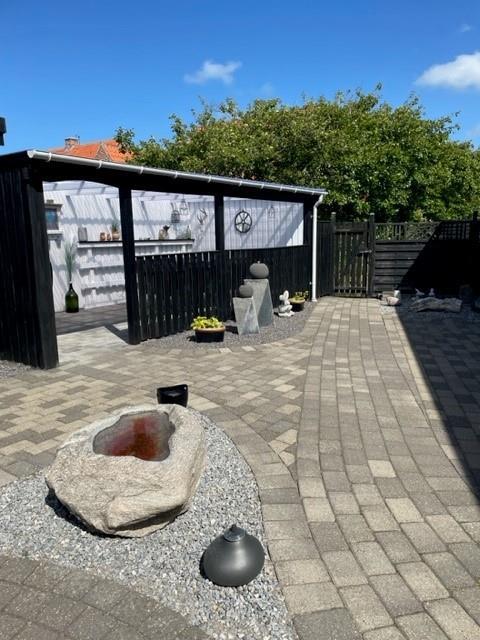 Das Haus liegt auf einem etwa 709 qm großen, gepflegten und eingezäuntem Grundstück. Im hinteren Garten gibt es einen tollen geschlossenen Gartenhof, der ganz privat ist. Hier gibt es auch ein überdachtes Gartenhaus, das Sie bei jedem Wetter nutzen können. Im Gartenhof gibt es Gartenmöbel, Sonnenliegen und Gasgrill, die Sie nach Bedarf umstellen können. Es gibt immer eine Stelle wo Sie Windschutz und Sonne finden können. Der Gartenhof ist mit einem Geländer umzäunt, damit Kinder und Hunde nicht weglaufen können. Besuchen Sie die vielen Attraktionen und Erlebnisse, die Sie innerhalb von max. 30 Minuten erreichen können. Besuchen Sie Thyborøn das Fischerdorf oder die Handelsstadt Lemvig . Hier finden Sie viele Spezialgeschäfte. Ihre Einkäufe können Sie bei Aldi oder Brugsen in Harboøre tätigen. Sie liegen nur 500 m zu Fuß vom Haus entfernt. Die Nordsee, die jeden Tag aufs neue Erlebnisse bietet, liegt auch nur 2 km entfernt. Ein gemütliches und schönes Haus mit einem tollen Außenbereich, es muss erlebt werden.