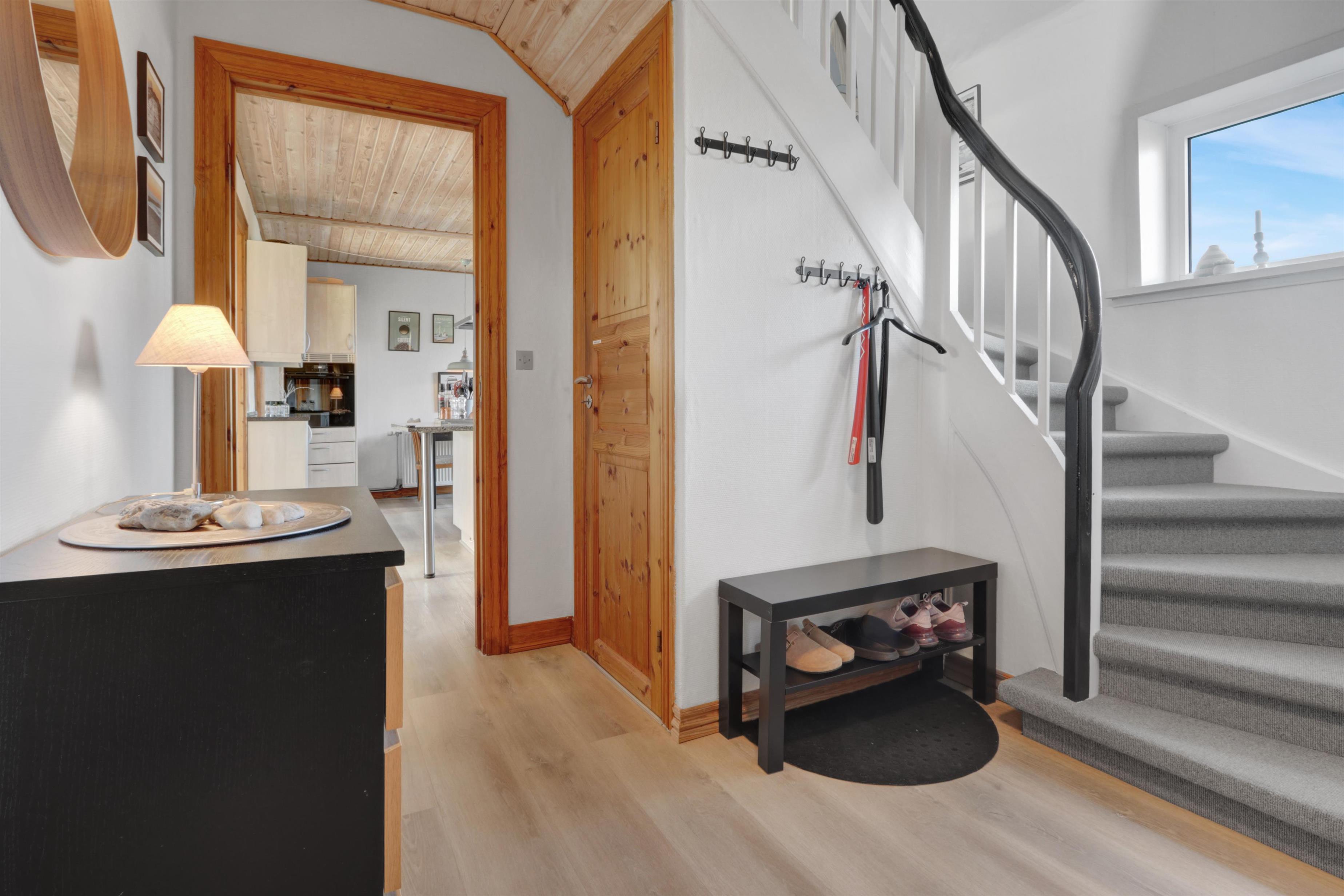 Das Haus wurde im Jahr 1947 erbaut und laufend renoviert. Wenn Sie das Auto geparkt haben, kommen Sie durch das Tor an die Haupttür auf dem eingezäunten Grundstück. Ein Flur heißt Sie willkommen. Vom Flur gelangen Sie in alle Räume im Erdgeschoss, zudem befindet sich hier auch die Treppe zum 1. Stock. Gemütlicher Wohnraum, eingerichtet mit Leder- und Polstermöbeln, Esstisch, TV mit dänischen und deutschen Programmen und Chromecast mit der Möglichkeit für Streaming von TV / Radio / Apps, für die Sie selber einen Abonnement haben und für die Sie die nötige Technik selber mitbringen. Es gibt einen Kaminofen für Holzpellets (kann beim Haus gekauft werden). Separate, gut ausgestattete Küche mit allem an Geschirr und Kochgeschirr. Kochinsel mit Ceranfeld-Kochplatten und Abzugshaube, großer Kühlschrank und separate Gefrierbox (50l), Geschirrspüler und Mikrowelle. Die Küche hat eine praktische Lage, um das Essen zum Tisch zu bringen, egal ob Sie drinnen oder draußen essen möchten. Von der Küche gibt es einen Ausgang zu einem fantastischen Gartenhof und Zugang zur praktischen Speisekammer mit viel Platz zur Ablage. Der Flur, Wohnraum und die Küche sind mit praktischen Böden belegt. Vom Flur gibt es Zugang zum Badezimmer mit Toilette, Waschbecken, Dusche, Fliesenboden mit Fußbodenheizung und eine Waschsäule mit Waschmaschine und Trockner. Nichtraucher-Haus. 4–6-Personen-Spa kann für 500 DKK pro Woche gemietet werden, exklusive Wasser und Strom (muss dazugekauft werden). Das Haus wird mit Fernheizung aufgeheizt und wird mit einem Festpreis abgerechnet: Pro Woche im Sommer DKK 200,- und pro Woche im Winter DKK 400. Dazu kommt auch noch der Verbrauch von Strom und Wasser.