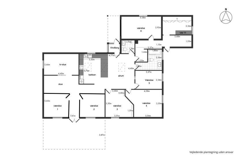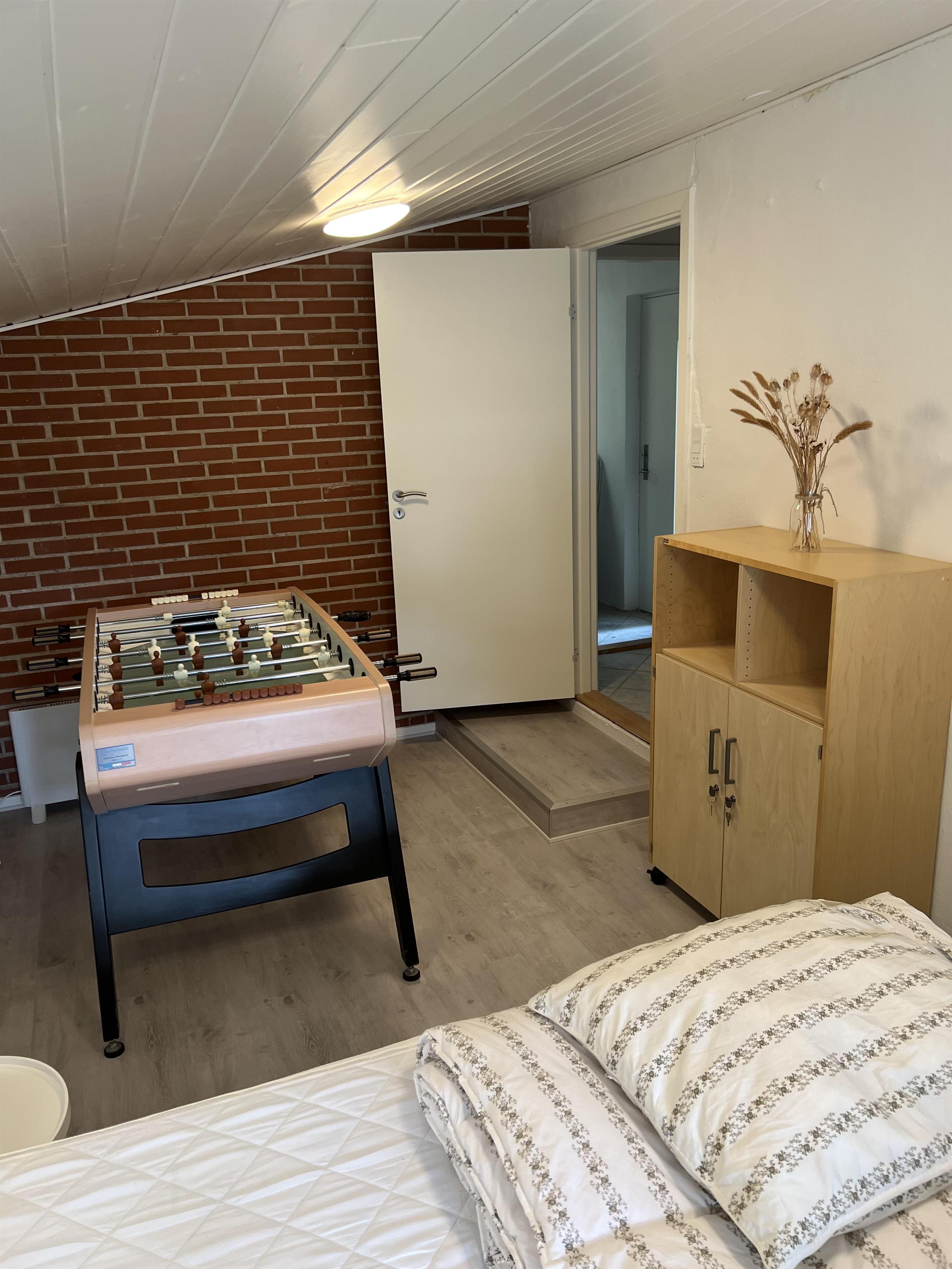 The house has a fantastic kitchen/dining room with skylights that provide good light in the room and a cozy TV room/cinema where everyone can relax with a good movie. The house also has a living room with a sofa group. In the house there are 2 toilets with showers and 6 bedrooms.