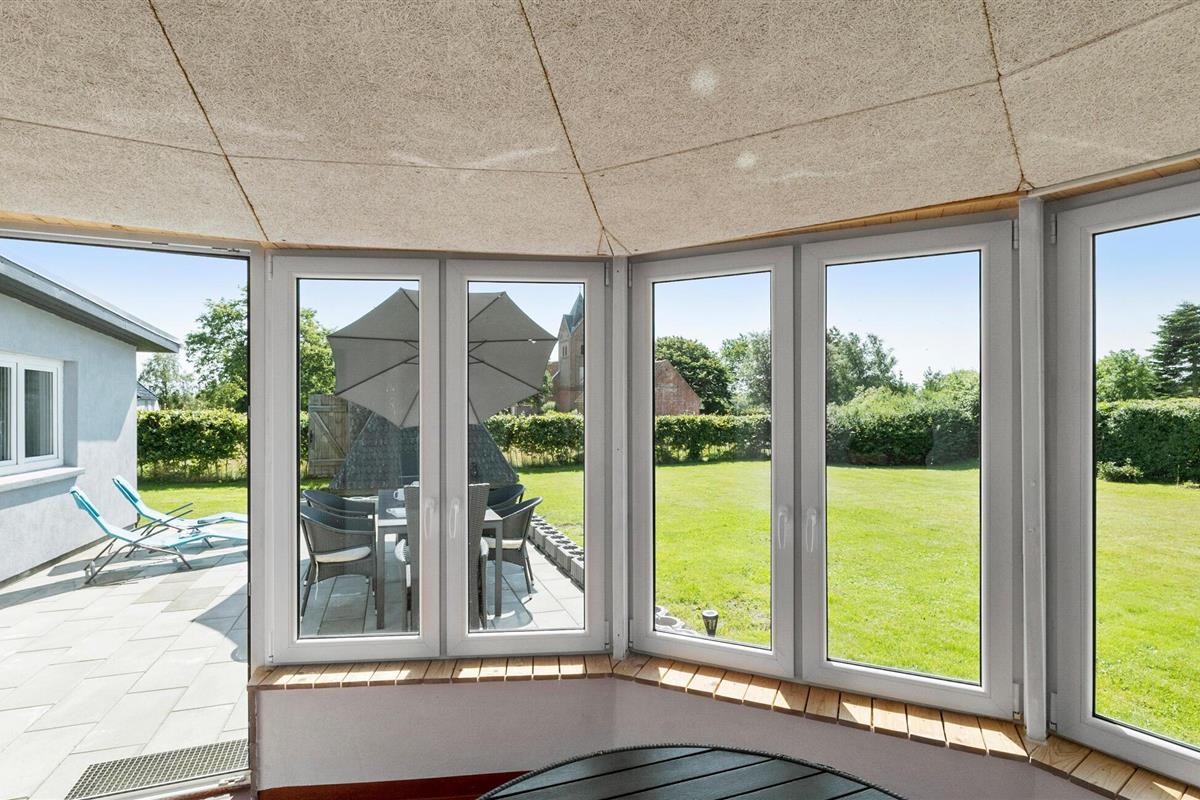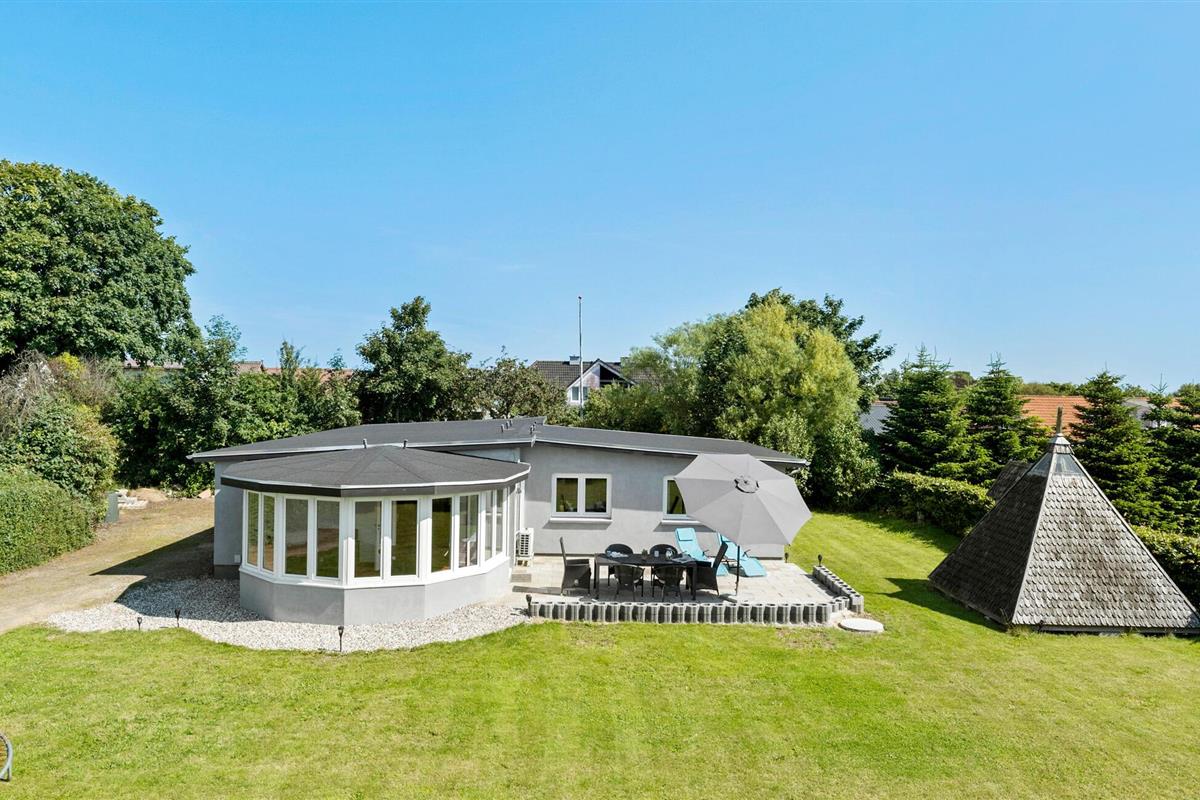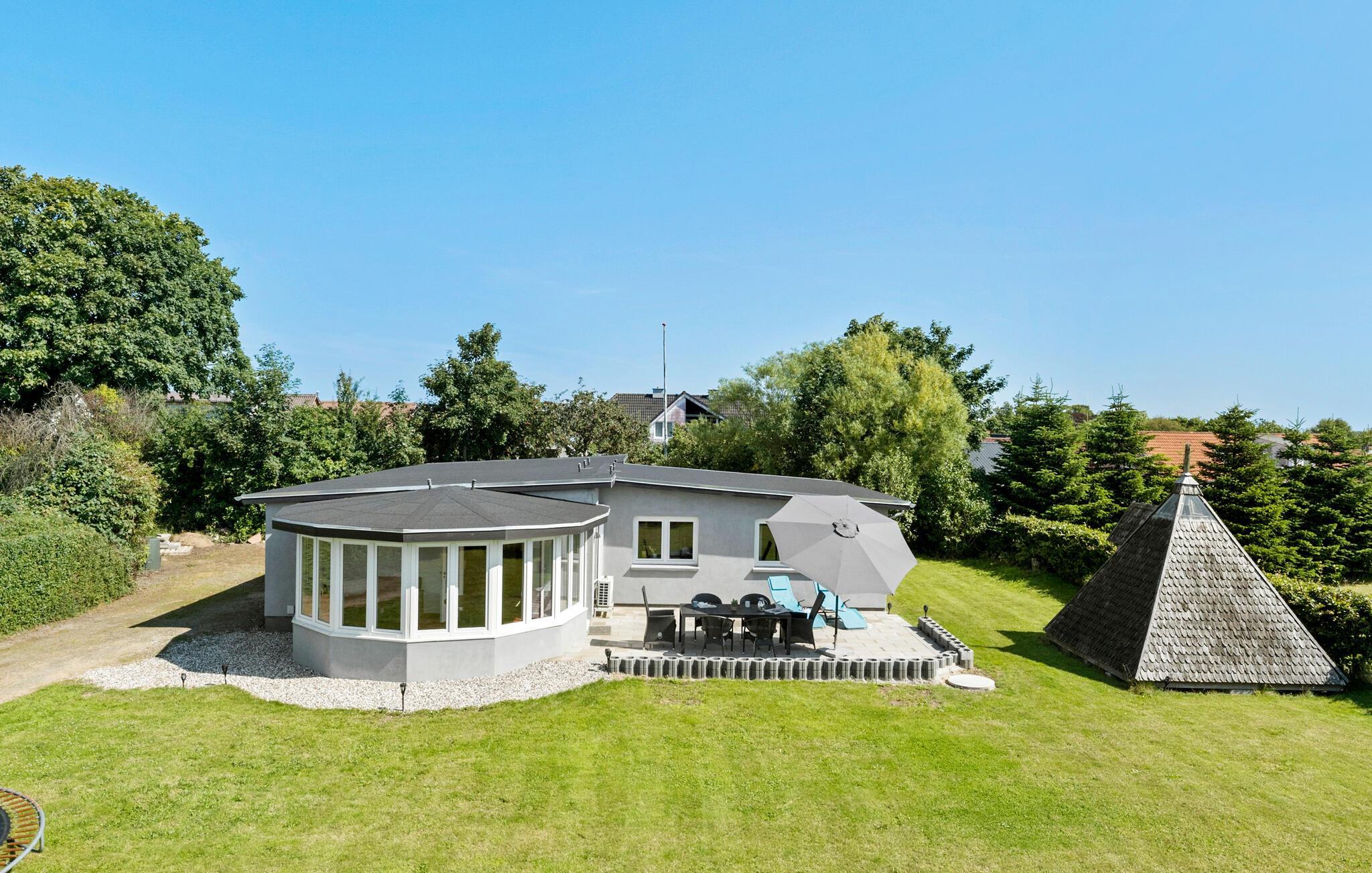 Gezinsvriendelijk vakantiehuis met serre, tuin en trampoline nabij het kindvriendelijke strand in Harre Vig.